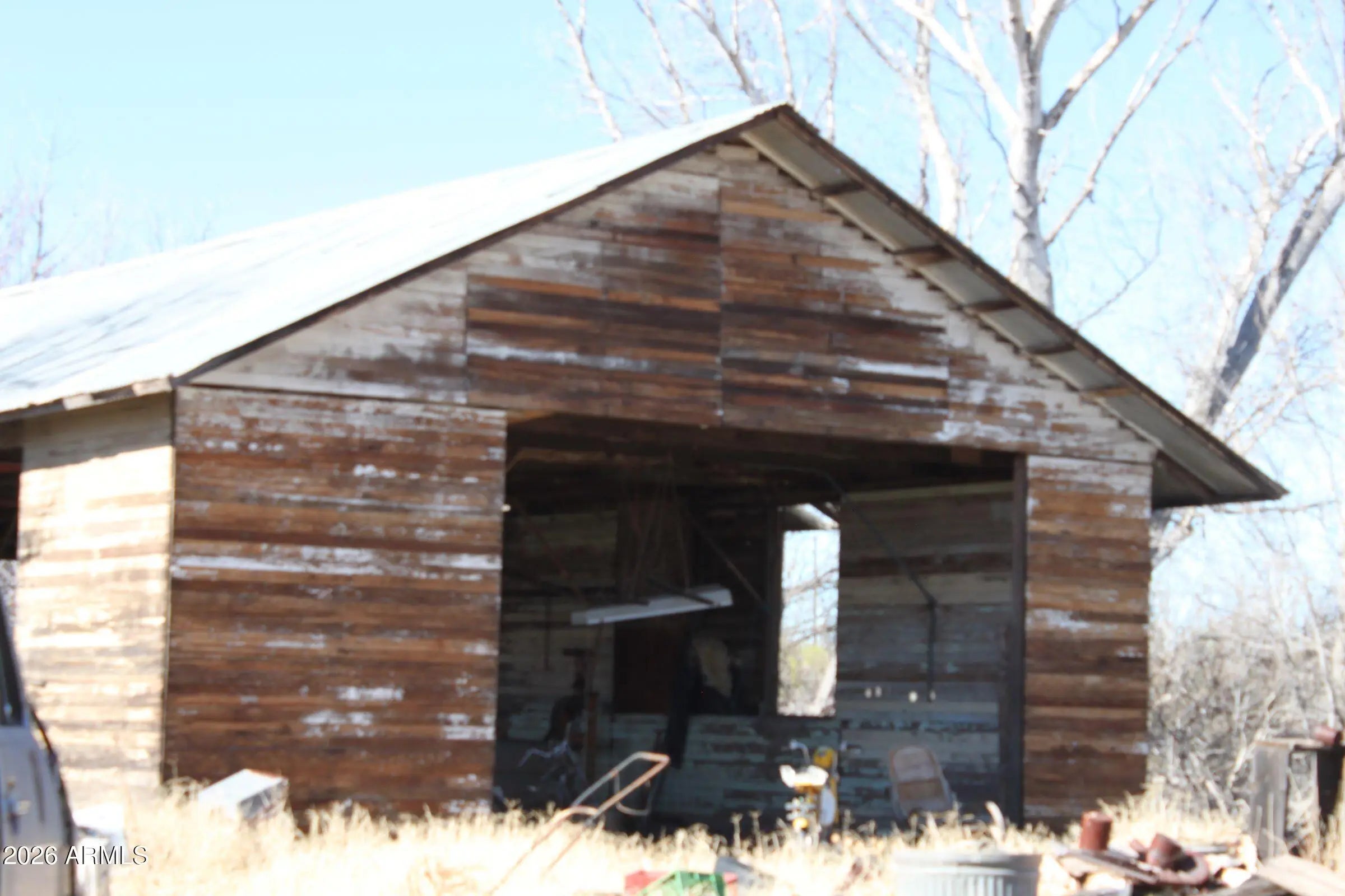 This could be a very nice home site w/clearing and clean up. Level..mature trees...huge shop w/cc floor can be repurposed! Short hike/commute to the San Pedro River...on the migratory bird path. Lots of native wildlife to observe...great views. RV's and single wide would make good storage or fix up and occupy. Great gardening soil.