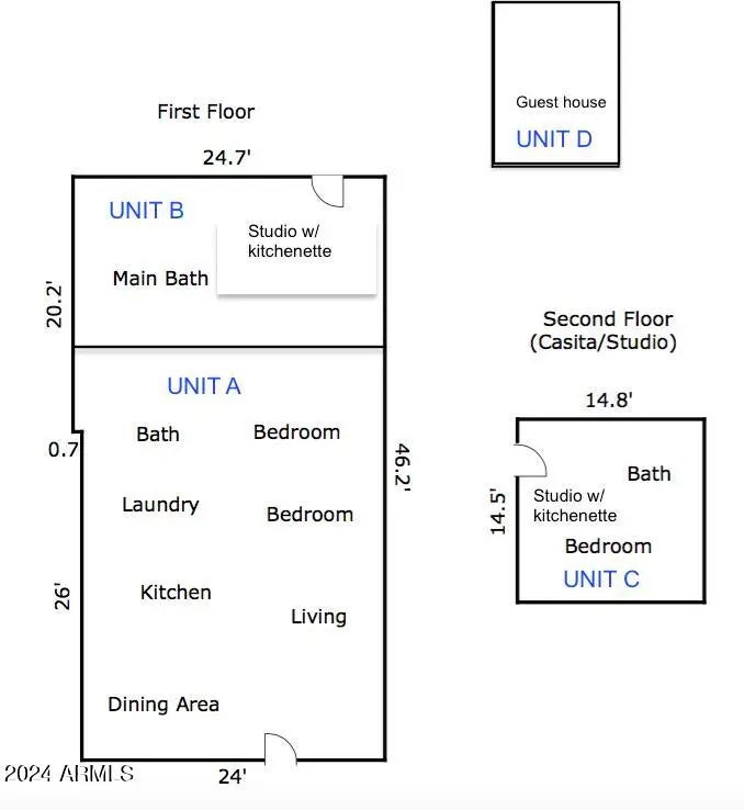 Comprehensively RENOVATED 4 UNITS Short-Term Rental in PRIME Phoenix LOCATION on R-5 zoning. Cap rate 10.6%. 2025 average occupancy rate 65%, Airbnb rating 4.85 out of 5! Comes with confirmed future bookings totaling over $5,000 through Apr 1, 2026 and the established hosting accounts on main short term rentals platforms!!! UNITS: One 2 BD-1BA and Three Studios. Every unit has its OWN kitchen, bathroom and a separate PRIVATE ACCESS. 2 BD unit has it's own Laundry with washer and dryer. The backyard is a common space for all guests with a Grill, Fire pit, Hammock and a separate Laundry shed. Cleaning and maintenance crews use another outside shed for supplies. Each unit uniquely renovated and staged, designed to appeal to a broad range of tenants--perfect for maximizing occupancy & income The property located in a high-demand area of Downtown Phoenix, minutes to Chase Field, the Convention Center, ASU Downtown, Roosevelt Row, Van Buren.