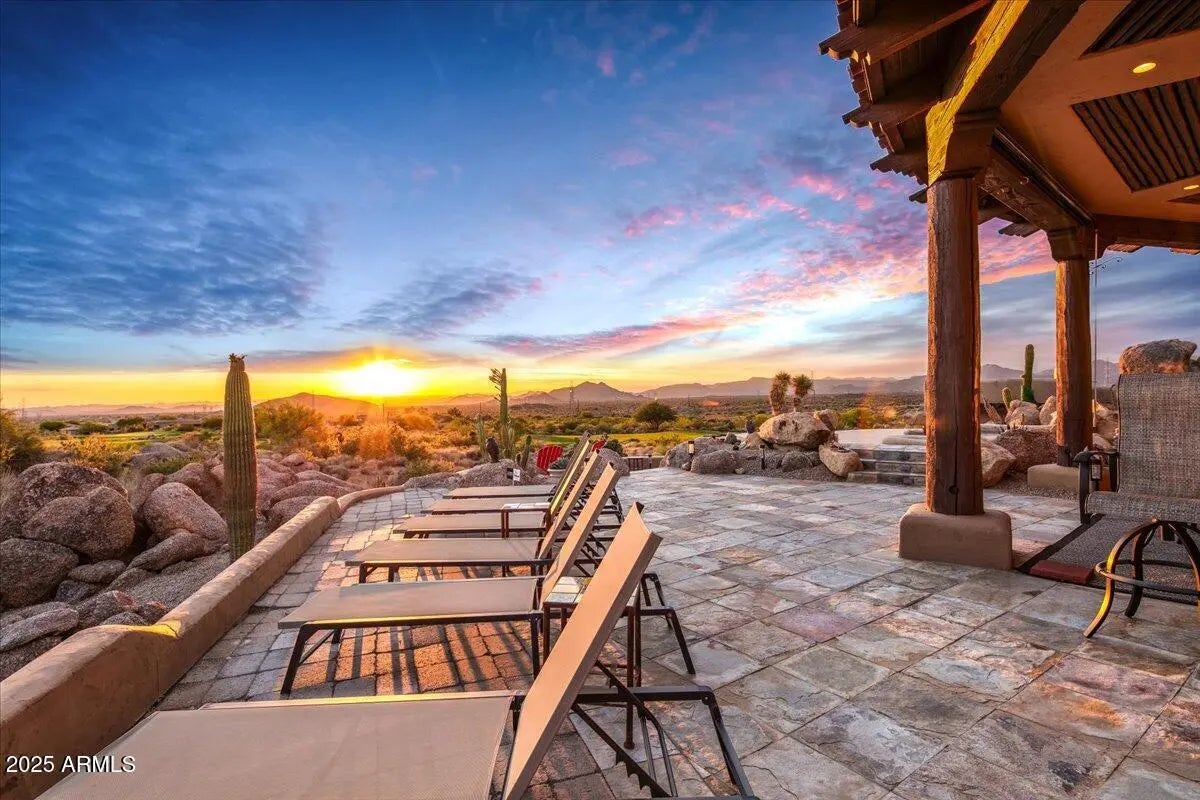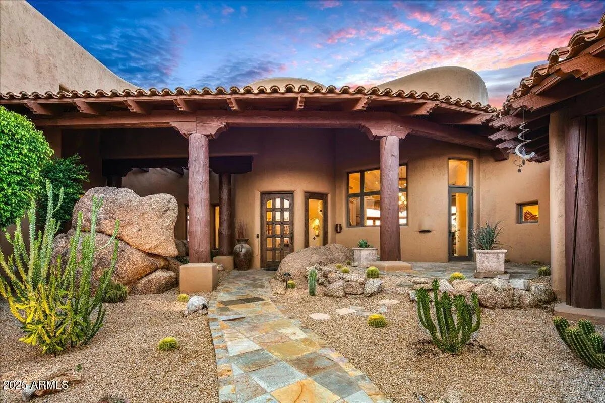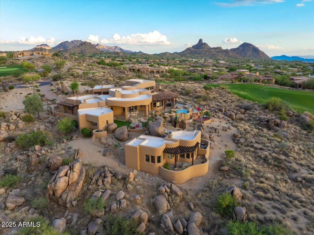 Nestled in a prestigious gated community, this meticulously maintained and Ideally positioned home captures the sweeping sunset and golf course views, this exceptional residence offers a seamless blend of elegance , comfort, and desert charm. The thoughtfully designed layout includes a private guest casita, ideal for visitors or flexible living needs. Refined finishes and inviting indoor-outdoor spaces make the most of the stunning scenery-perfect for enjoying Arizona's dramatic skies, lush fairways, and unforgettable sunsets. A true retreat for those seeking beauty, privacy ,and effortless living.