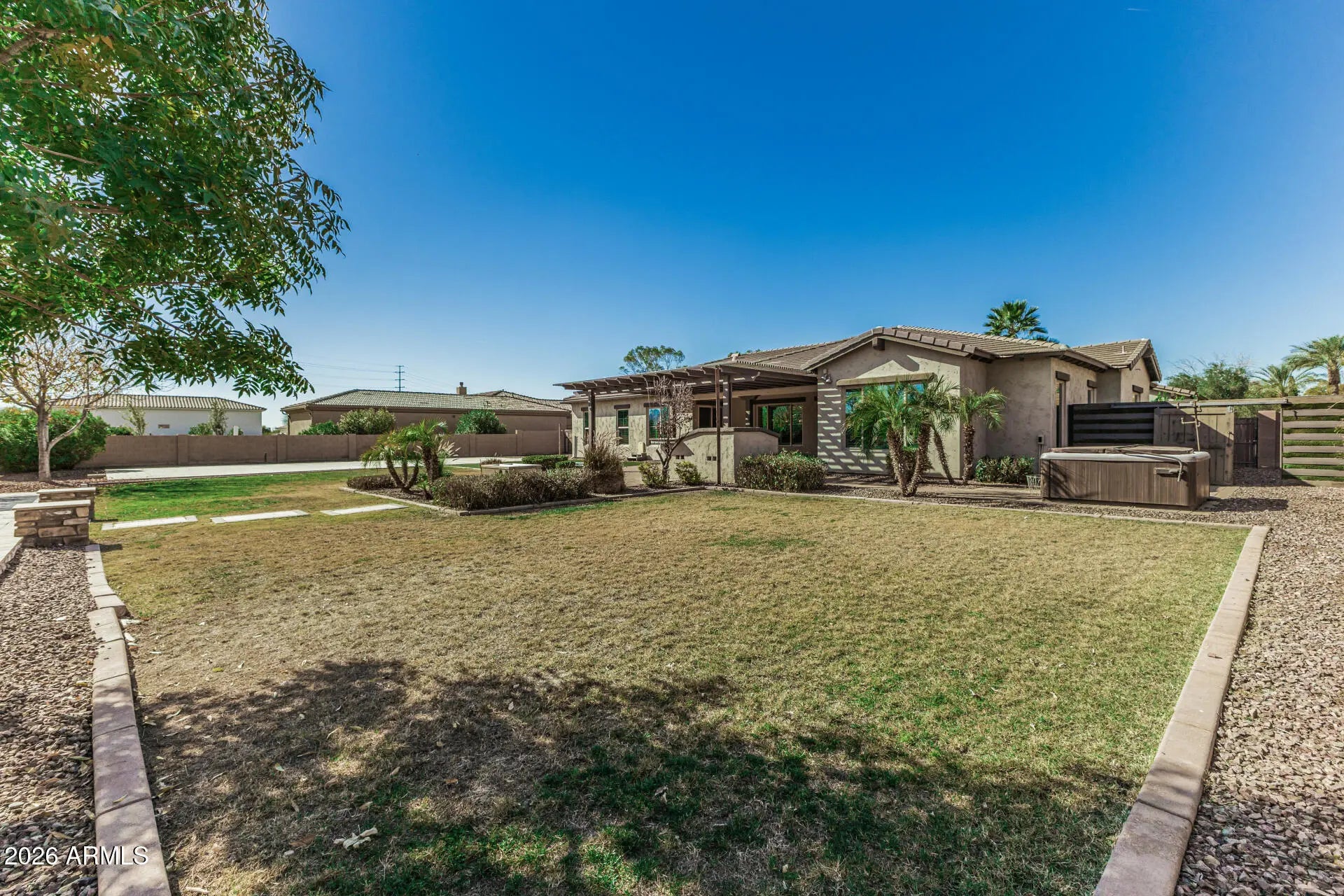 MAKE & SEND BEST OFFER ASAP! HOUSES & LOTS DO NOT COME UP LIKE THIS OFTEN~Gated, Weston Ranch~3/4 + acre~Guest house quarters, sharing the front courtyard, Epoxy 4 car garage (extended length & width), RV gate with 30 ft x 60 ft concrete pad for your courts, more garage, or whatever is still needed. Main house is 4 bedroom + den & split floorplan with 3.5 bath. Covered patio, BBQ, Arbored extended back patio, pool with splash pads and great water features~Front gated courtyard is so welcominging and like another living space. Professional photos to be completed next week. Opportunity to buy at great price and make it your very own style. Owned/Grandfathered Solar. Gilbert Regional Park~walking distance~Great schools, Dining, Shopping, Hospitals, Airports! See Docs for aerial view & more This is a wholesale opportunity. See floorplan in extra docs. Buyer can repaint and make their own custom home. The bones and land are there for you to have your own home in Weston Ranch with neighboring homes up to $4 million. Seller is selling as is, not making repairs, so make an offer. Check out expansion of Gilbert Regional Park Fashionable Downtown Gilbert, Agritopia & Cooley Station are all super close. San Tan, Bush HIghway, Superstition Mountain and Lakes are also easy trip for boating, hiking, water sports. Queen Creek Olive Mill, San Tan Flats, Schnepf Farms, such a great area! House borders Roosevelt Canal on East side. Short term rentals are not allowed in the community, rental restriction is 30 days.