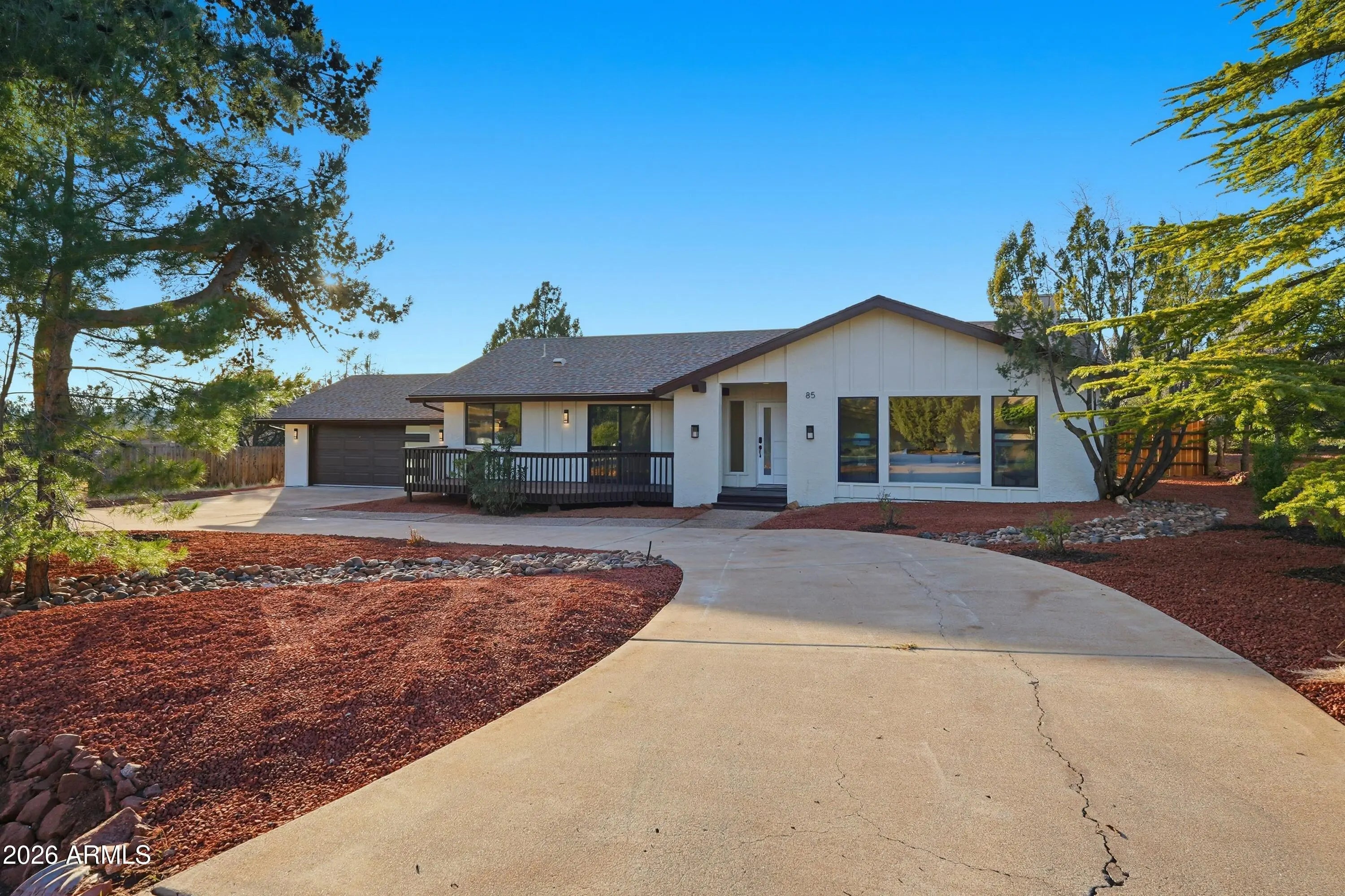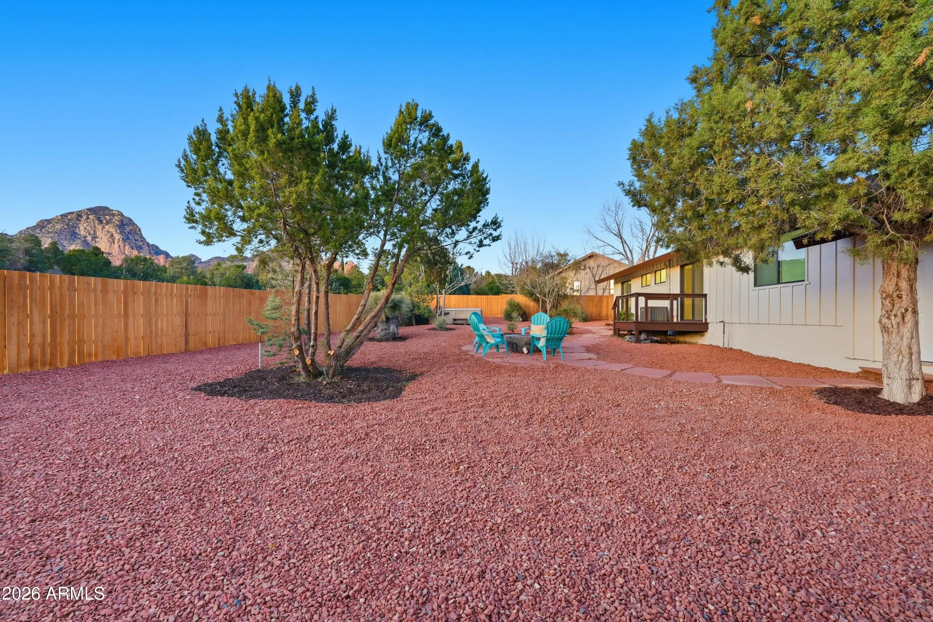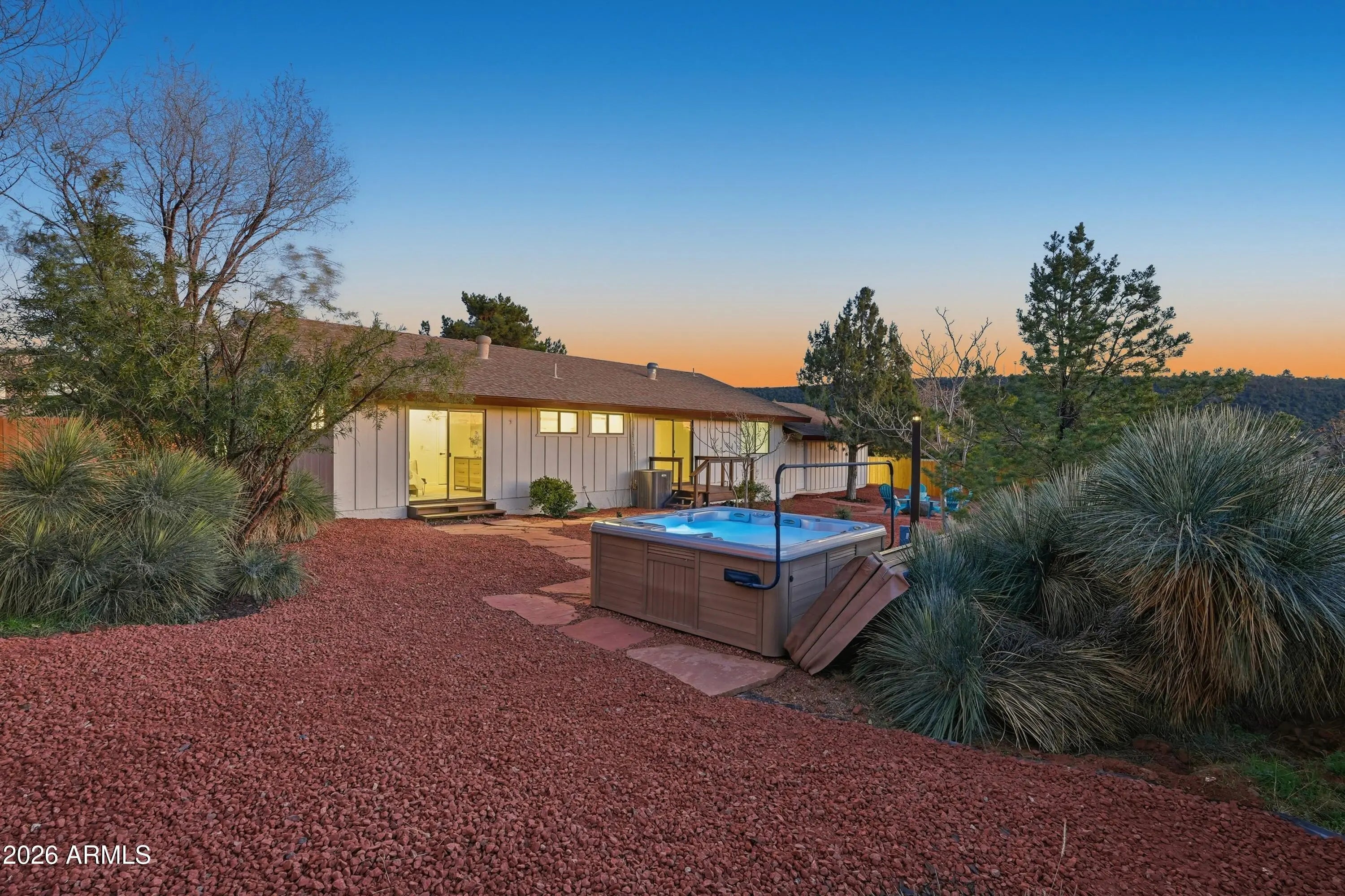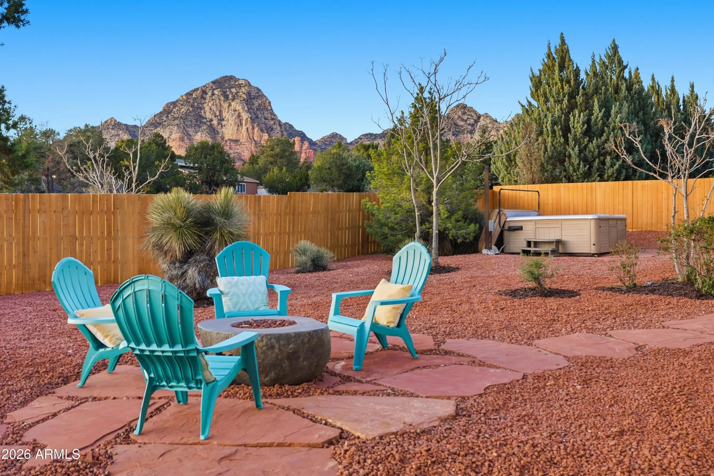 Stunning West Sedona renovation on an oversized 0.28-acre lot with direct red rock views. Single-level 3BD/2BA with a modern open floorplan and all-new kitchen featuring granite counters, updated cabinetry, and new appliances, plus new flooring and fixtures throughout. Both baths are fully updated with modern finishes and dual-sink vanities. Enjoy panoramic Thunder Mountain and Sedona Red Rock views, minutes to shopping, dining, and National Forest trails. Backyard retreat includes a spa-style hot tub and refined fire pit area. Backs to privately owned open space. Perfect as a primary home or private getaway. Short-term rentals OK. Furnishings available.