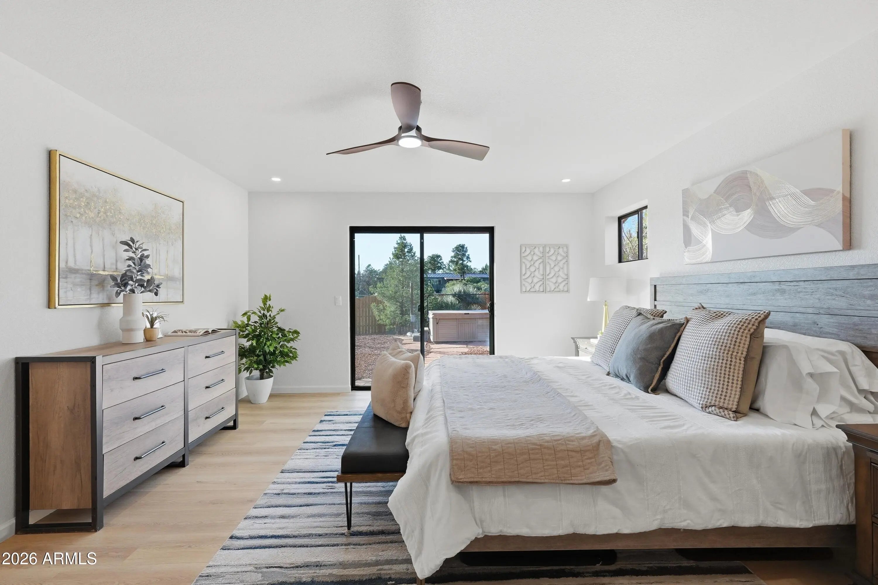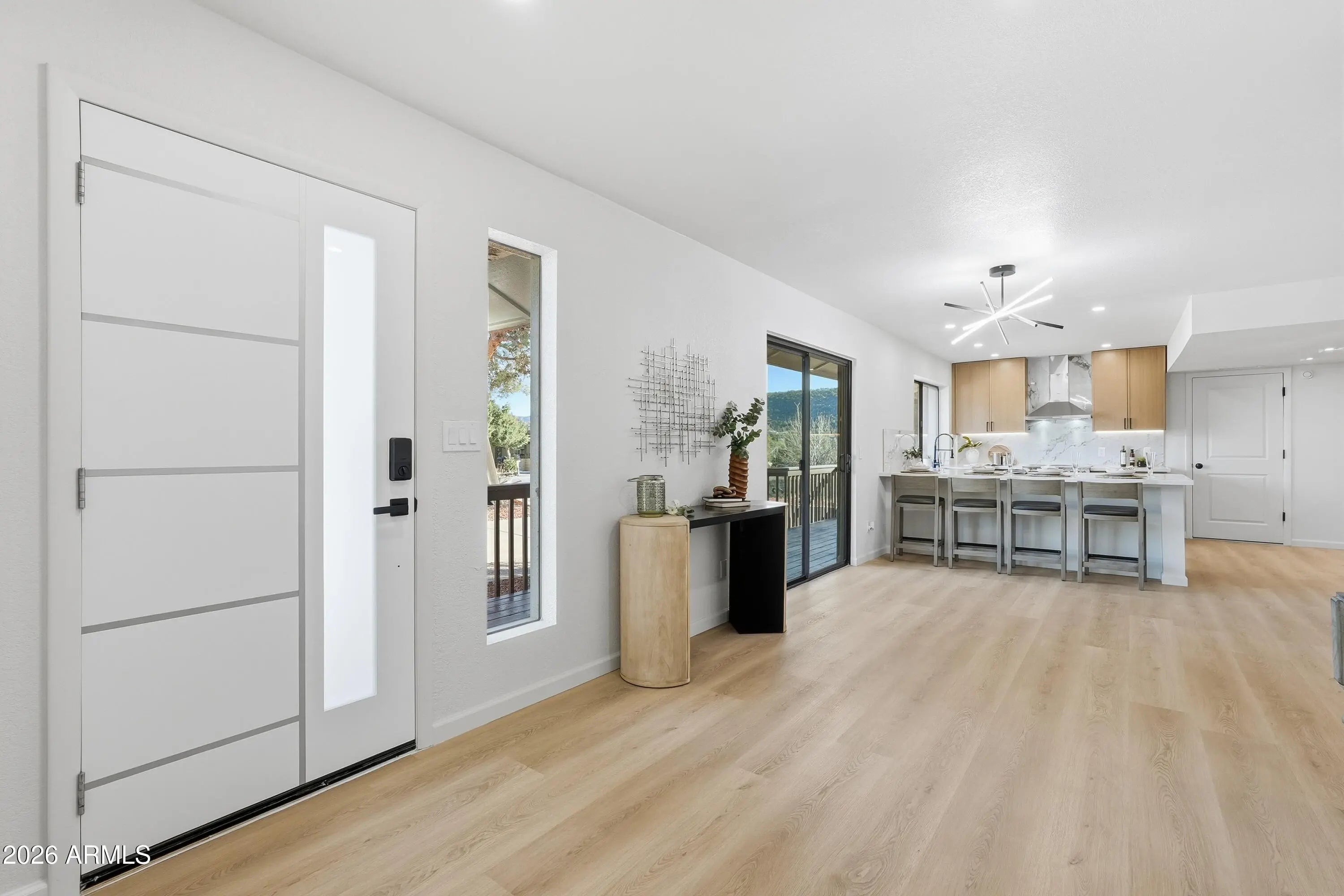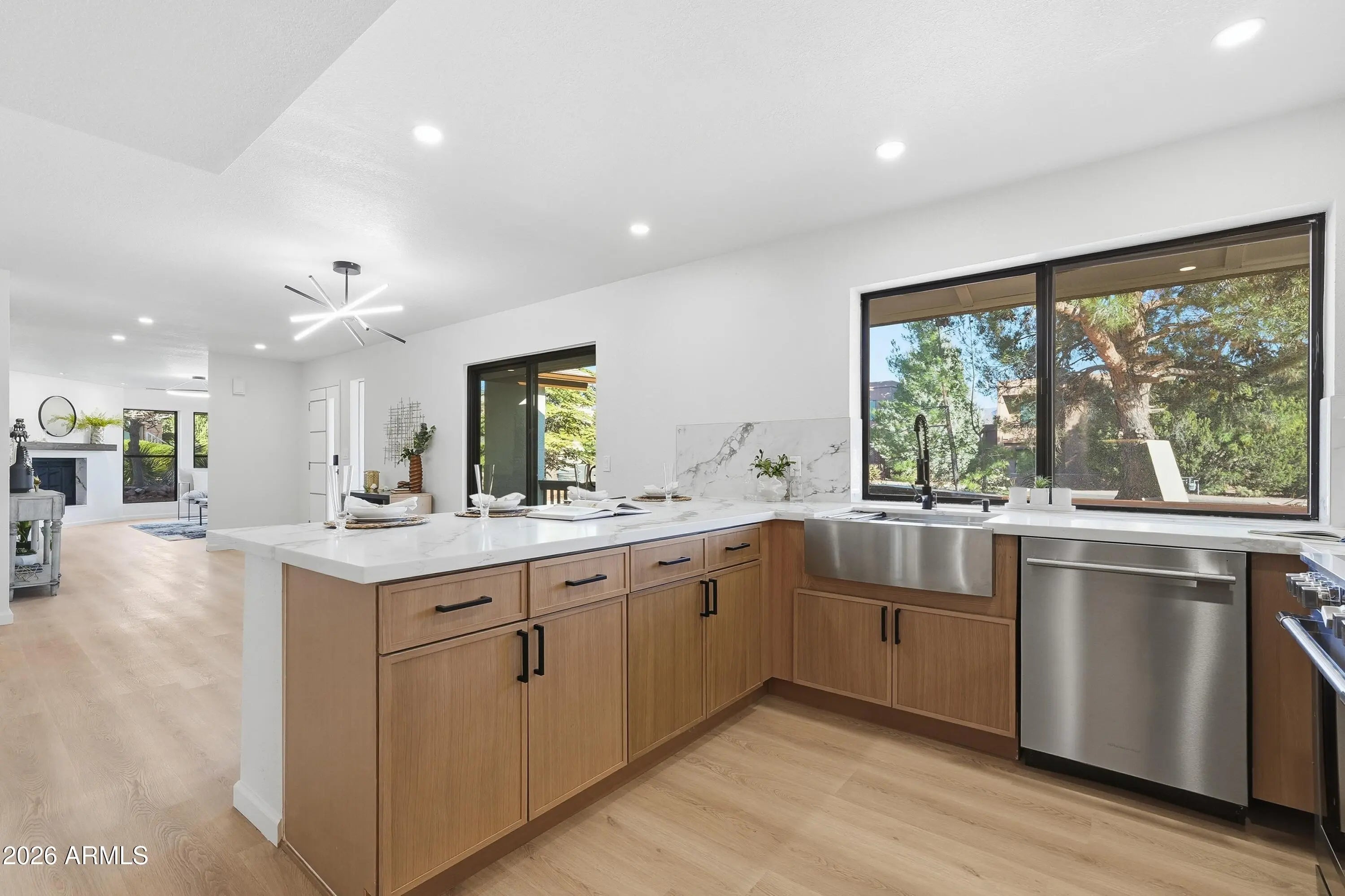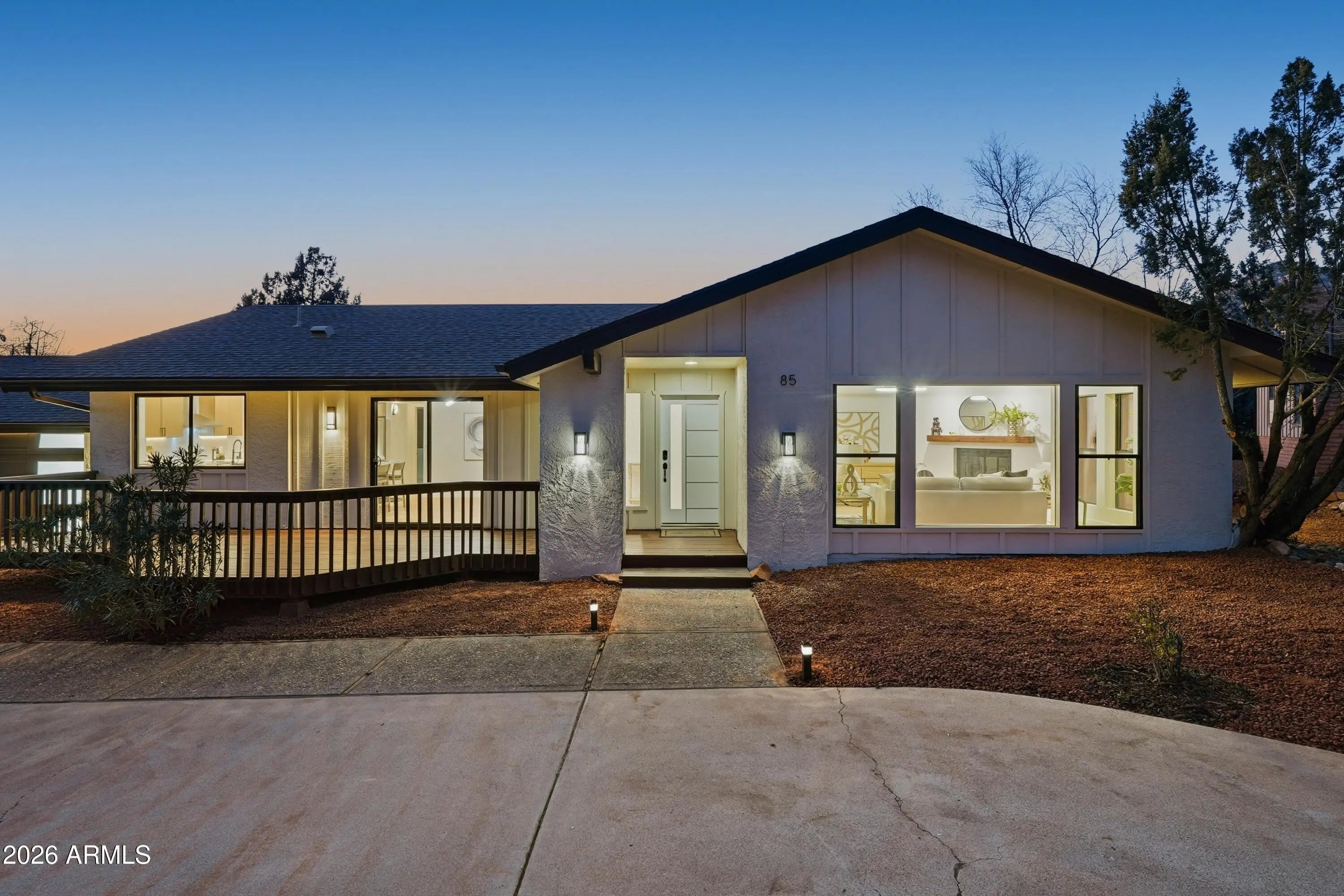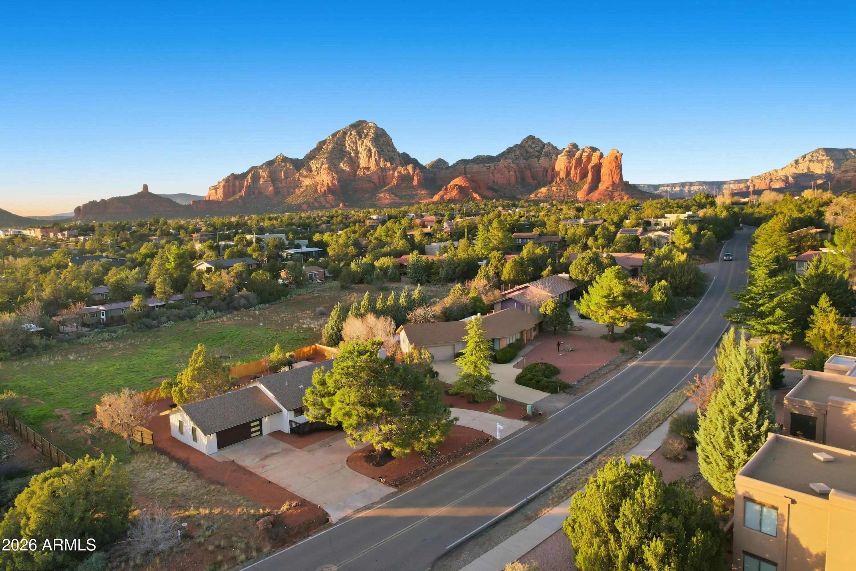 Stunning West Sedona renovation on an oversized 0.28-acre lot with direct red rock views. Single-level 3BD/2BA with a modern open floorplan and all-new kitchen featuring granite counters, updated cabinetry, and new appliances, plus new flooring and fixtures throughout. Both baths are fully updated with modern finishes and dual-sink vanities. Enjoy panoramic Thunder Mountain and Sedona Red Rock views, minutes to shopping, dining, and National Forest trails. Backyard retreat includes a spa-style hot tub and refined fire pit area. Backs to privately owned open space. Perfect as a primary home or private getaway. Short-term rentals OK. Furnishings available.