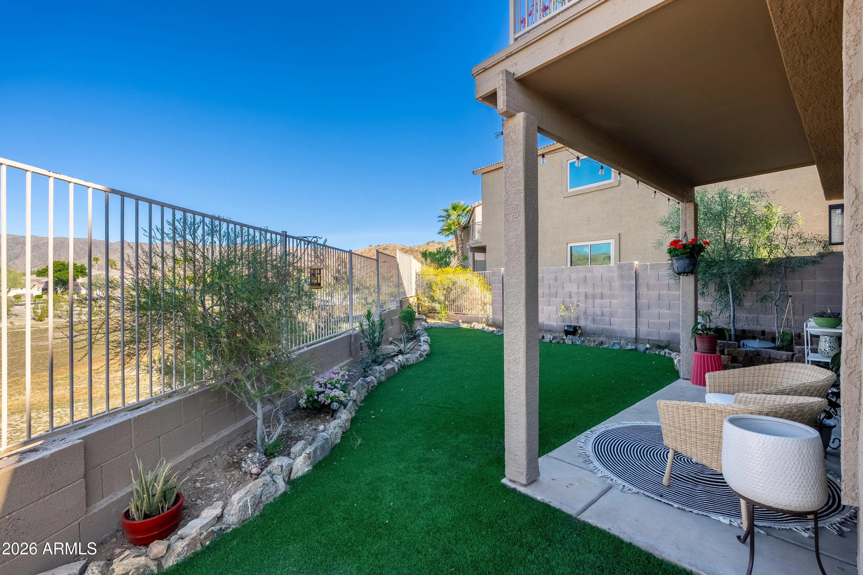 Borders Common Area, North/South Exposure, Borders Preserve/Public Land, Sprinklers In Rear, Sprinklers In Front, Desert Front, Synthetic Grass Back