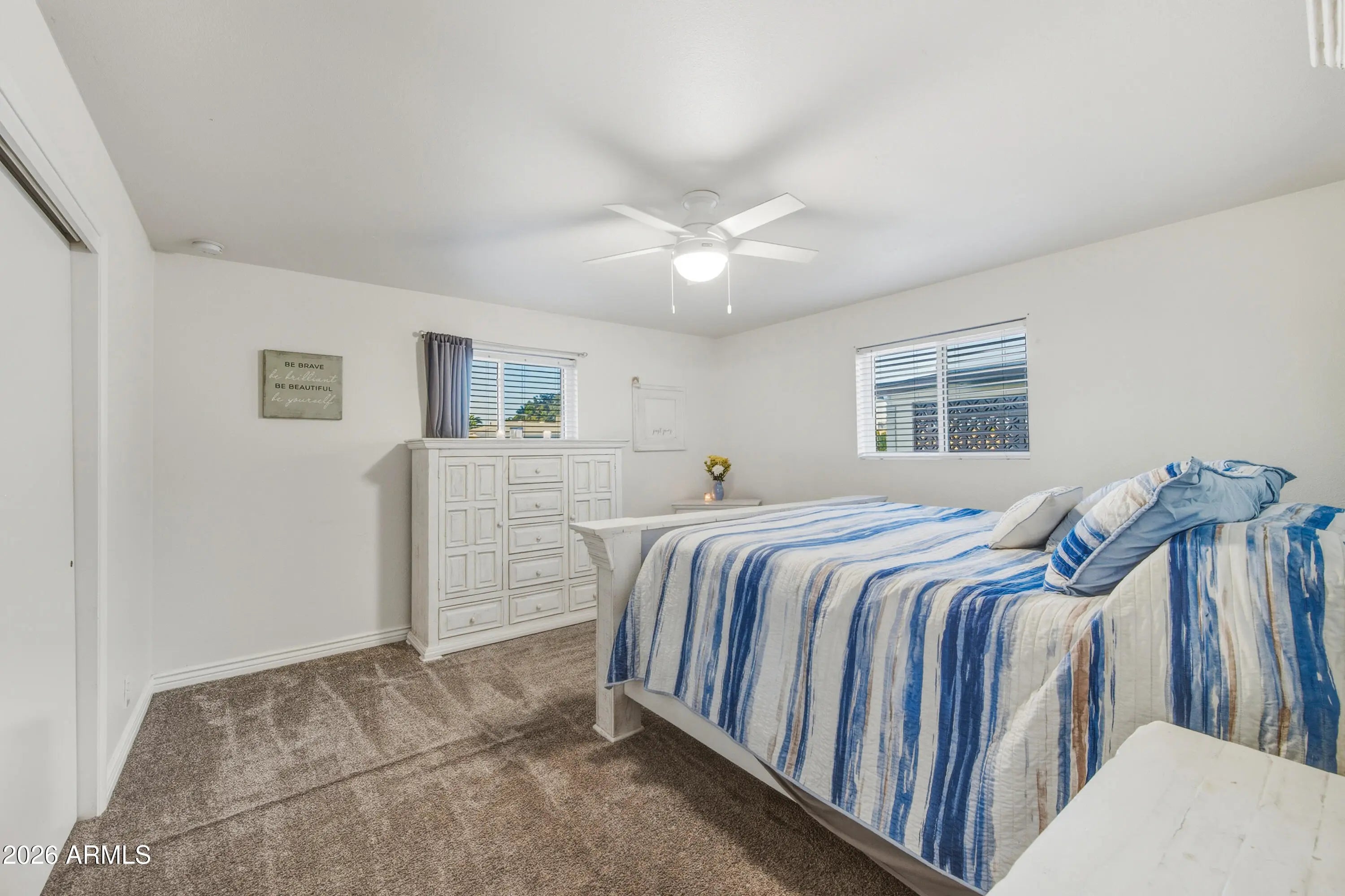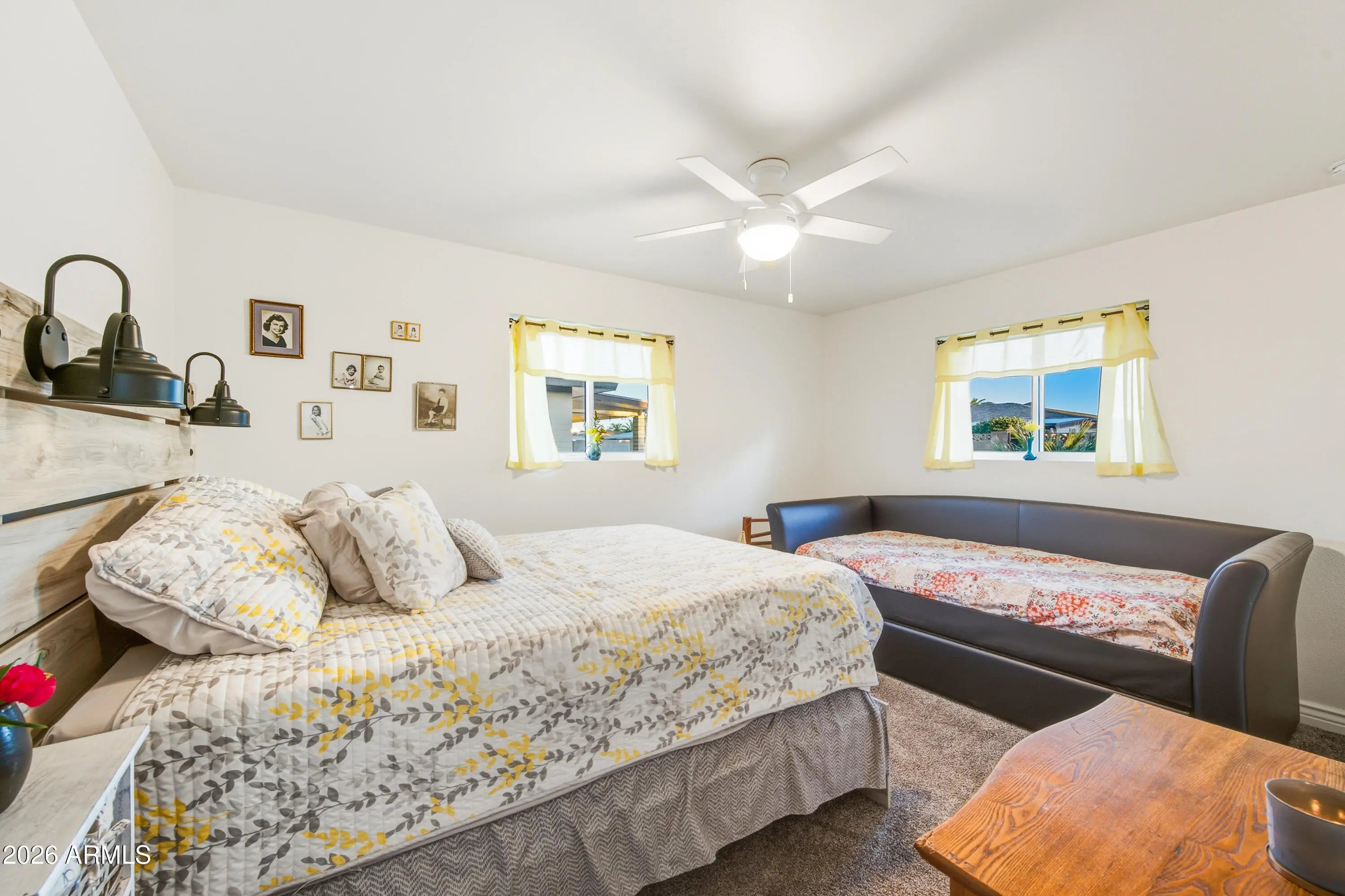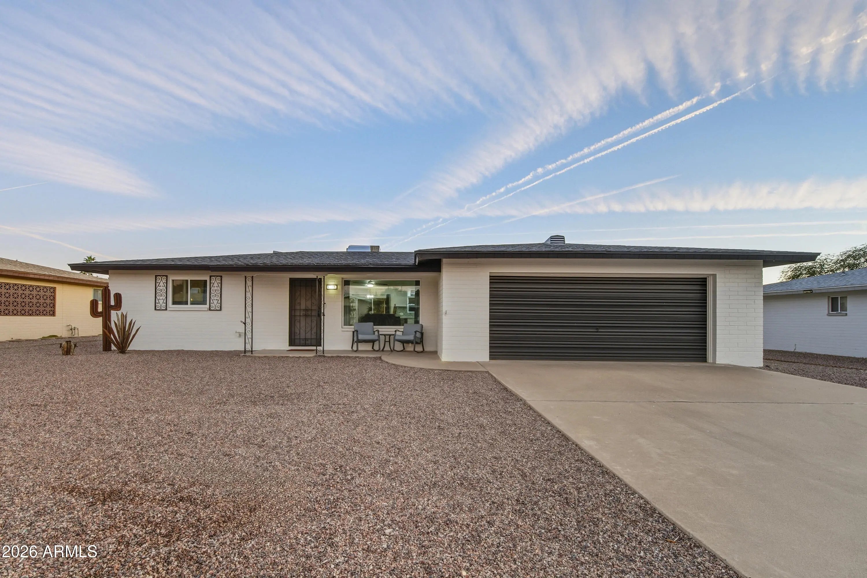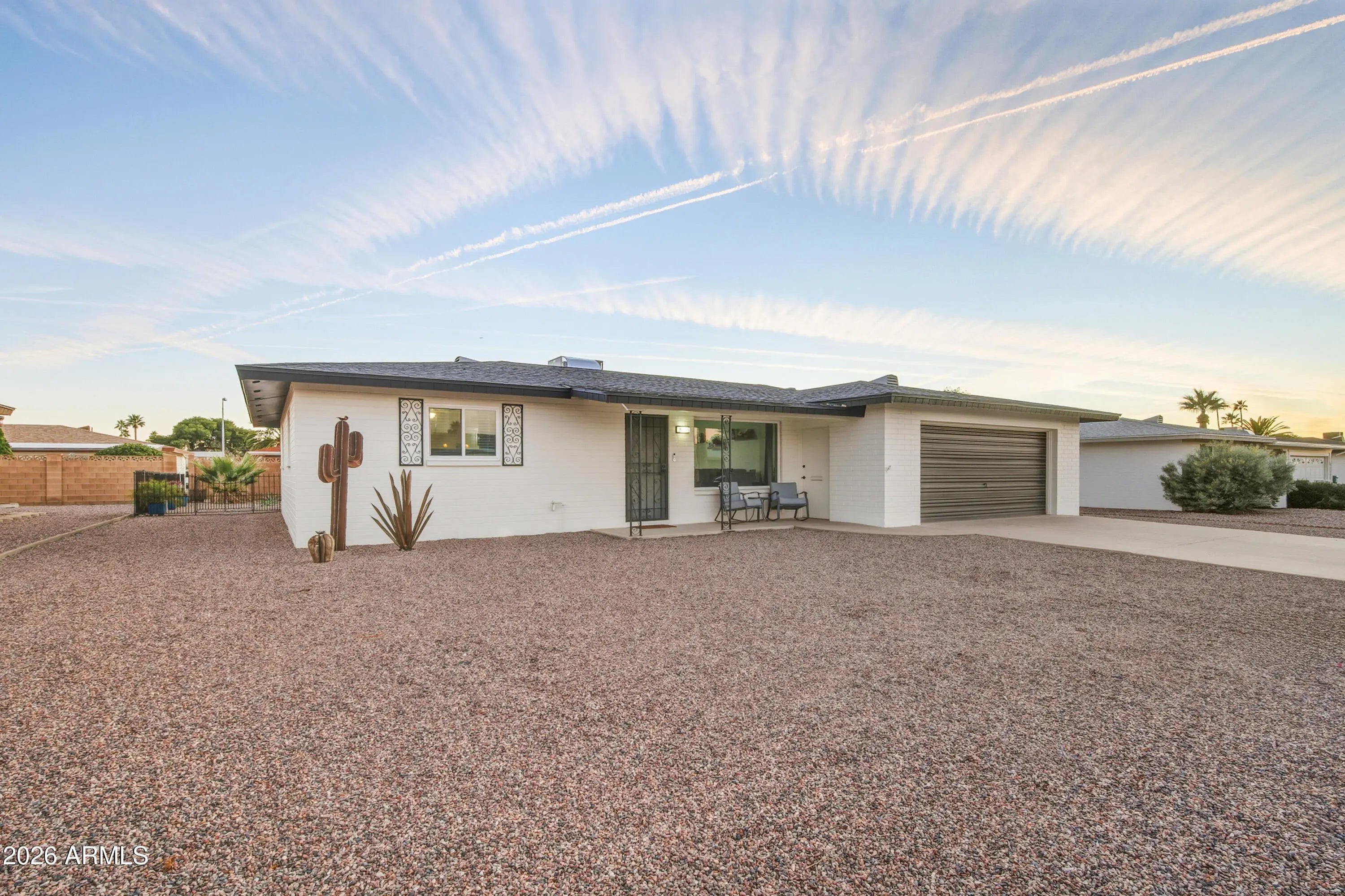 NEW ROOF, NEW A/C, AND NEW WINDOWS highlight this beautifully updated home in the Dreamland Villa age-restricted community. Fully remodeled in 2022, this spacious and open 2-bedroom, 2-bath residence features an oversized 2-car garage and a large finished Arizona room ideal for additional living space. The interior offers indoor laundry, stainless steel appliances, quartz countertops, tile backsplash, newer paint, LVP flooring, and new carpet in the bedrooms. Truly turnkey and move-in ready, this home stands out as one of the finest opportunities in Dreamland Villa.