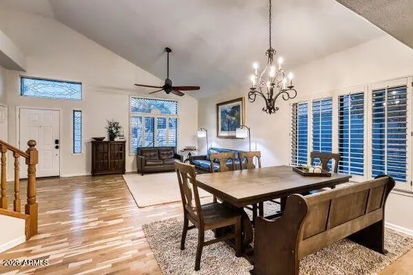Welcome to your desert oasis in the heart of North Phoenix. Beautifully maintained home features a resort-style backyard with mature landscaping, lush grass, extended covered patio, ceiling fans, pool & warm accent lighting, perfect for relaxing & effortless entertaining with indoor-outdoor living year-round. Inside features a large welcoming formal living with vaulted ceilings, a bright island kitchen & greatroom downstairs. Upstairs includes the primary suite with built-in closet organizer, dual vanity and separate shower/tub. Plus a large loft & 2 secondary bedrooms. Upgrades include wood floors, new pool pump, new insulated garage door & more. Located near hiking trails, golf, dining & shopping for an active yet peaceful lifestyle with easy access to freeways & nearby desert preserves