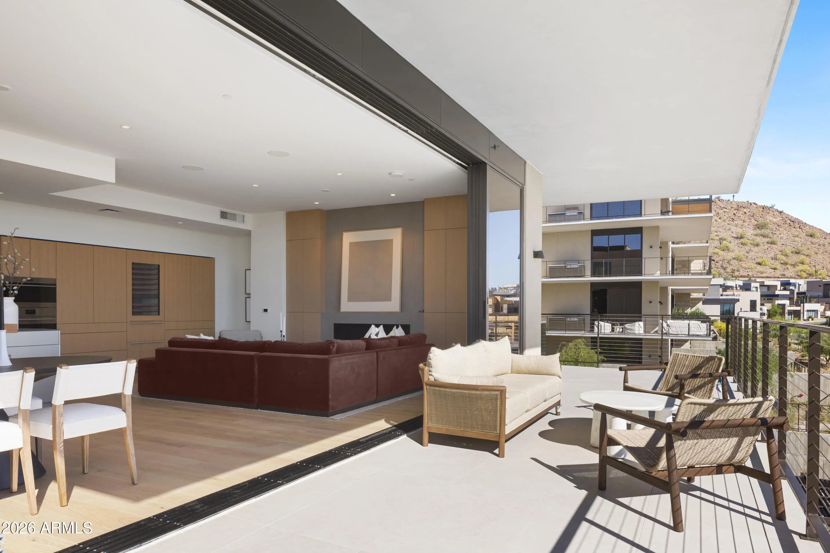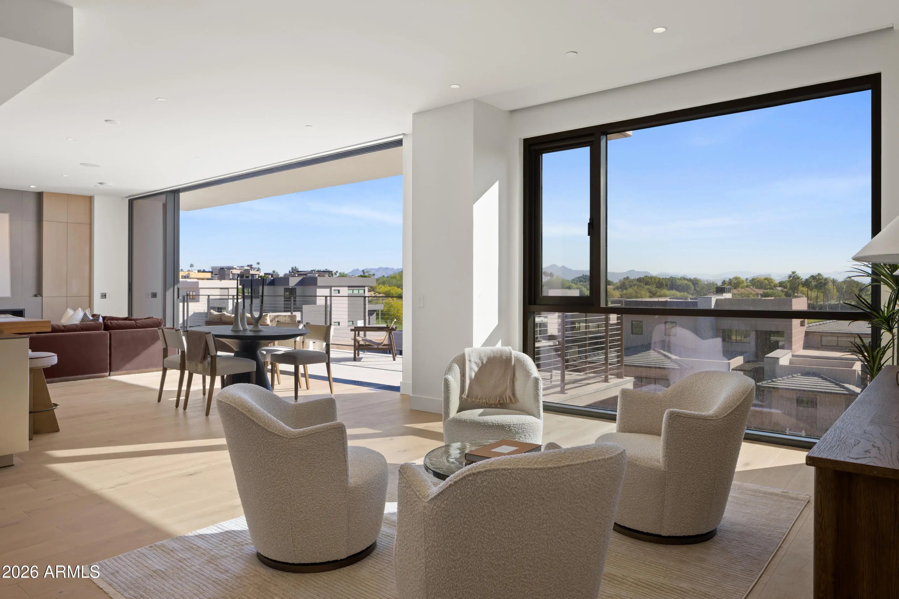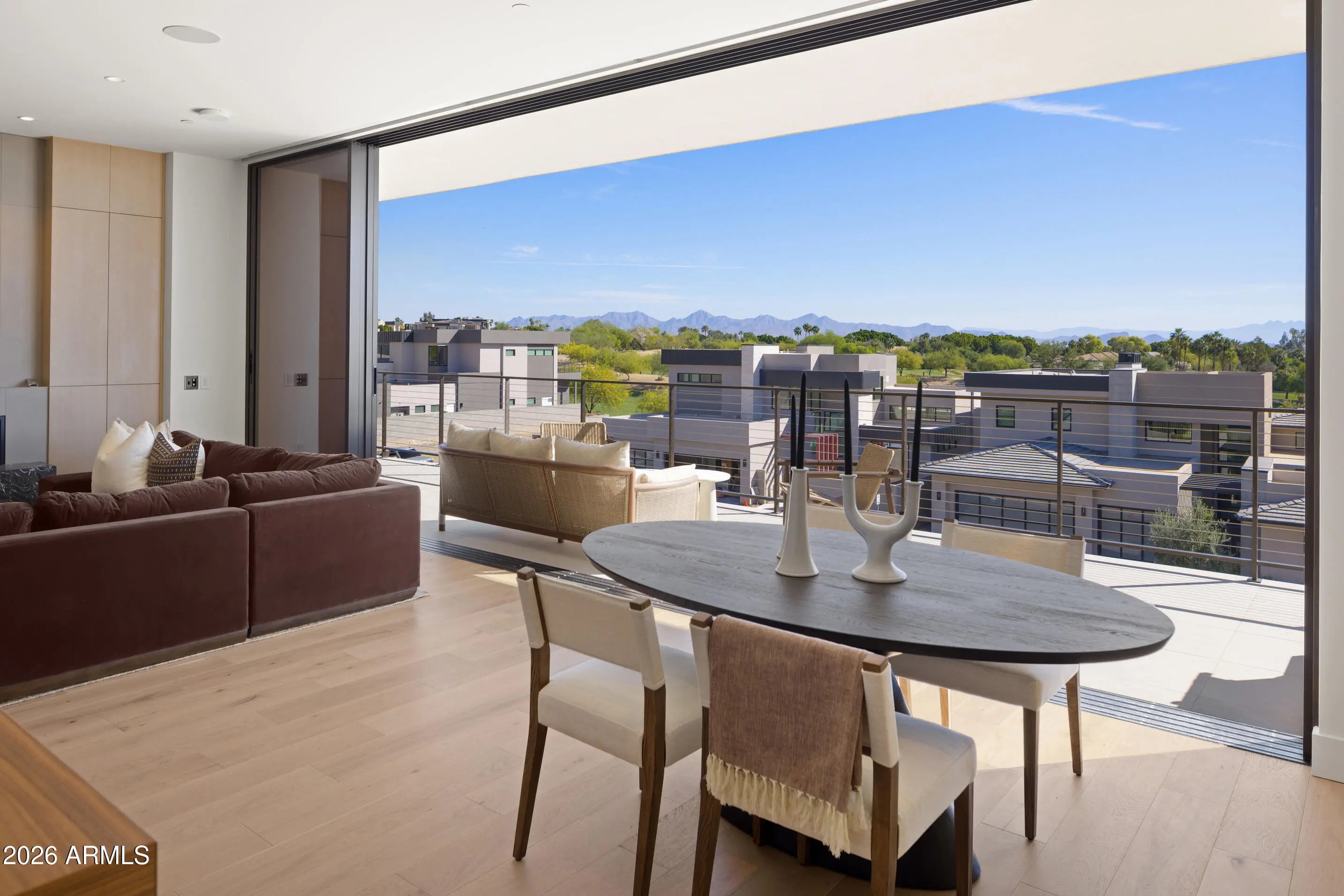 BRAND NEW/JUST COMPLETED, this UPGRADED rare 3 Bd/4Ba + den CORNER residence offers designer-driven living and PANORAMIC VIEWS of the McDowell Mountains, Four Peaks, Phoenician Golf Course, + Scottsdale skyline. Over $250k IN UPGRADES, including $135k of upgraded BULTHAUP CABINETRY and 78K SMART HOME. The expansive great room spans family, dining, and living zones, framed by stacked glass doors and anchored by a sleek marble fireplace. Chef's kitchen boasts a reconfigured island for entertaining and flow, dual Sub-Zero refrigerators +WINE WALL, and Wolf induction range. A spacious WRAPAROUND TERRACE W/BBQ completes one of the most comprehensively upgraded residences at Ascent, and includes access to private rooftop terraces, pools, fitness facilities, and the adjacent Phoenician Resor