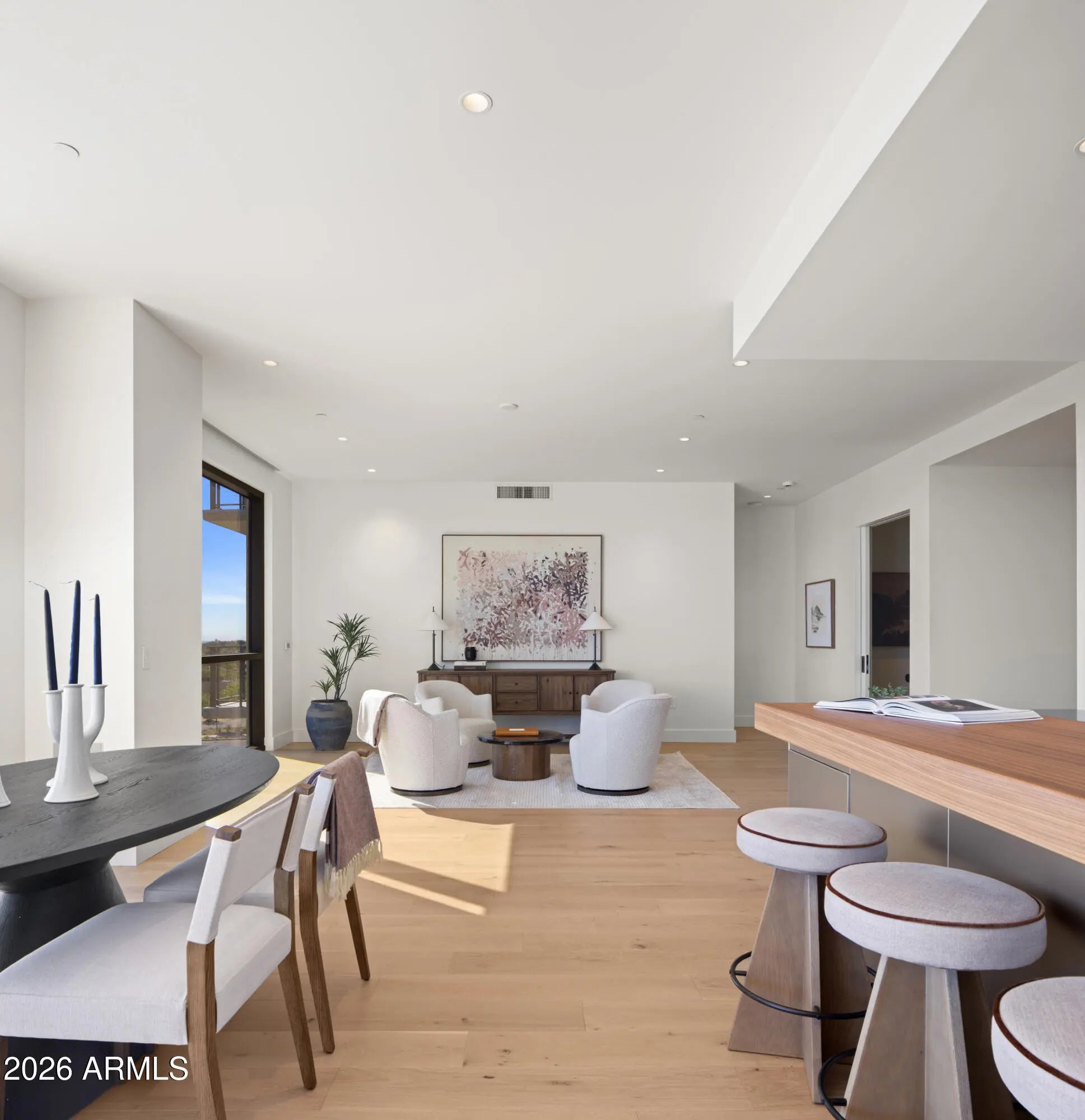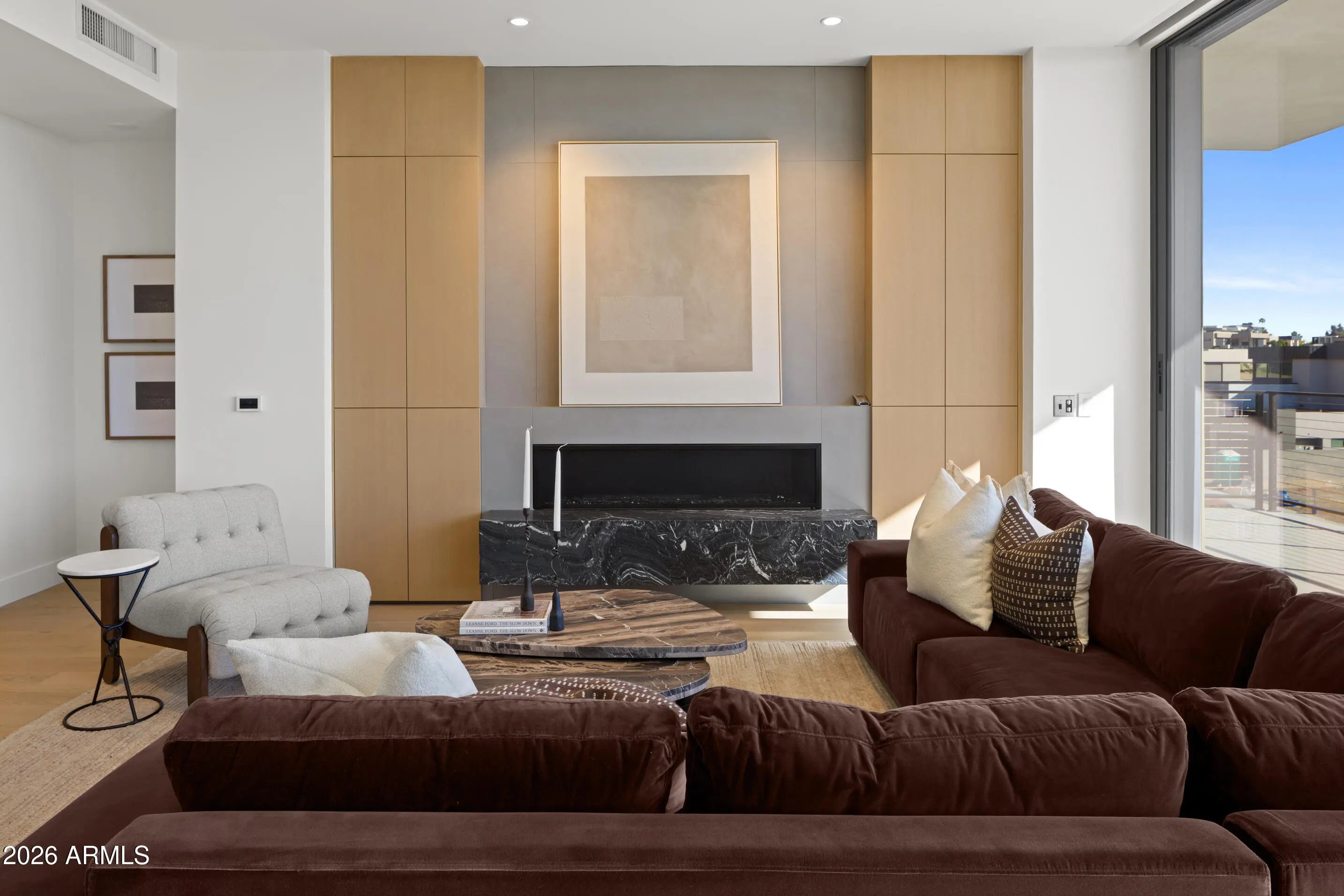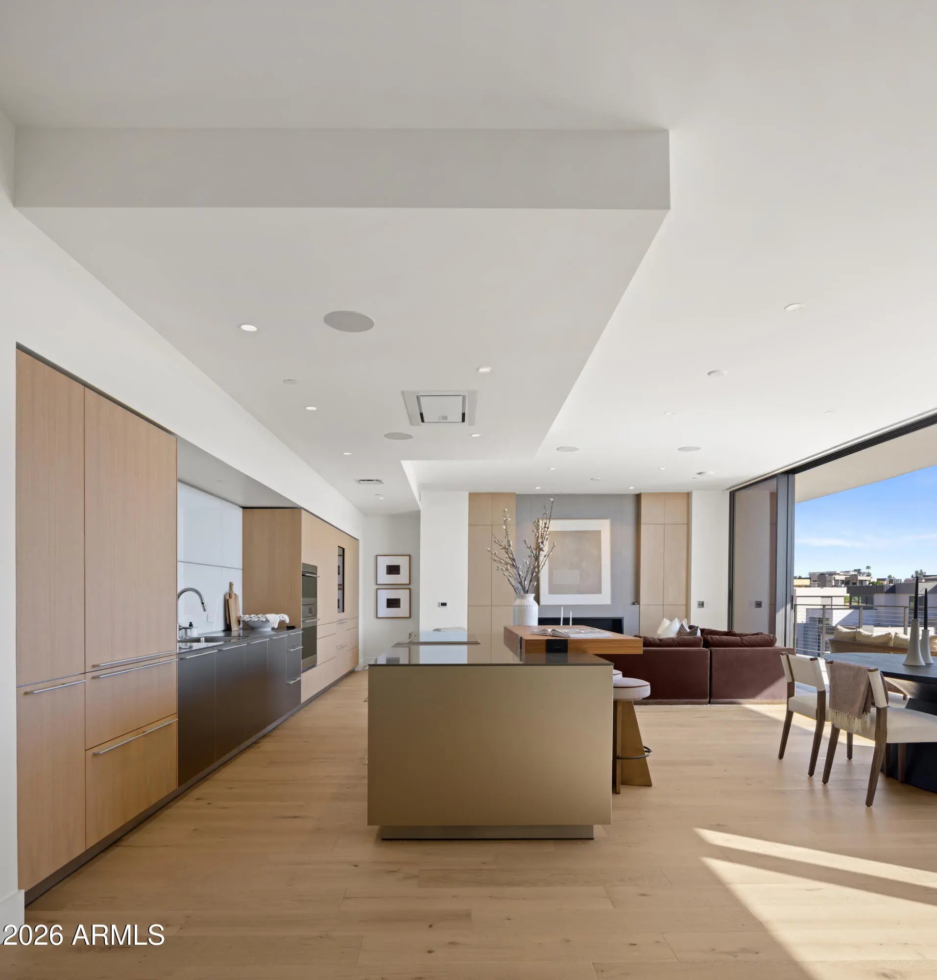BRAND NEW/JUST COMPLETED, this UPGRADED rare 3 Bd/4Ba + den CORNER residence offers designer-driven living and PANORAMIC VIEWS of the McDowell Mountains, Four Peaks, Phoenician Golf Course, + Scottsdale skyline. Over $250k IN UPGRADES, including $135k of upgraded BULTHAUP CABINETRY and 78K SMART HOME. The expansive great room spans family, dining, and living zones, framed by stacked glass doors and anchored by a sleek marble fireplace. Chef's kitchen boasts a reconfigured island for entertaining and flow, dual Sub-Zero refrigerators +WINE WALL, and Wolf induction range. A spacious WRAPAROUND TERRACE W/BBQ completes one of the most comprehensively upgraded residences at Ascent, and includes access to private rooftop terraces, pools, fitness facilities, and the adjacent Phoenician Resor