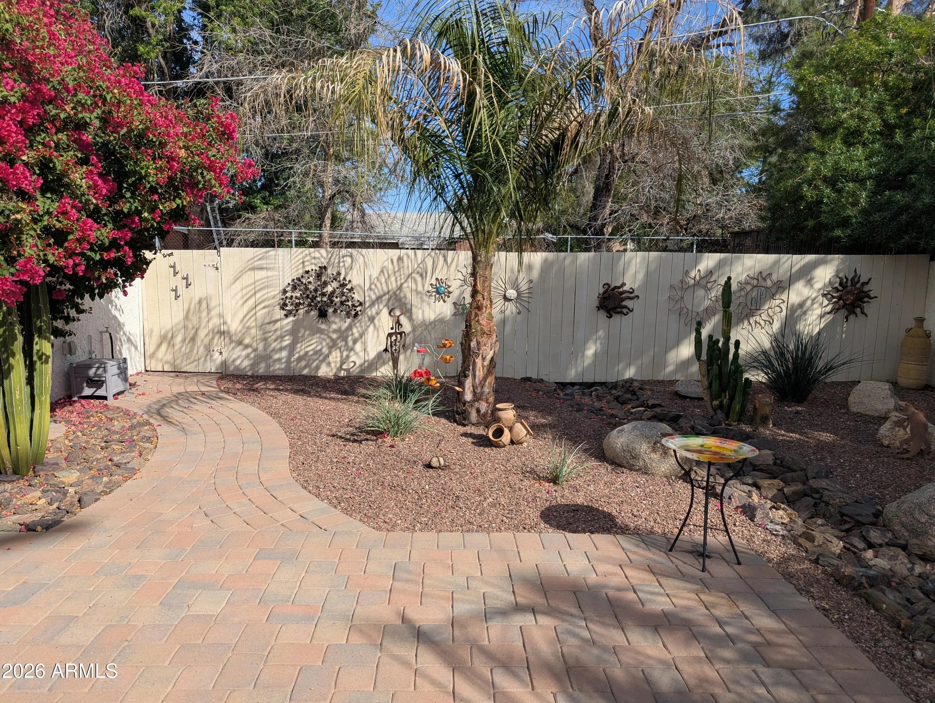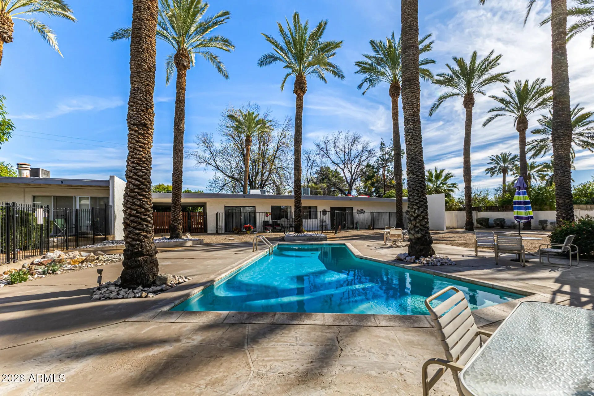 PRIME LOCATION FOR THIS IMMACULATE POOLSIDE GARDEN PATIO HOME WITH A HUGE PRIVATE FENCED YARD & PARKING FOR 2 VEHICLES. This central location is premium being minutes from Arcadia, The Biltmore, Scottsdale, the Freeway (SR 51), shops, restaurants, Downtown/Uptown Phoenix, transit and so much more. This 2 bedroom/2 bathroom home is full of character, charm and a must to see. The living space is spacious and bright. UPGRADES & RENOVATIONS INCLUDE FLOORING, GRANITE COUNTERS, BOTH BATHROOMS REMODELED, FIXTURES, PROFESSIONALLY LANDSCAPED PRIVATE FENCED YARD & MORE. Off the spacious Dining Area & Kitchen is a patio that HAS DIRECT ACCESS TO THE COMMUNITY POOL (the pool is being re-textured shortly). Here is a unique opportunity to own a charming garden patio home with a huge private fenced yard.