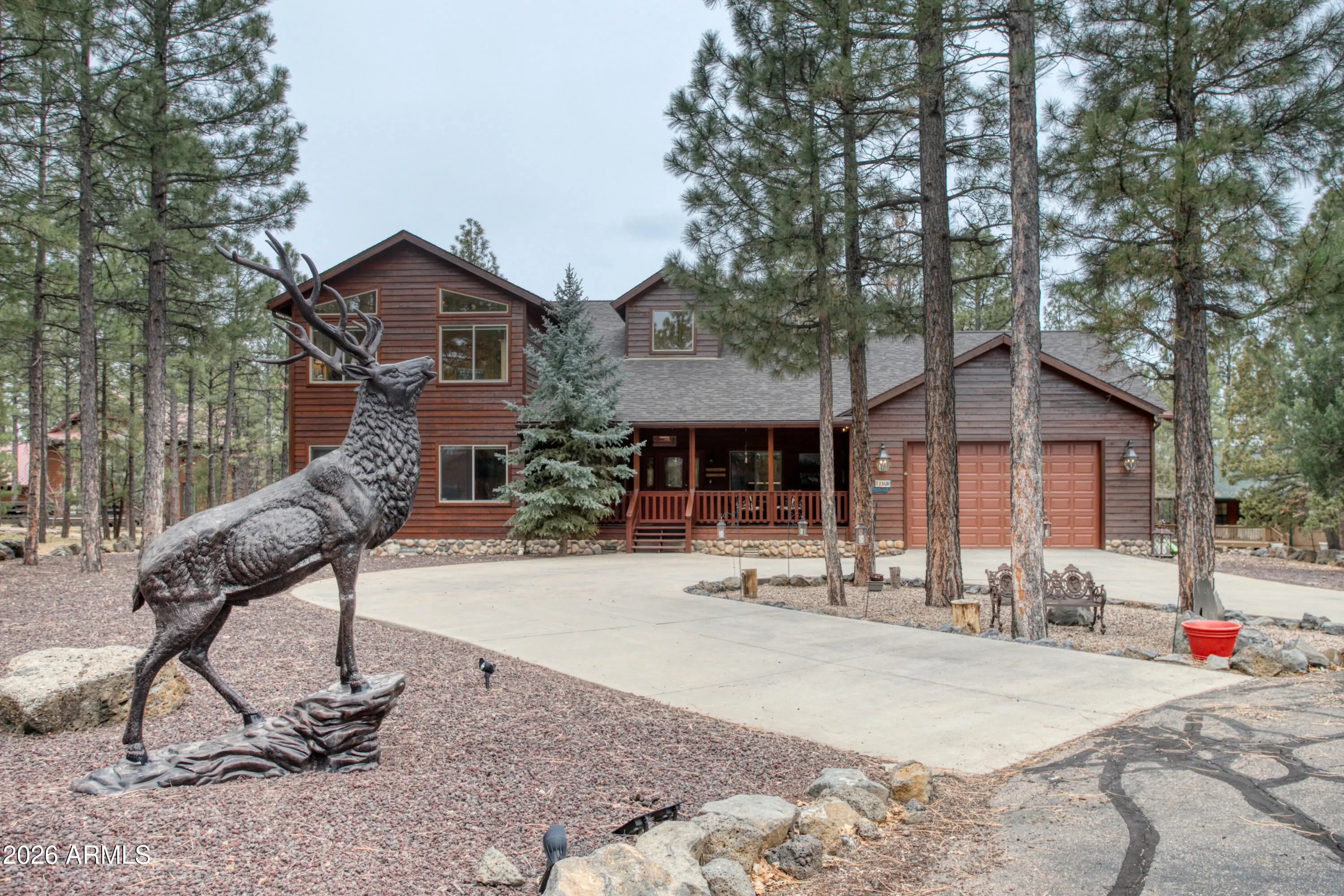 Welcome to a home that truly stands apart in the prestigious, gated community of The Shores at Rainbow Lake. One of Lakeside's most highly sought-after neighborhoods offering a private community boat launch and an exceptional lake community lifestyle. This stunning 4-bedroom, 3-bath, 3,363 SqFt residence sits on approximately .36 acres at the end of a long cul-de-sac, providing a rare level of privacy, as the lot beside the home is owned by the community and will never be built on, giving you lasting tranquility and space. From the moment you step inside, the Great Room makes a breathtaking first impression with its 25-ft soaring vaulted tongue-and-groove ceilings, beautiful architectural design, and impressive floor-to-ceiling stone fireplace. **READ MORE** The open-concept layout seamlessly connects the living, dining, and expansive chef's kitchen, featuring solid hickory cabinetry, massive countertop space, built in drawer organization, RO system, prep sink, 36" induction cooktop, dual wall ovens with a microwave hidden in the cabinets above, and abundant storage. Absolutely perfect for entertaining, gathering, and enjoying true mountain-living comfort. The main-level primary suite feels like a private retreat with its own covered deck, oversized bedroom, spa-style bathroom with jetted soaking tub, and walk-in closet. Also on the main floor is a second ensuite bedroom - ideal for guests or multigenerational living. There is also a spacious laundry room with workstation, massive storage room, and direct access to the dog run. Upstairs, enjoy a cozy loft area, another expansive ensuite bedroom, a large storage closet, and a generously sized fourth bedroom. This home truly provides flexibility, comfort, and space for everyone. This exceptional home is thoughtfully equipped with a water softener, central vacuum, brand new Malarkey Vista roof (2025), fresh exterior stain (2025), and is being offered partially furnished, making your move-in seamless! Outside, the property continues to impress with a convenient U-shaped circular driveway, oversized 2-car garage, large covered front deck, and a peaceful covered back deck perfect for relaxing or entertaining. Private. Spacious. Rare. This incredible home offers luxury, warmth, and a lifestyle that captures the best of mountain living at The Shores. If you've been searching for something truly special - this is it. Discover the White Mountains of Arizona where adventure, beauty, and fresh mountain air come together. Enjoy four stunning seasons, 40 lakes, and 600+ miles of rivers and streams, perfect for fishing, kayaking, and exploring. Hit the trails on one of the largest trail systems in the Southwest, or spend winter days at Sunrise Ski Resort, just 40 minutes away with three mountains of skiing, snowboarding, and sledding. Love shopping or culture; wander through antique shops, summer arts & craft fairs, and lively music festivals. Golfers can tee off at seven scenic courses, including three public gems. It's no wonder Pinetop-Lakeside was voted the "Best Cabin Region in the U.S." The White Mountains Arizona's best-kept secret. Come explore and embrace the MAGIC!