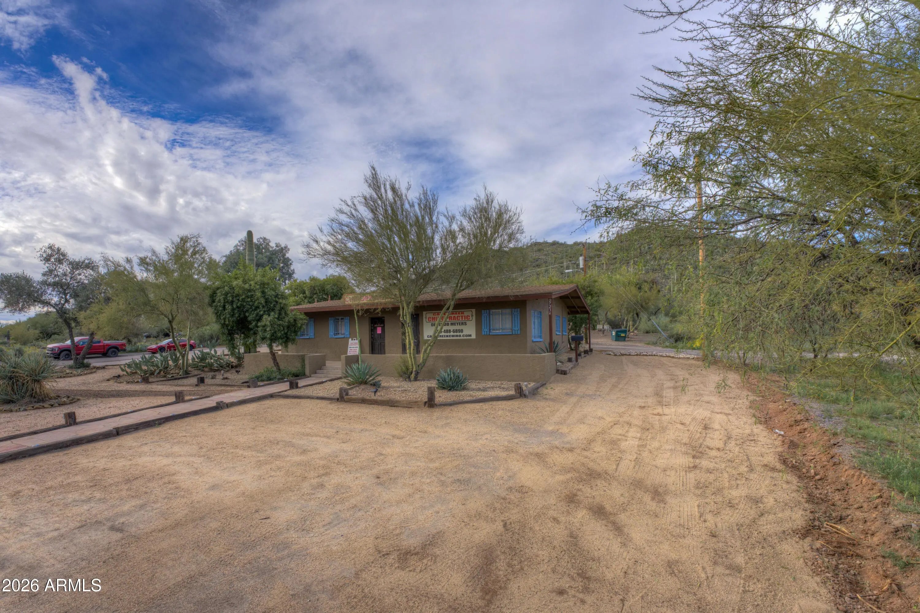 Prime location just south of the Cave Creek Fire Department and Town Administration. This is the first Commercial building on the west side of Cave Creek Rd as you enter the Town. This highly visible, stand-alone property features desirable TCC Commercial Zoning. The lot is a prominent corner lot with access from both directions. The site offers 18-20 parking spaces, excellent street exposure, and a separate storage building. Use as a single free standing commercial building or create multiple rental spaces within the existing envelope. Flexible zoning and exceptional visibility support a wide range of commercial uses. Currently two offices, one used by the seller. Main user is willing to stay.
