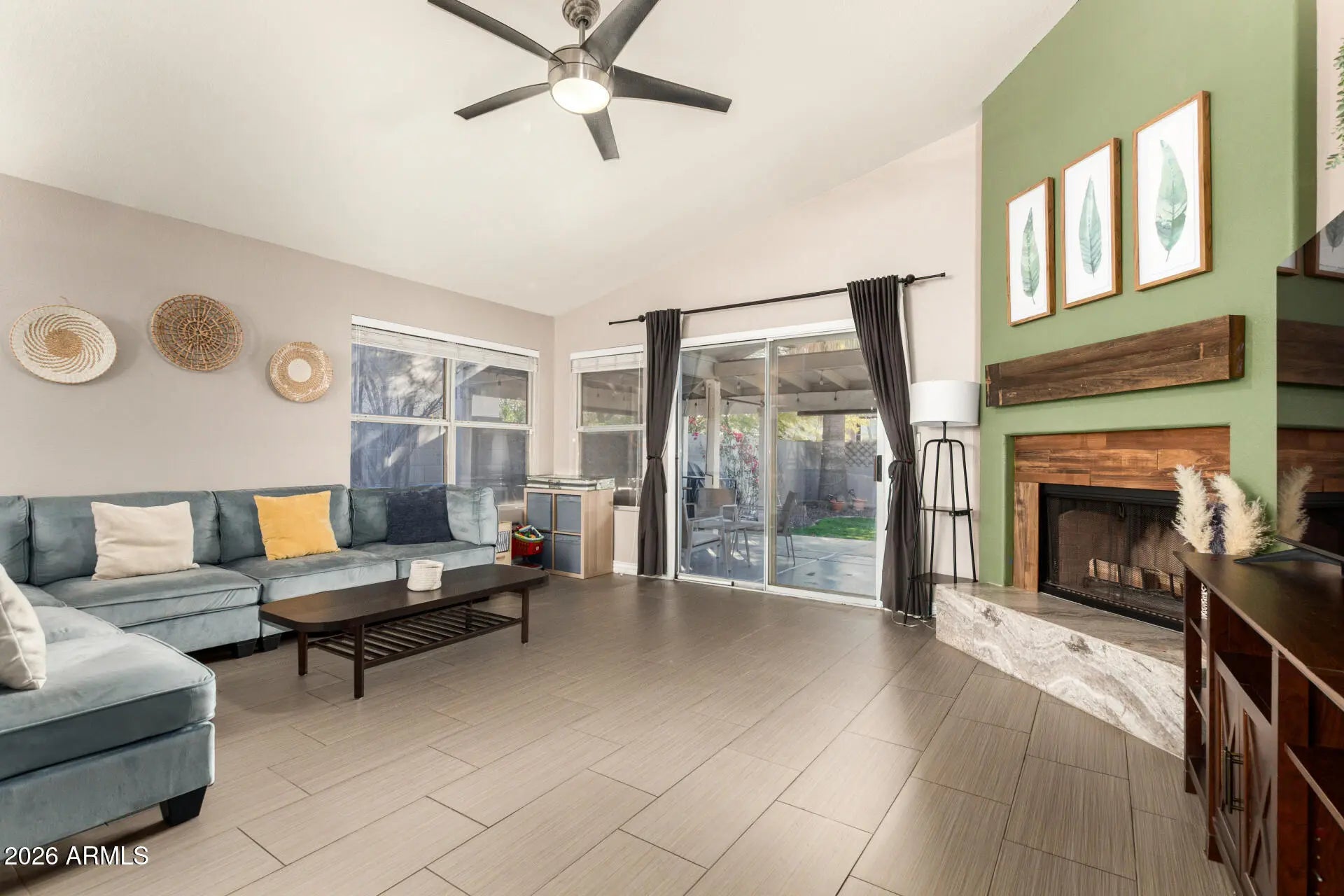 Looking for a new home? This charming 3-bed, 2-bath single-level residence in Phoenix is the one! A 2-car garage, manicured landscape, & a front patio are just the beginning. The inviting interior features tons of natural light, vaulted ceilings, a designer palette, and wood-look tile flooring throughout. With a fireplace as the focal point, the desirable great room exudes warmth and comfort. The kitchen boasts SS appliances, recessed lighting, ample gray cabinetry, a pantry, and a bay window w/plantation shutters. Enter the primary bedroom to find an ensuite with dual sinks, a separate tub/shower, & outdoor access. The perfectly sized backyard, with a covered patio & lush, is the ideal spot to relax or enjoy BBQ. The storage shed is an added perk. Desirable location! Don't miss this gem!