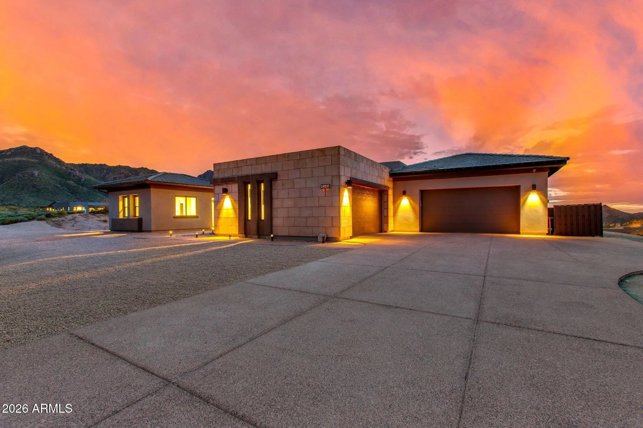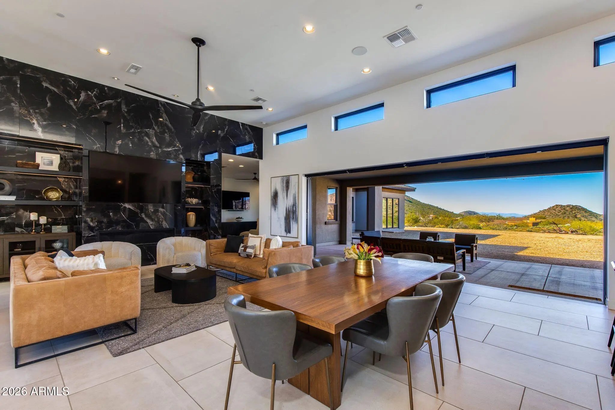 Experience the pinnacle of resort-style living in North Scottsdale's prestigious, guard-gated Sereno Canyon community. Positioned high above neighboring residences, this exceptional 3.7-acre premier homesite offers rare privacy and sweeping, unobstructed views through the natural valley between the McDowell Mountains and Troon Mountain—capturing breathtaking panoramas and unforgettable sunsets. A striking glass-and-iron front door opens to a light-filled great room with full-wall sliding glass doors that seamlessly connect indoor and outdoor living. Ideal for both everyday living and entertaining, the space flows into an oversized chef's kitchen featuring abundant custom cabinetry, expansive counter space, a 48'' gas range with double ovens, and a built-in stainless steel refrigerator. A private office sits just off the great room, while a formal dining room is enhanced by a temperature-controlled wine room that stores 300+ bottles. The desirable split floor plan offers exceptional privacy featuring a total of 6 bedrooms, all ensuite (including the casita) and 6 bathrooms and two half bathrooms. The primary bedroom is split with a luxurious primary retreat featuring dual vanities, soaking tub, expansive tiled shower, dedicated makeup area, and a generous walk-in closet with its own washer and dryer. The opposite wing includes a versatile flex space ( it's own stackable laundry closet) and additional ensuite bedrooms, all with walk-in closets, including a fourth ensuite ideal as a secondary primary. A private guest casita with kitchenette, living area, bedroom, bath, and walk-in closet with washer and dryer completes this remarkable estate. Completing this exceptional offering is immediate access to the Tom's Thumb Trailhead just beyond the backyard, along with walkable proximity to the exclusive Sereno Canyon Mountain House Lodge. Residents enjoy refined dining at Alterra, resort-style pool and spa amenities, and a fully equipped fitness center, all framed by the dramatic mountain landscape. Beyond the gates, North Scottsdale presents an array of upscale shopping, acclaimed restaurants, championship golf, and endless outdoor recreation. This is a rare opportunity to experience a sophisticated desert lifestyle where privacy, luxury, and natural beauty converge.