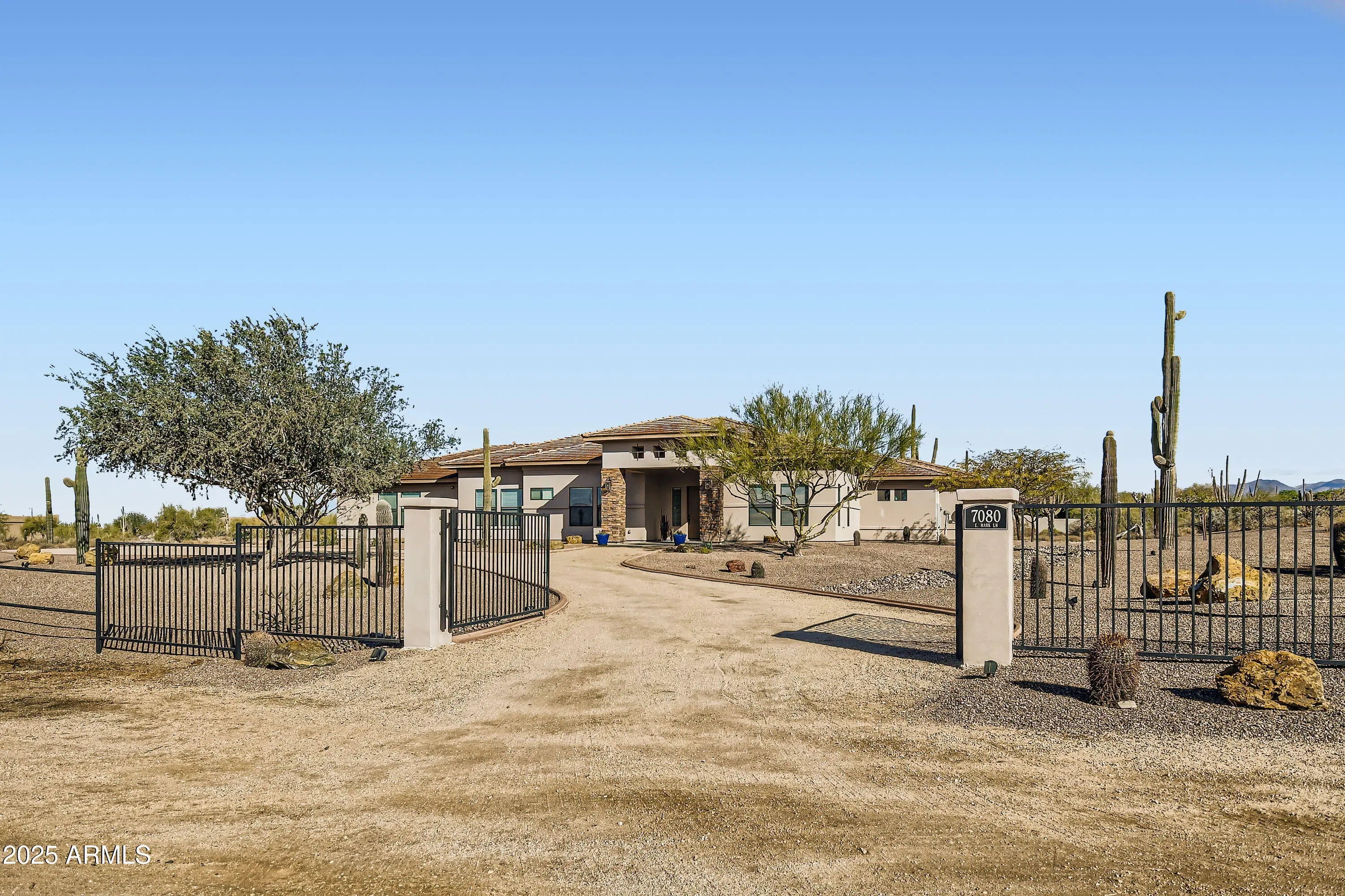 Incredible private estate situated on 2+ acres in a prime Scottsdale location with No HOA. 3000+sf shows pride of ownership & attention to detail. Spacious great room with cozy fireplace opens to the backyard for seamless entertaining. Covered patio & pergola create a perfect space for watching sunsets. Gourmet kitchen features a huge island with waterfall granite, pot filler, top of the line appliances, walk-in pantry & modern glass back splash. Master suite features a gorgeous bathroom with his & hers vanities, oversized tile surround shower, soaking tub & huge walk-in closet. Secondary bedrooms feature en-suite baths & walk-in closets. Gorgeous mountain view's! Land can still be developed for a horse barn, casita or whatever you imagine. Near shopping, restaurants & minutes to the 101