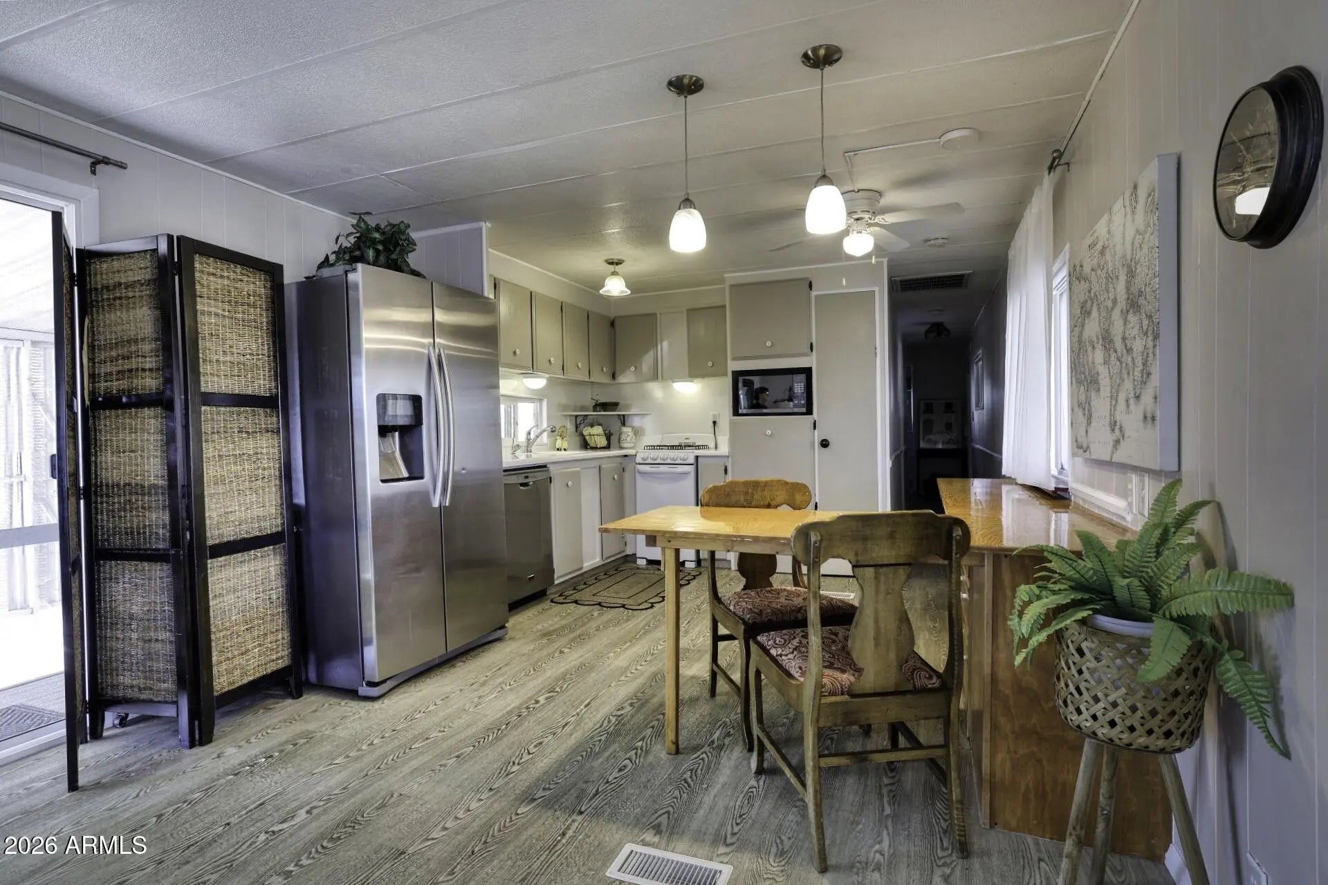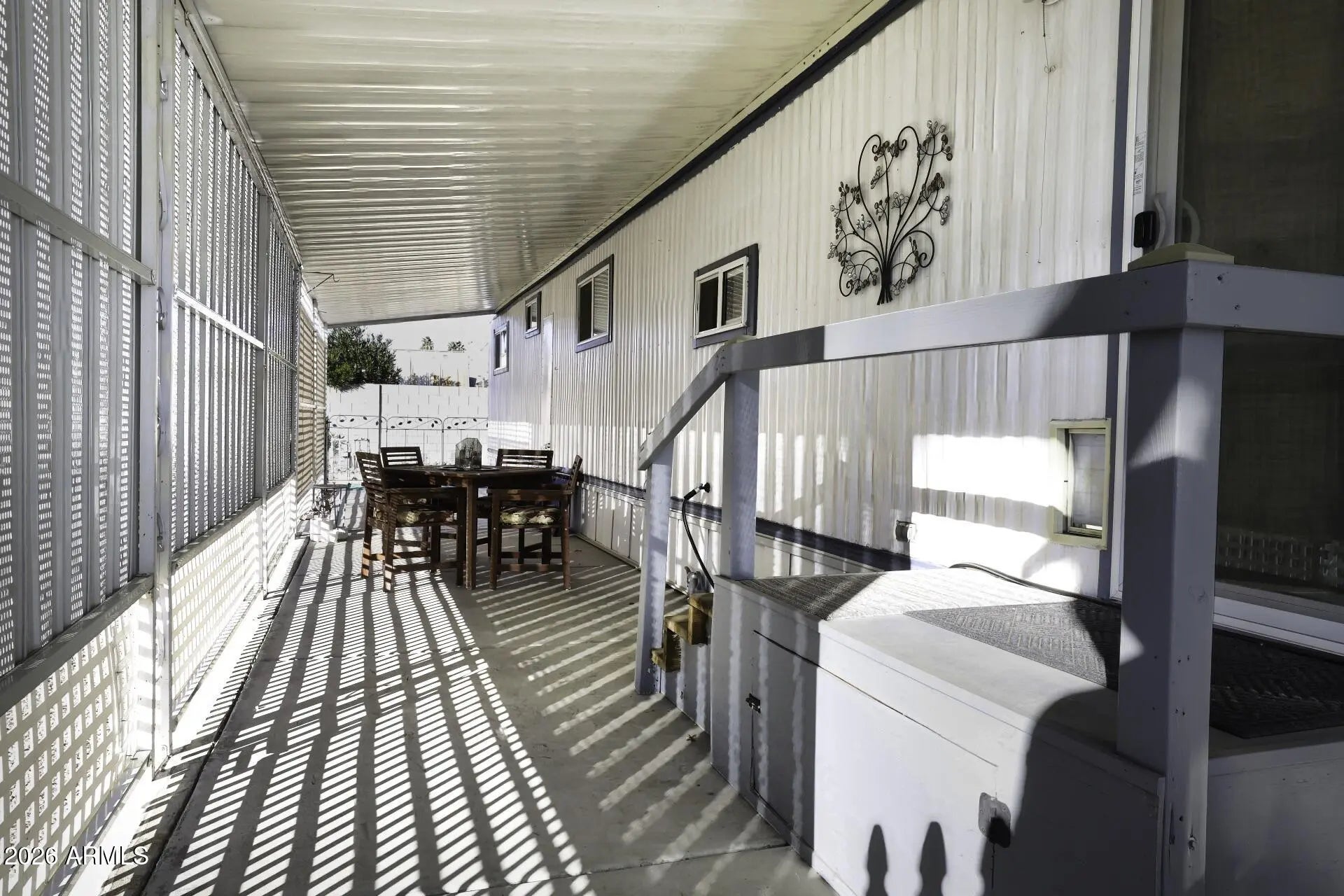 Quiet Street and Large Lots! Welcome to this adorable 2-bedroom, 1-bathroom single-wide manufactured home nestled on a peaceful end street. Sits on a very Large lot for rent/lease from Community. Move-In Ready condition. Accessible from Loop 202 to all major roadways. With 720 square feet of cozy comfort, this home is full of charm and easy living! Step inside to find newer windows letting in loads of natural light, central A/C to keep you cool all summer, and a washer & dryer included, it's all here and move-in ready! Enjoy your morning coffee or evening breeze on the covered patio, and you'll love the convenience of covered parking too.