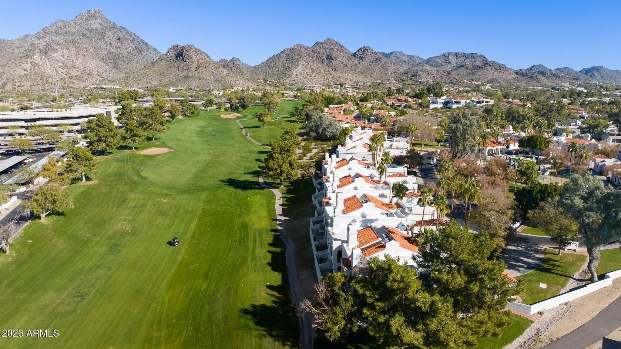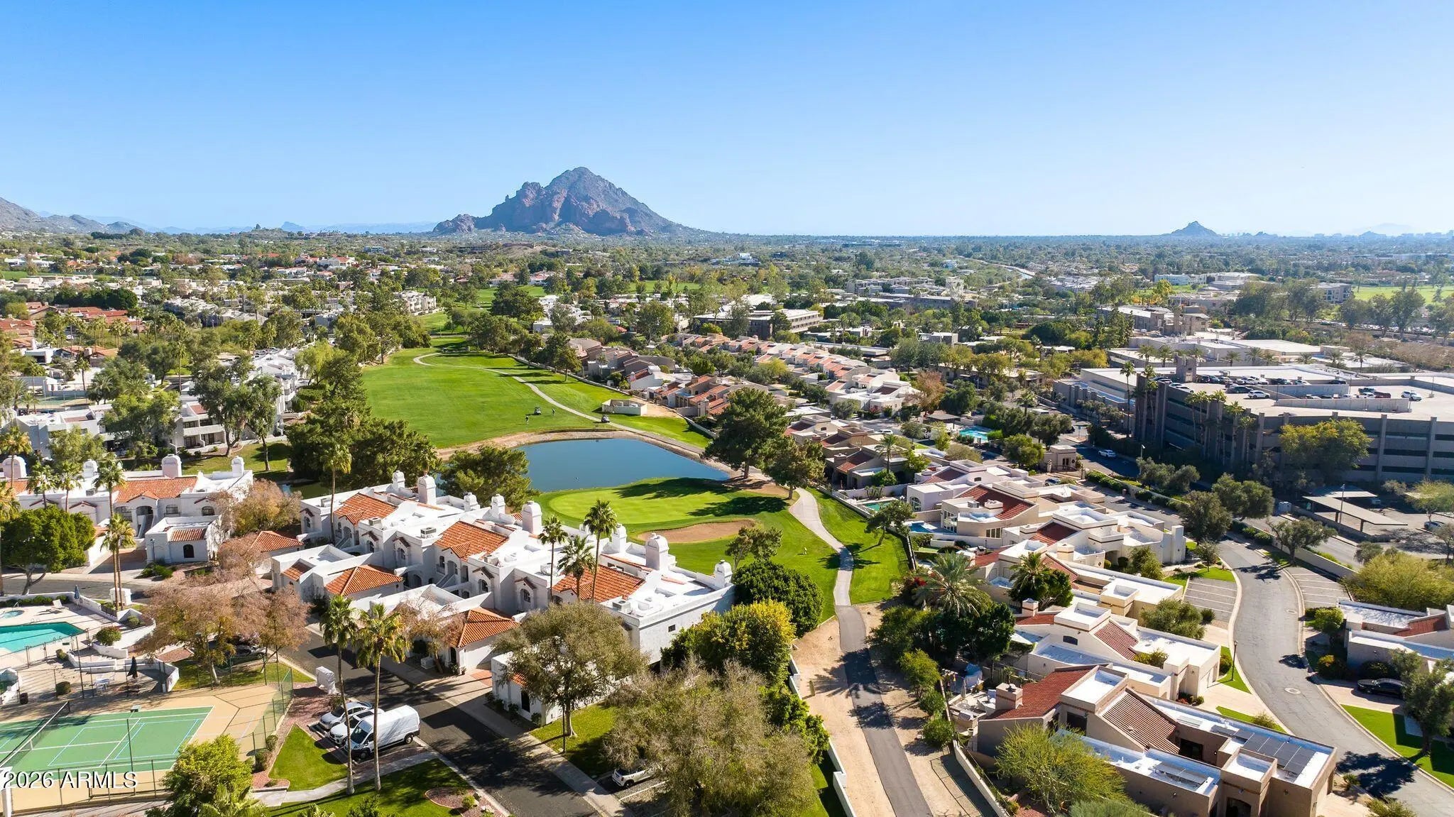 Perfectly positioned within the gated community of Biltmore Courts II, this light-filled second-floor condo offers an elevated lock-and-leave lifestyle with Arizona views. High ceilings, warm wood flooring, and an open living layout create a refined feel, with a private balcony overlooking the Biltmore Links Golf Course and views of Piestewa Peak. The kitchen features a large island, stone countertops, stainless steel appliances, and a patterned tile backsplash. Ideally located near the Arizona Biltmore and Wrigley Mansion, with convenient access to Biltmore Fashion Park, dining, golf, hiking, pickleball, and Sky Harbor Airport. The property has been successfully used as an income-producing rental and offers short-term rental flexibility.