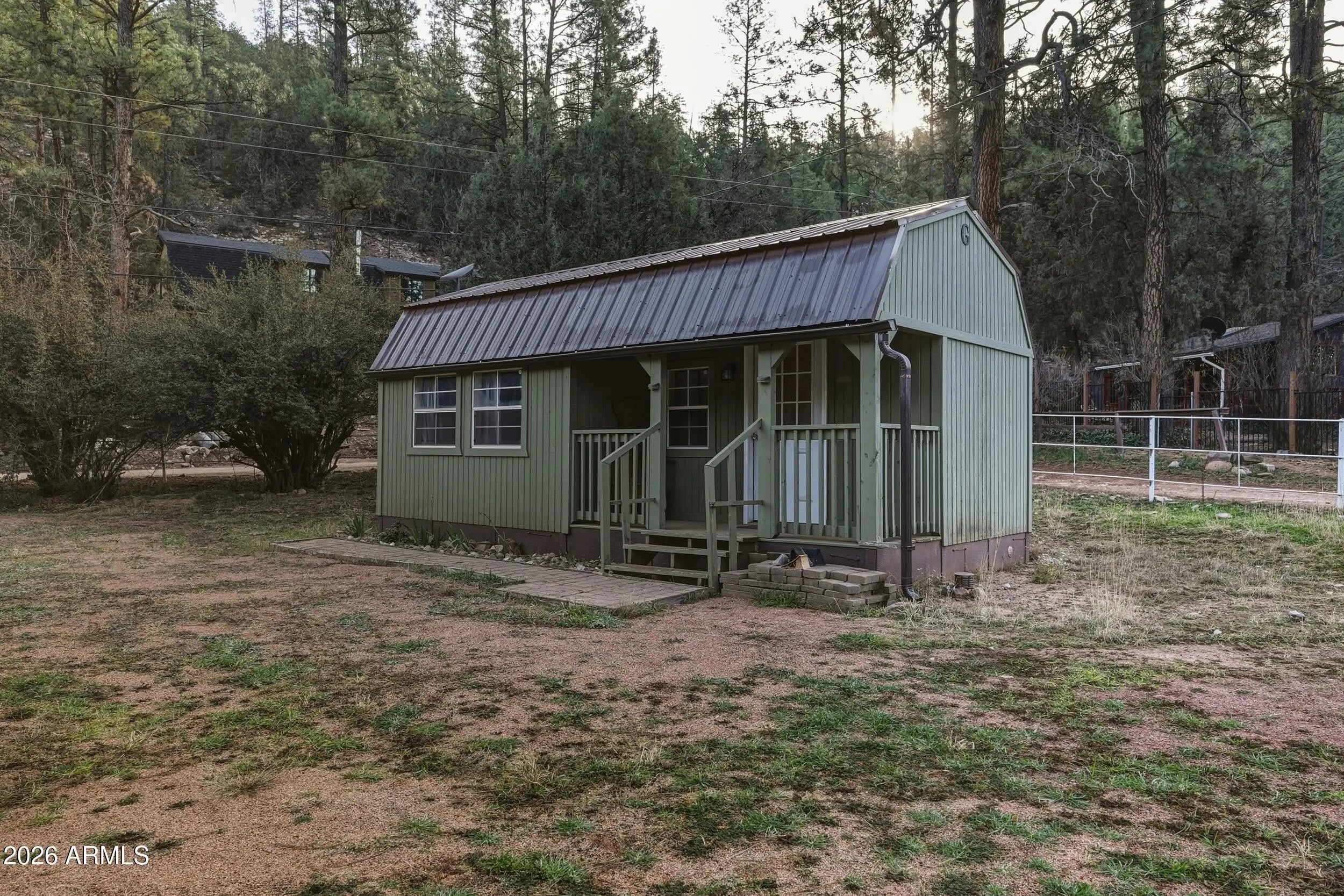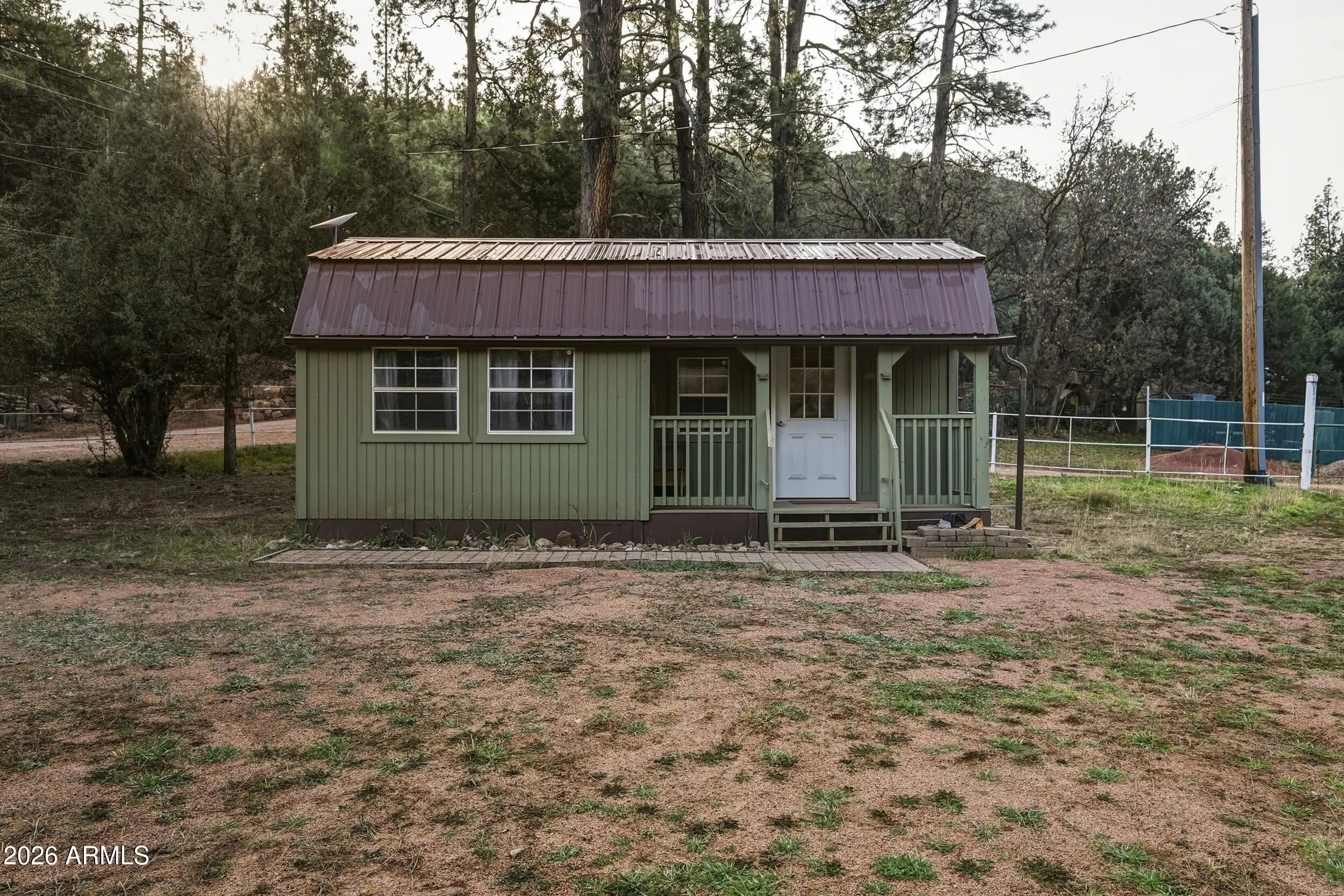 Nestled among towering pine trees in the desirable Geronimo Estates of Payson, this charming 2-bedroom, 1-bath home offers a peaceful mountain setting with room to breathe. The open floor plan creates a comfortable flow for everyday living, while the large, fully fenced lot provides space for pets, gardening, or outdoor enjoyment. A carport offers convenient covered parking, and a bonus storage shed with its own bathroom and sleeping area adds incredible flexibility for guests, hobbies, or extra storage. Durable metal roofing and the serene, forested surroundings complete this inviting mountain retreat, perfect as a full-time residence or weekend escape.