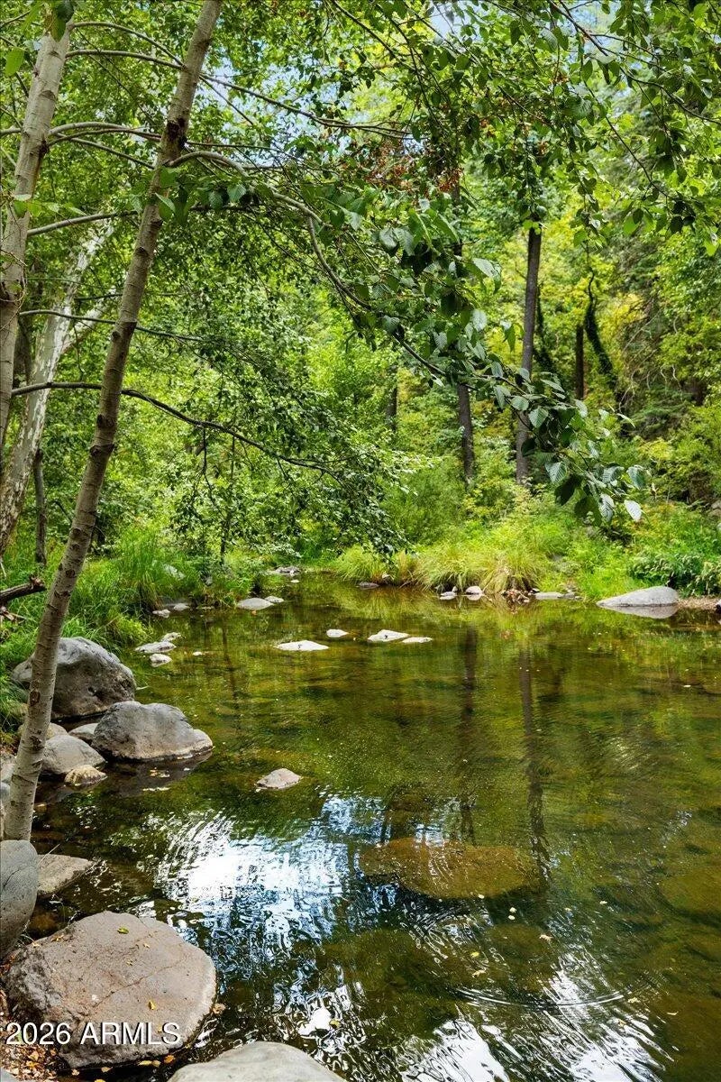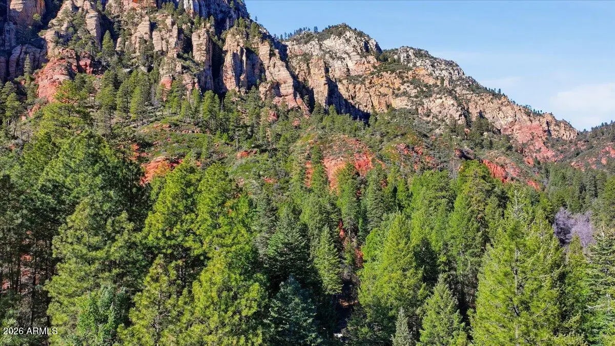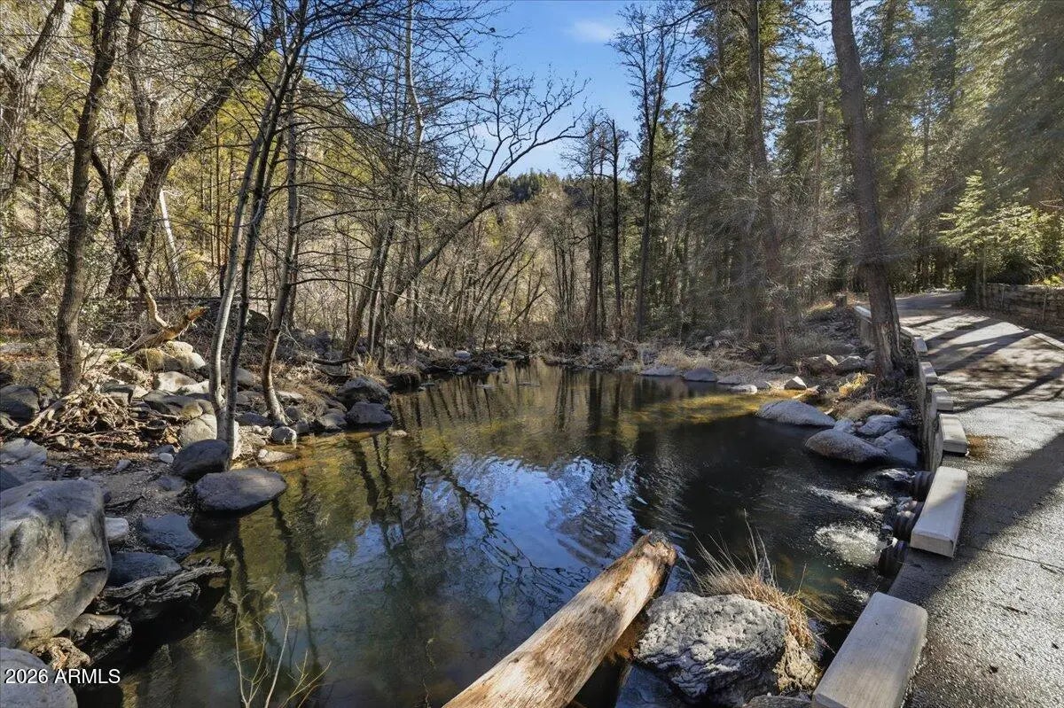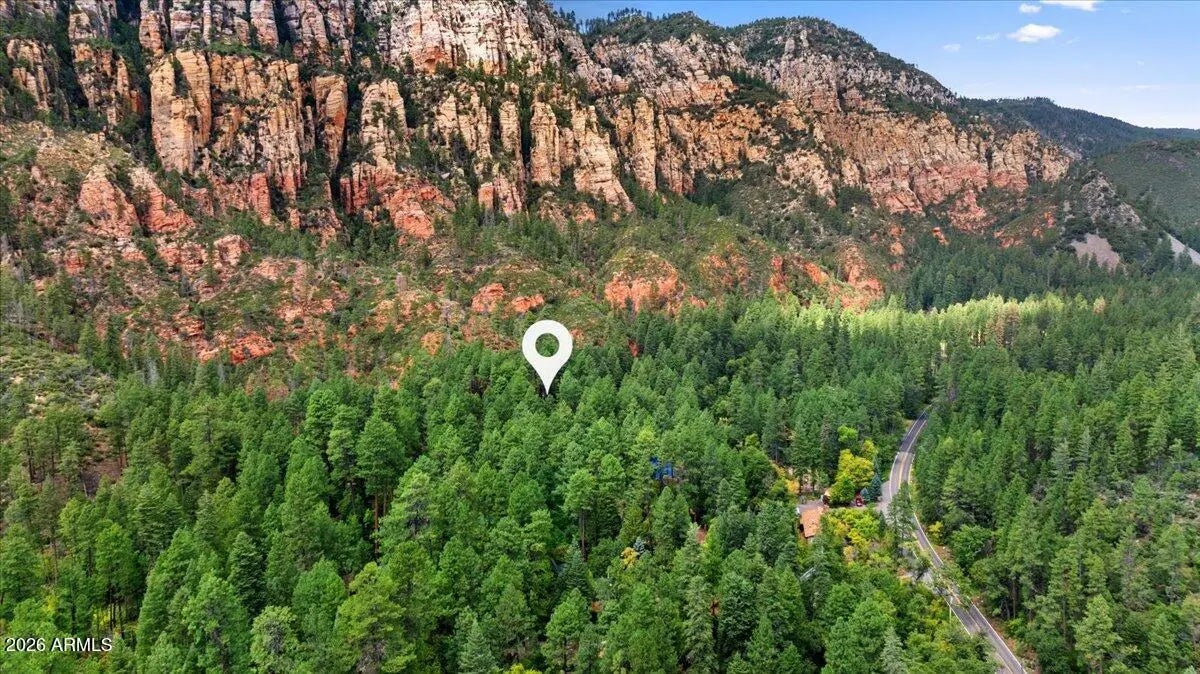 Tucked away beneath towering canon walls and mature pines, this charming cabin offers a rare opportunity to own a true retreat in the coveted, creekside, Pine Flats subdivision of Oak Creek Canyon. Set minutes from the soothing sounds of the creek, the home feels worlds away; cool, shaded, and peacefully removed from the summer heat. Surrounded by lush greenery, this cabin is a sanctuary for those seeking tranquility, privacy, and a deep connection to nature. Whether enjoying morning coffee to the sound of flowing water or relaxing in the cool canyon air after a day of hiking, this setting delivers a timeless Northern Arizona escape. Adding to the value and potential, the sale includes the vacant lot next door, offering a rare opportunity for added privacy or future expansion! A true Gem!