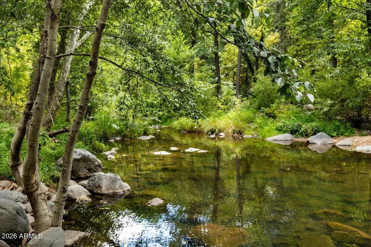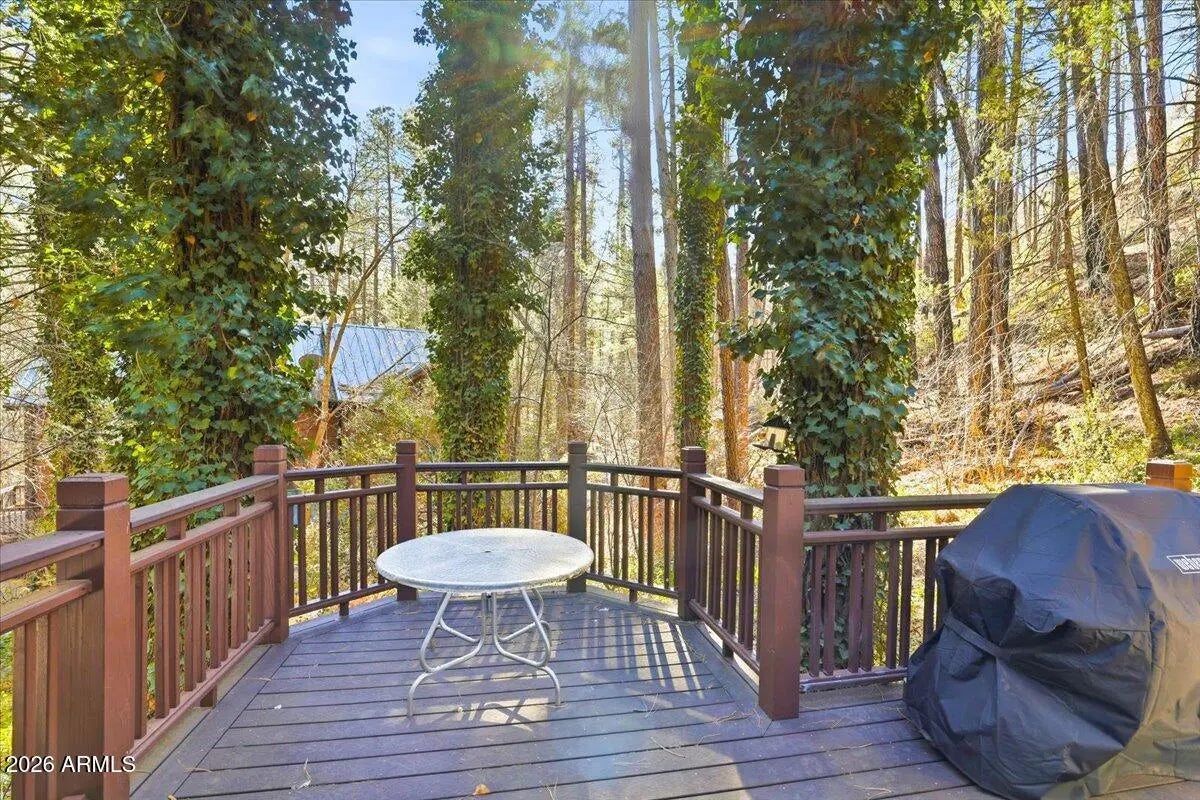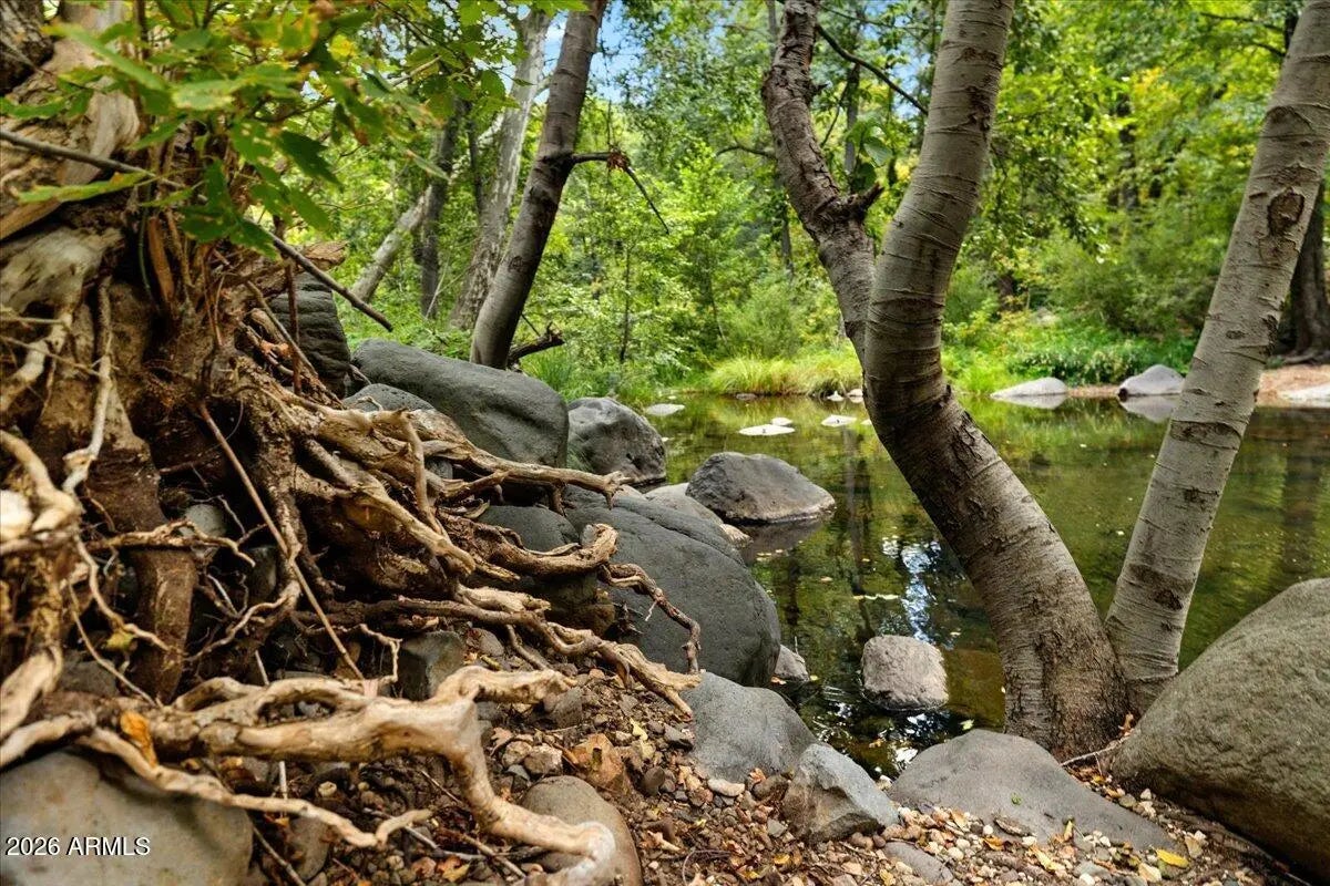Tucked away beneath towering canon walls and mature pines, this charming cabin offers a rare opportunity to own a true retreat in the coveted, creekside, Pine Flats subdivision of Oak Creek Canyon. Set minutes from the soothing sounds of the creek, the home feels worlds away; cool, shaded, and peacefully removed from the summer heat. Surrounded by lush greenery, this cabin is a sanctuary for those seeking tranquility, privacy, and a deep connection to nature. Whether enjoying morning coffee to the sound of flowing water or relaxing in the cool canyon air after a day of hiking, this setting delivers a timeless Northern Arizona escape. Adding to the value and potential, the sale includes the vacant lot next door, offering a rare opportunity for added privacy or future expansion! A true Gem!
