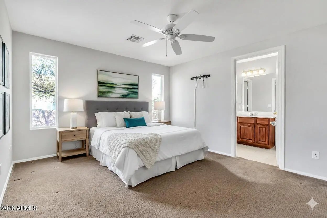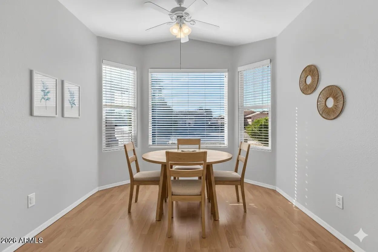 Welcome to the gated Springfield community in Chandler! This light-filled 2BR/2BA home features an open floorplan and a gourmet kitchen with upgraded cabinets and beautiful granite countertops. The spacious primary suite offers a private retreat with a stunning, remodeled master bathroom. The backyard space is low maintenance and provides ample space for enjoying beautiful weather and gorgeous sunsets. Enjoy the perfect balance of privacy and proximity to world-class amenities. Springfield's lifestyle includes a newly remodeled clubhouse, championship golf, sparkling pools, and endless social activities. This move-in-ready gem combines modern comfort with a vibrant resort atmosphere. Don't miss your chance to live in one of Chandler's premier active adult communities!