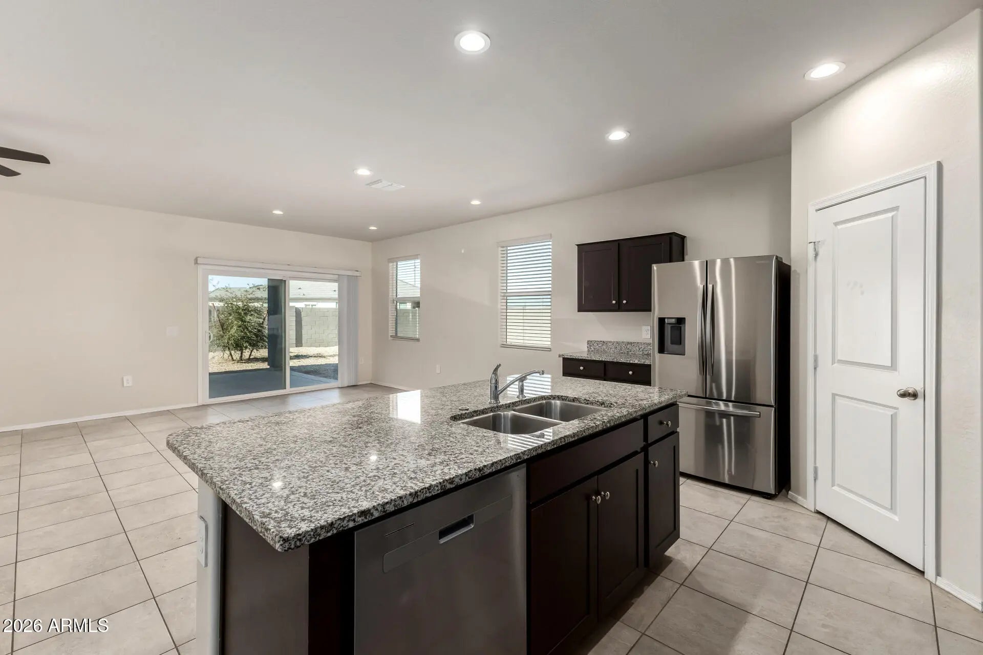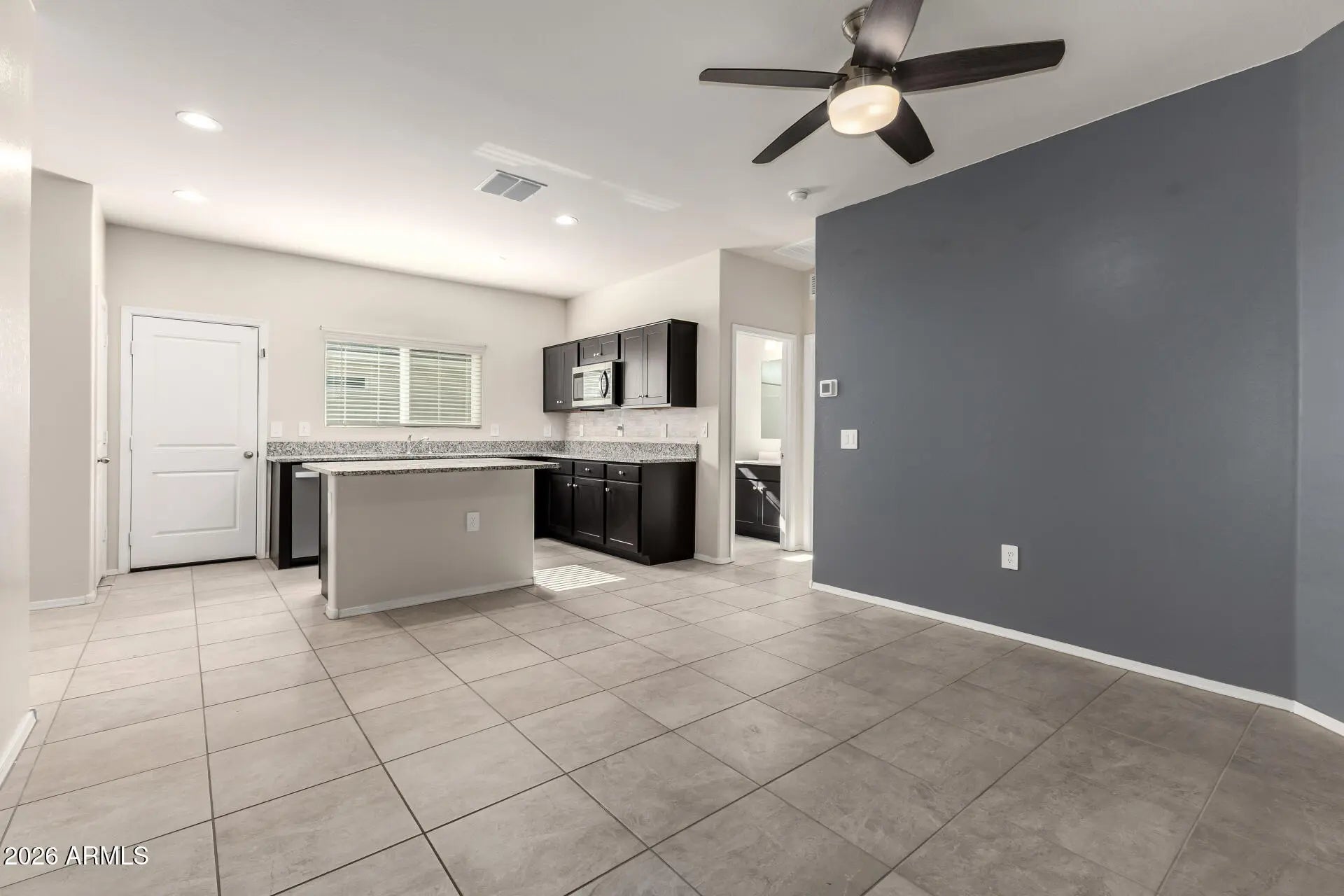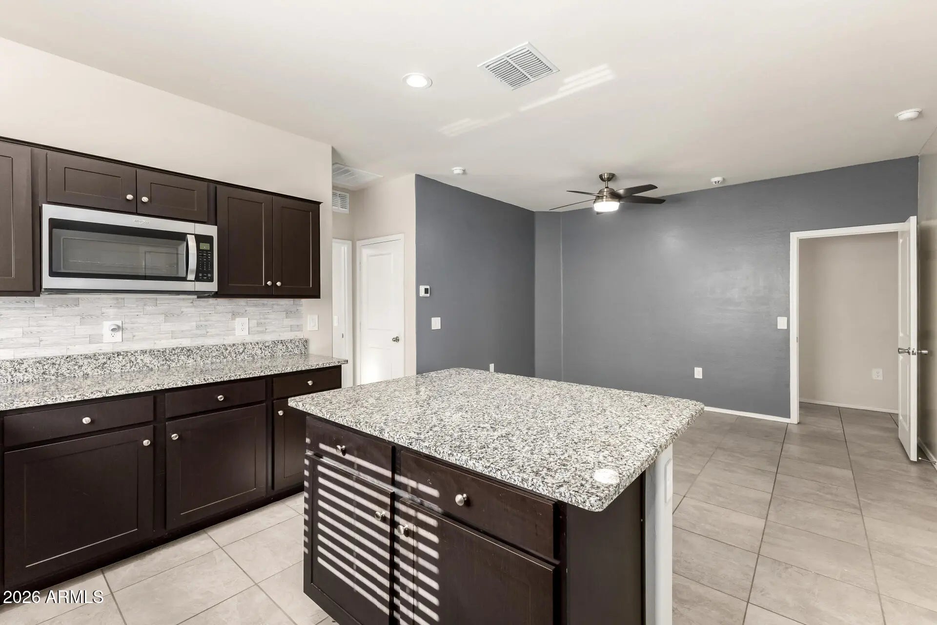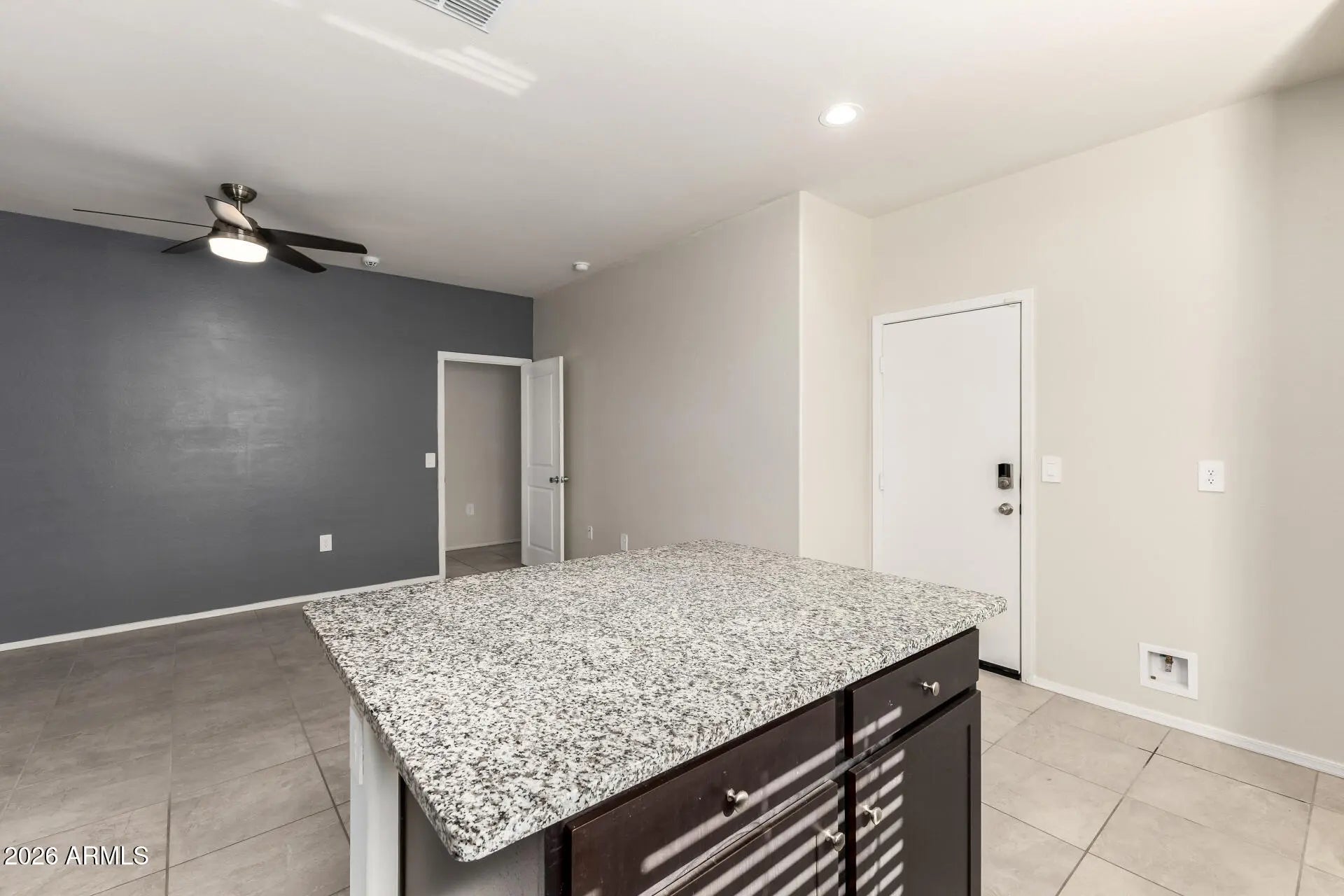Multi-Generational Living, Income Producing or Single Family Home! Unbelievable: Two Homes for the Price of One Welcome to an exceptional single-level residence in the sought-after Estrella Vista community of Buckeye—designed to offer flexibility, privacy, and endless possibilities. This thoughtfully designed 4-bedroom, 3 full bathroom home functions as two separate living spaces, making it ideal for multi-generational living, rental income, or extended or single family living. The main home features 3 bedrooms and 2 bathrooms with an open, light-filled layout, high ceilings, ceiling fans, and durable tile flooring throughout the main areas. The spacious kitchen is well-appointed with granite countertops, stainless steel appliances, ample cabinetry, pantry, and a large island with breakfast bar, perfect for everyday living and entertaining. The primary suite is generously sized and includes dual sinks, a walk-in shower, and a walk-in closet. The attached mother-in-law suite is a true second home, offering 1 bedroom and 1 bathroom, its own fully equipped kitchenette, living area, separate laundry hookups, and a private entrance. It also has access to the garage or can remain completely independent, providing ultimate flexibility and privacy. Both living spaces have separate laundry hookups, making daily life convenient for everyone. The home also includes a 2-car garage, low-maintenance landscaping, and a private backyard with a patio, perfect for relaxing or hosting gatherings. Whether you're looking for multi-generational living, a private guest suite, or an income-producing opportunity, this rare layout delivers unmatched versatility. A truly unique home you won't want to miss.