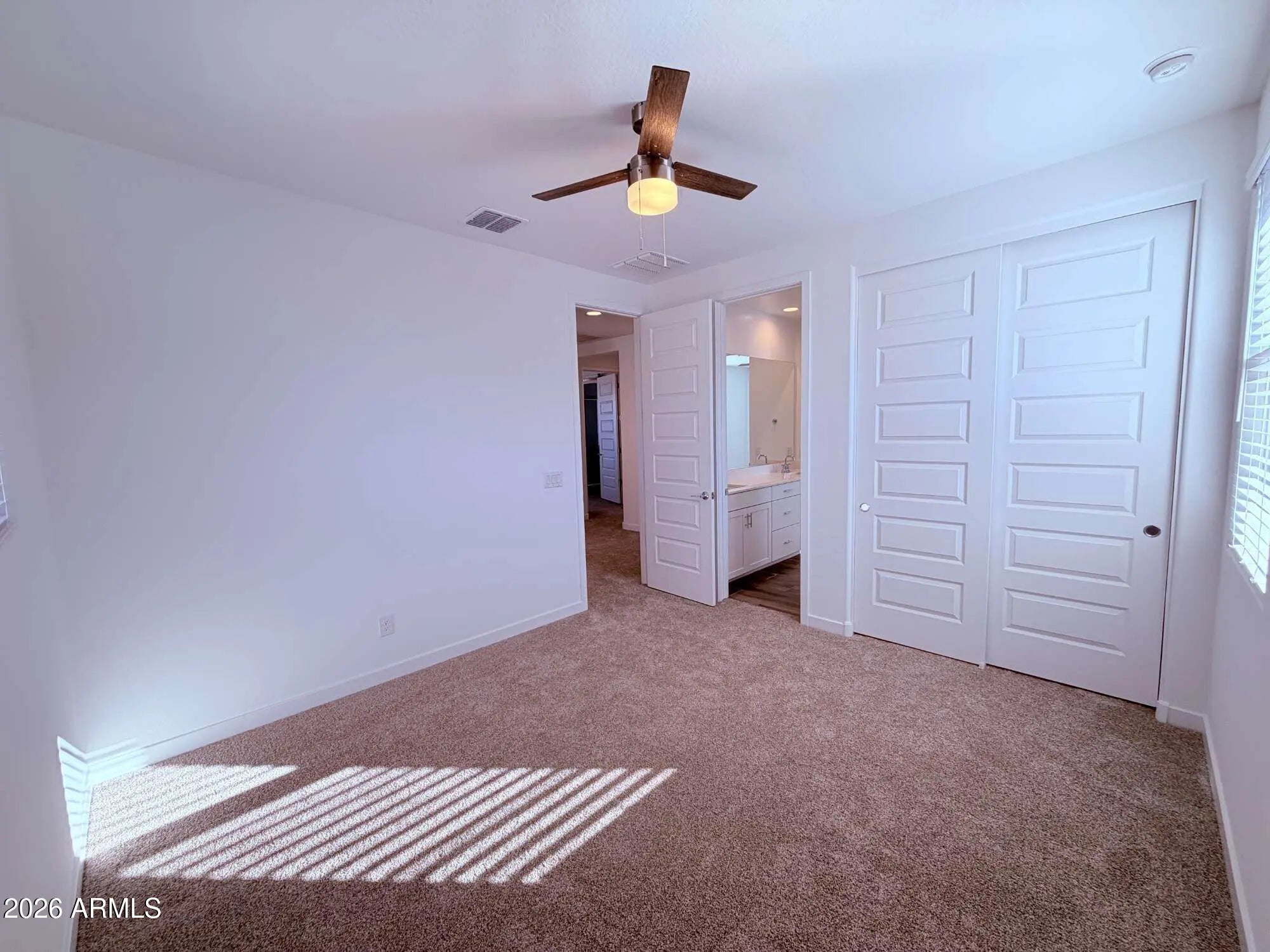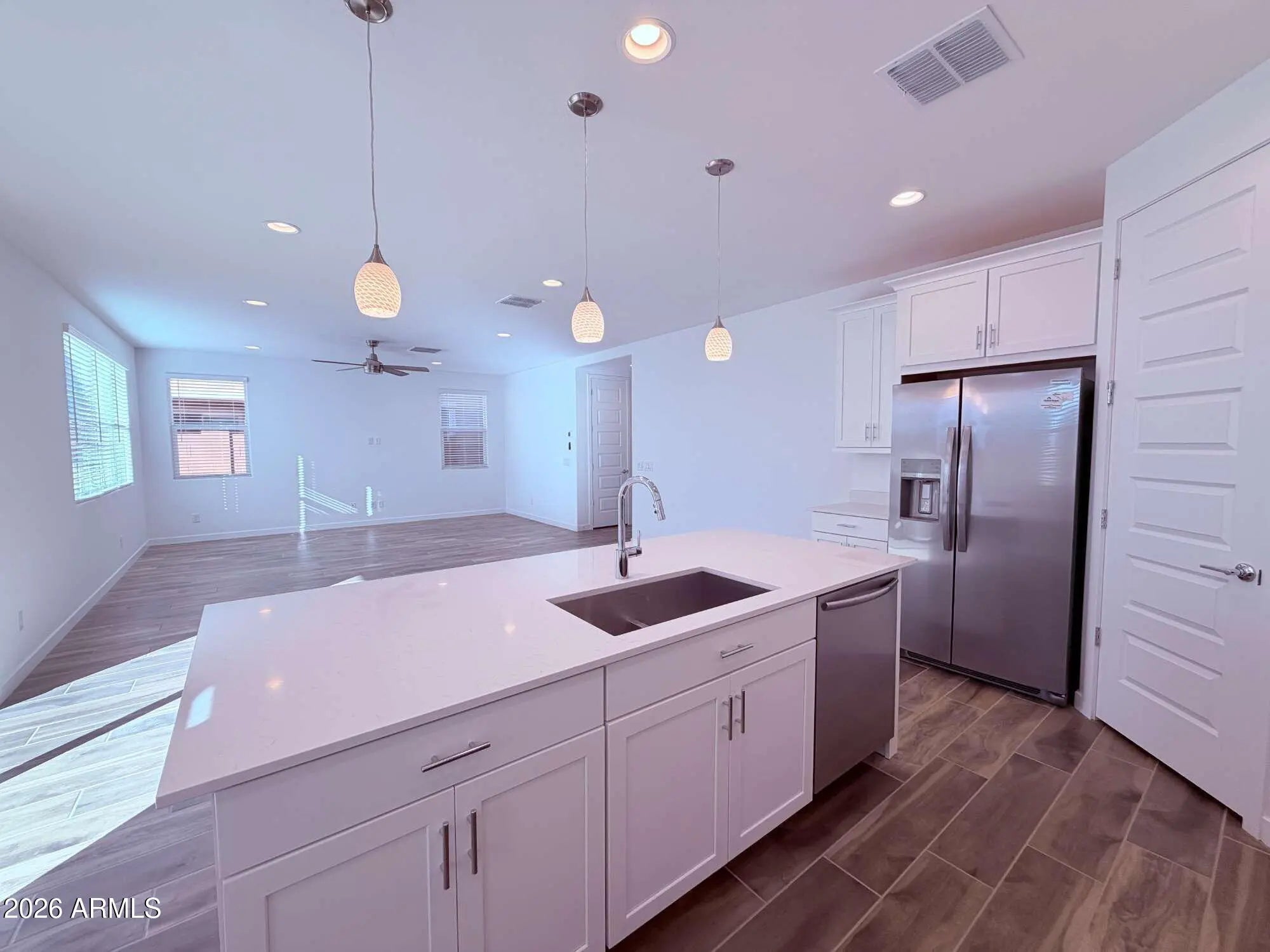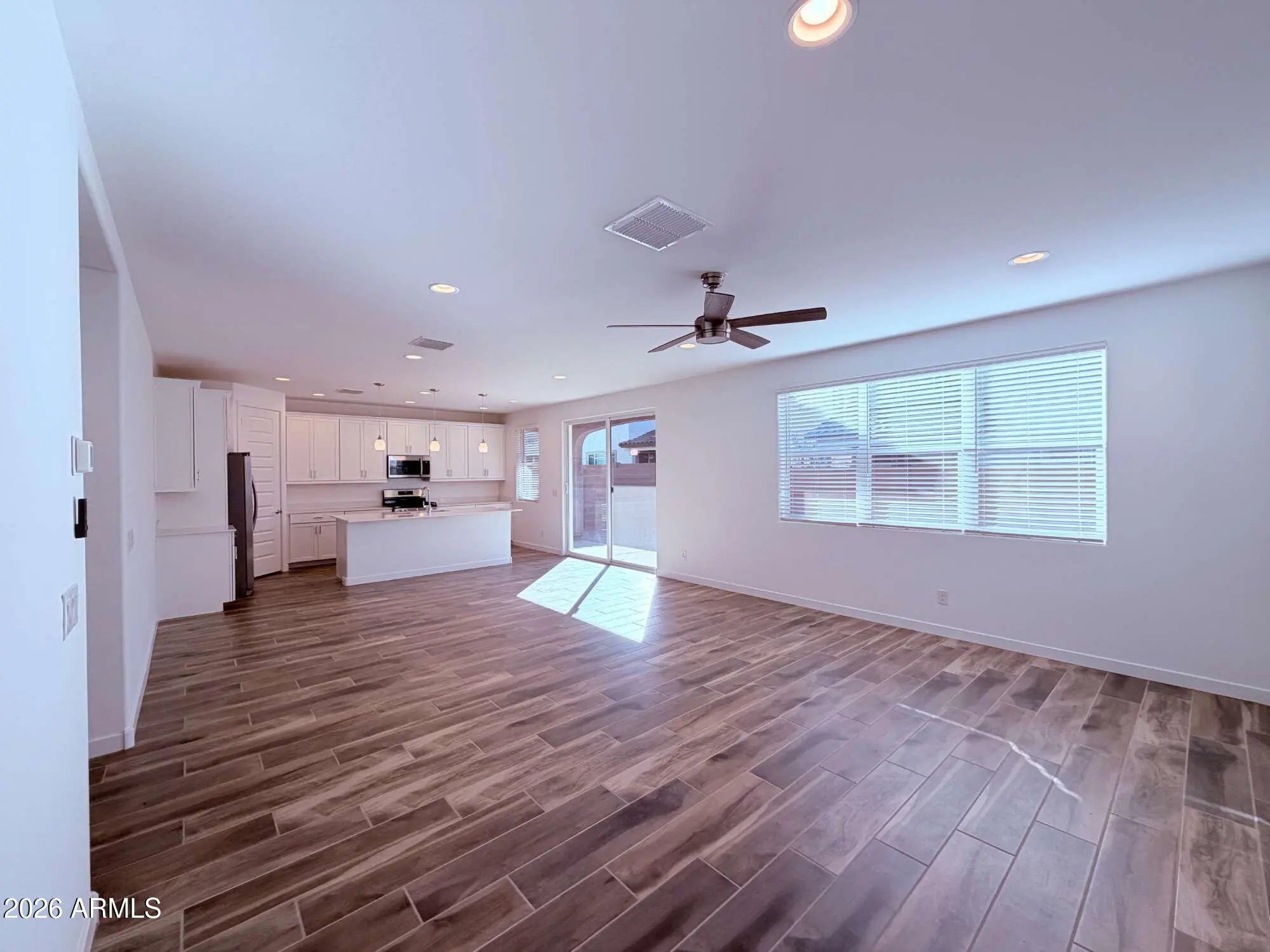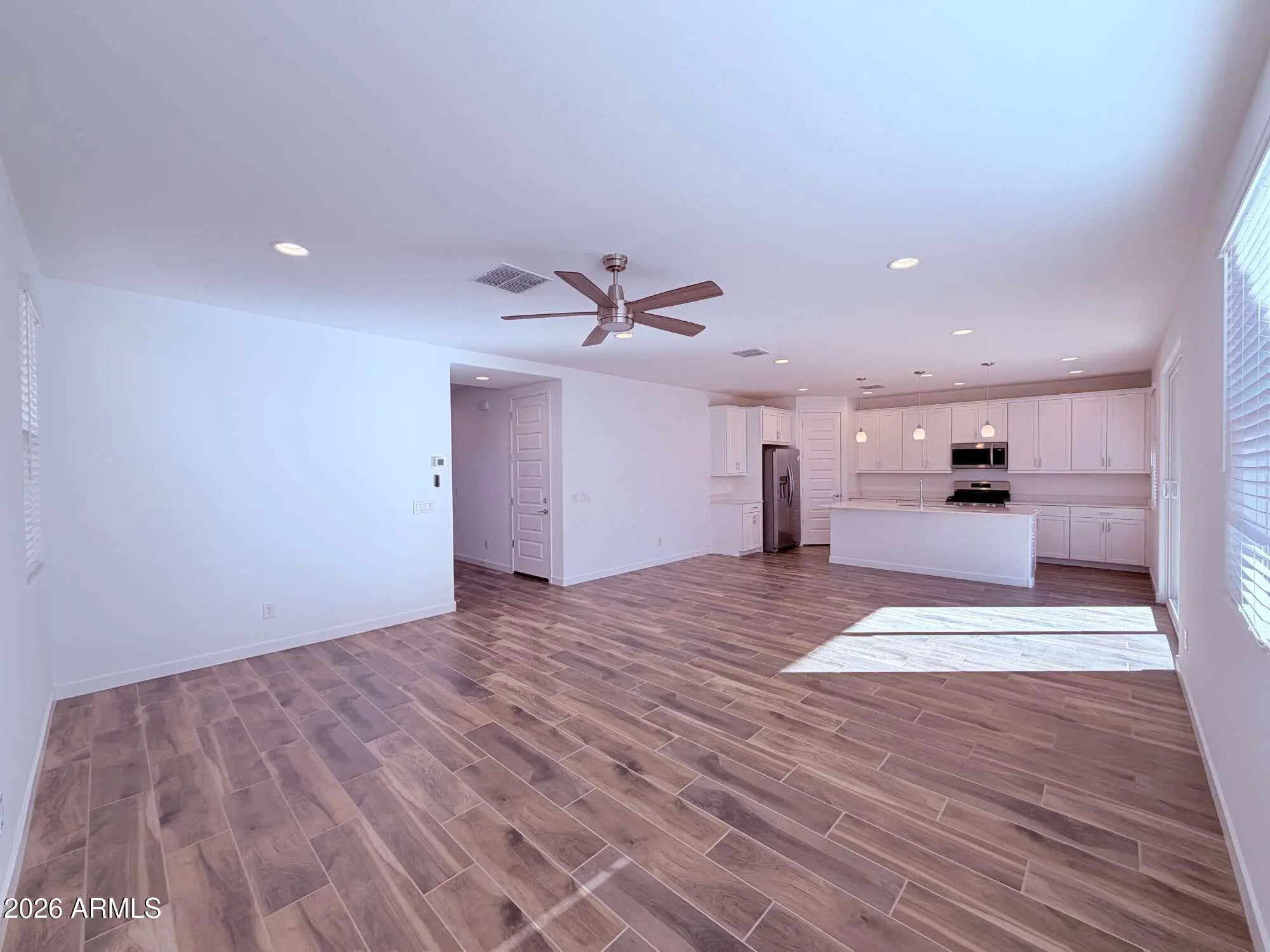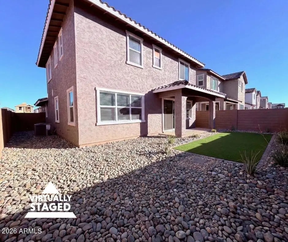 Two story single family home offering 4 bedrooms, 3 bathrooms, in Mesa. The open kitchen features quartz countertops, modern maple linen cabinetry, and a full appliance package including refrigerator, washer, and dryer. Main living areas flow naturally for daily living and entertaining. Bedrooms provide flexibility for guests, work, or additional living needs. There will be a small area of artificial turf and rock landscaping in the backyard, currently being completed to enhance the private patio space. Community amenities include a pool, barbecue and picnic areas, basketball court, pickleball courts, and playgrounds. Convenient Mesa location near shopping, dining, parks, and freeway access.
