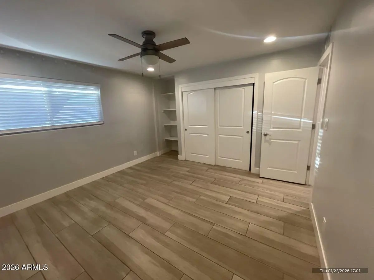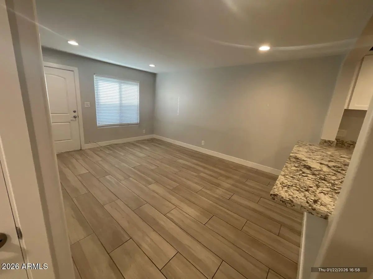Unit 10 is one half of a single-family home converted into two equal-size units. This two-bedroom, one-bath unit offers a clean, modern feel with laminate flooring throughout and neutral paint. The updated kitchen features white shaker cabinets, granite countertops, and stainless steel appliances. Additional features include recessed lighting, large baseboards, ceiling fans, and generous closet space in both bedrooms. The bathroom complements the kitchen design and includes a bathtub. The unit offers both west and east entrances, a large private laundry room, and a covered patio with outdoor lighting. Includes shared one-car garage parking. Located in the desirable Arcadia Lite neighborhood, close to top Phoenix restaurants, with easy freeway access and minutes from downtown Phoenix. All Blue Sage Realty residents are enrolled in the Resident Benefits Package (RBP) for $68.00/month which includes liability insurance, credit building to help boost the resident's credit score with timely rent payments, up to $1M Identity Theft Protection, HVAC air filter delivery (for applicable properties), move-in concierge service making utility connection and home service setup a breeze during your move-in, our best-in-class resident rewards program, on-demand pest control, and much more! More details upon application.