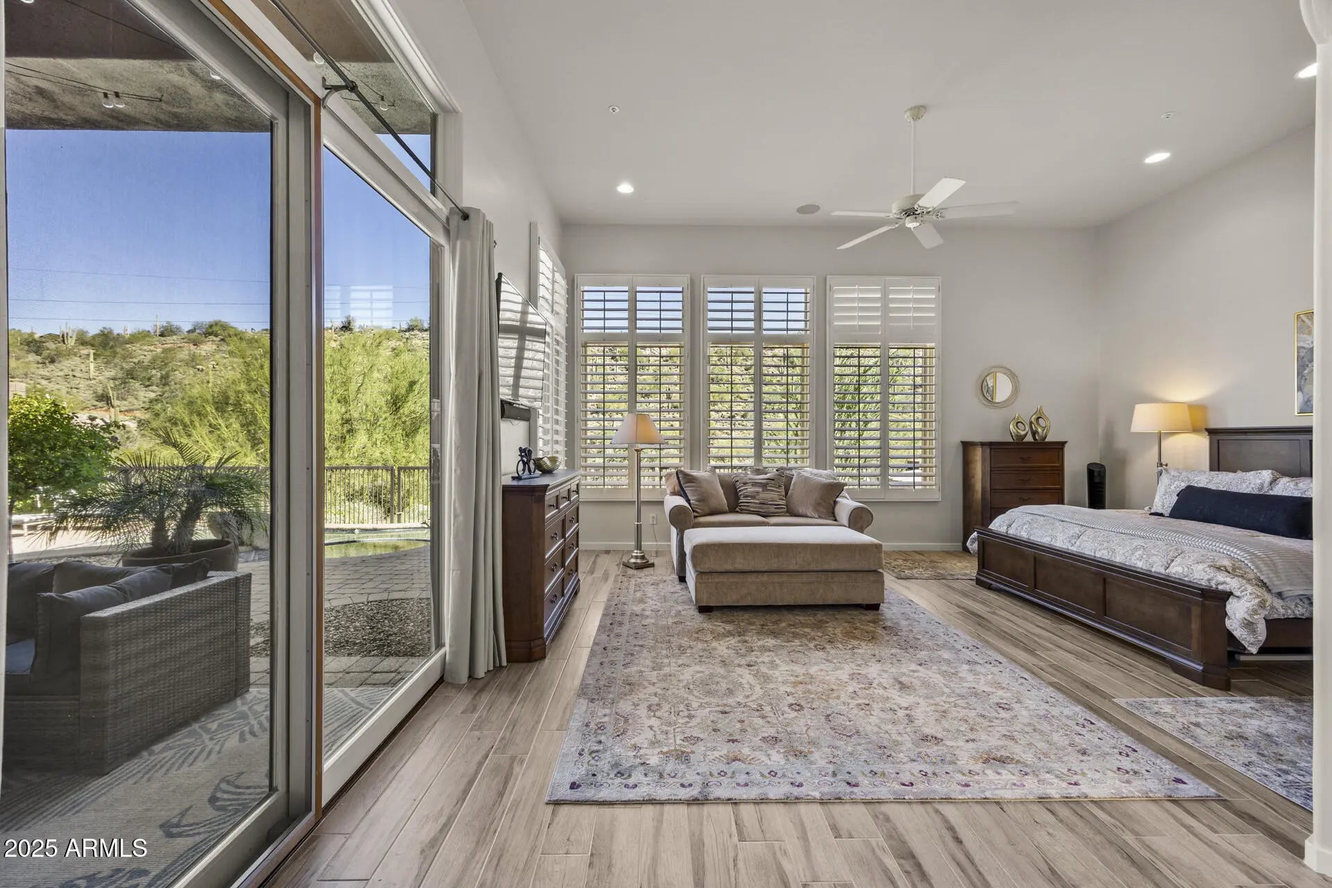 Updated Hidden Hills home is fully furnished -yearly for $5,750 per month just bring your toothbrush. In a gated community, this single level 3 bedroom, 3 bath, 2 car garage has stunning mountain views. The front courtyard has a double gated entry to the private brick patio, great for outdoor entertaining. Great room features high ceilings, plantation shutters, granite breakfast bar, wine, gourmet kitchen with new stove, microwave and refrigerator by the breakfast nook. Primary has fab mountain views, walk in shower, soaking tub & generous closet. The covered patio adjoins the spa & pool (heated) and built in BBQ. Close to hiking trails (Sunrise Peak Trailhead), Mayo Clinic, top golf courses, dining and shopping. 2 car garage.