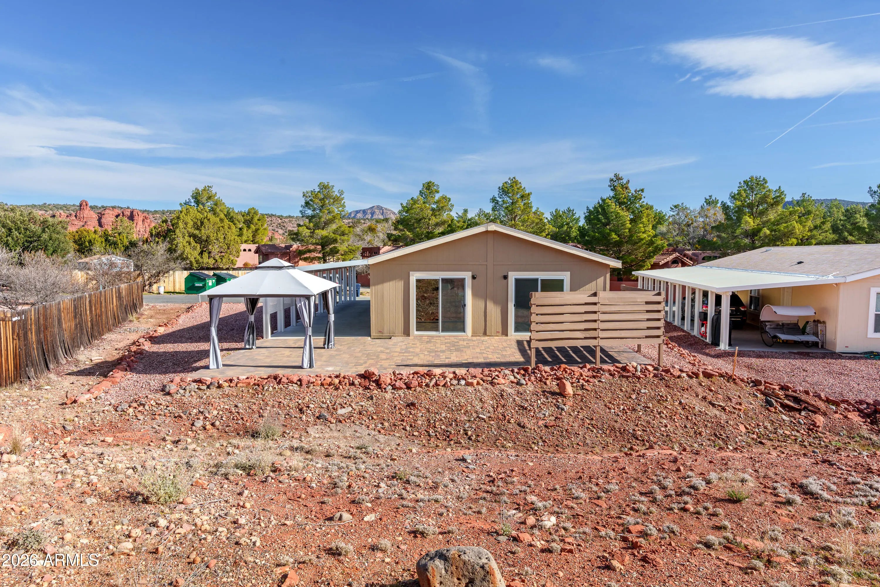This beautiful home was built in 2024 & the detailed upgrades make it feel like it's brand new!!! This home is ideally positioned just minutes from Sedona's iconic red rock scenery, world-class hiking trails, dining, shopping, medical services, and cultural attractions making it a comfortable and practical full-time residence for those who want to live close to everything Sedona has to offer, without the congestion of traffic or premium cost of in-town neighborhoods. Sedona Shadows is a well-established 55+ community known for its close proximity to West Sedona. Residents enjoy access to resort-style amenities including a clubhouse, swimming pool, heated spa, fitness center, BBQ grills, billiards room, organized social activities, and more! While Sedona Shadows offers a wide variety of community-based activities and amenities, this home is thoughtfully designed to provide ample privacy. The open-concept living, dining, and kitchen areas create an inviting and spacious setting ideal for entertaining. A seamless flow connects the main living space to the outdoors through sliding glass doors, opening to a newly paved patio with extra shading and privacy. Perfect for effortless indoor-outdoor gatherings. Tranquil views of natural Arizona landscaping creates extra privacy and a peaceful atmosphere with minimal visibility of neighboring homes. This thoughtfully designed layout blends comfort, functionality, and scenic surroundings, making it an exceptional space for hosting guests or enjoying relaxed everyday living. Smart living, scenic beauty, and a community designed for your next chapter.