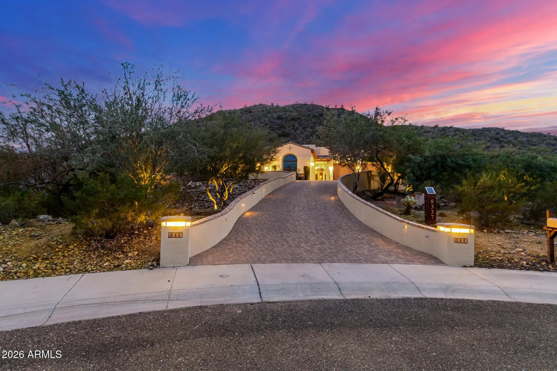 Ideally located near the rapidly expanding North Phoenix technology corridor (TSMC). This exceptional hillside estate is located within the gated section of Westwing Mountain Estates. Set on an elevated hillside lot, the property offers exceptional privacy and expansive mountain and desert views—an ideal setting for executives and relocation buyers seeking proximity to major employment hubs while enjoying a refined desert lifestyle. Designed to capture Arizona's famously dramatic sky views, the resort-style outdoor living areas are a true highlight of the home. The elevated setting provides a stunning backdrop for both sunrise light and vibrant evening skies, while the heated infinity-edge pool and spa, travertine decking, rooftop sun deck, and generous entertaining spaces create an unforgettable environment for both everyday living and special gatherings. The rear yard offers a distinctly different experience, backing directly to the mountain and adjacent state land. This quiet, private retreat is surrounded by natural desert landscape and provides a peaceful contrast to the expansive view-oriented entertaining areas. The entire property is fully fenced and professionally critter-proofed, offering peace of mind while preserving the integrity of the surrounding environment. Inside, refined finishes and thoughtful design define the living spaces. The gourmet kitchen features Wolf gas appliances, a Sub-Zero refrigerator, designer cabinetry, and generous prep space. The kitchen is open to the great room, where expansive glass doors invite natural light and strengthen the connection between indoor and outdoor living. A dedicated office space provides an inspiring work-from-home environment, perfectly positioned to take advantage of the home's breathtaking views ideal for executives, creatives, or remote professionals. The split floor plan includes four spacious bedrooms, including a luxurious primary suite designed as a true retreat. The primary suite features a private sitting room, ideal for a secondary office, fitness area, or relaxation space, with plumbing in place for a future sink or ice maker, offering exceptional flexibility. The primary bedroom is equipped with blackout shades for optimal comfort and rest. Two walk-in closets complement the suite, with the secondary closet plumbed for a future washer and dryer, adding convenience and versatility rarely found in homes of this caliber. Outdoor functionality is further enhanced by a convenient poolside bathroom, thoughtfully designed for both entertaining and everyday use. The home is fully integrated with smart home technology, allowing lighting and the recently updated sound system to be controlled by voice command through Amazon Alexa or via smartphone. An owned solar system enhances energy efficiency and long-term value. Offering a rare combination of views, privacy, thoughtful design, and modern functionality, this WestWing Mountain residence delivers an elevated desert lifestyle within an exclusive gated mountain enclavea setting defined by space, discretion, and enduring quality.