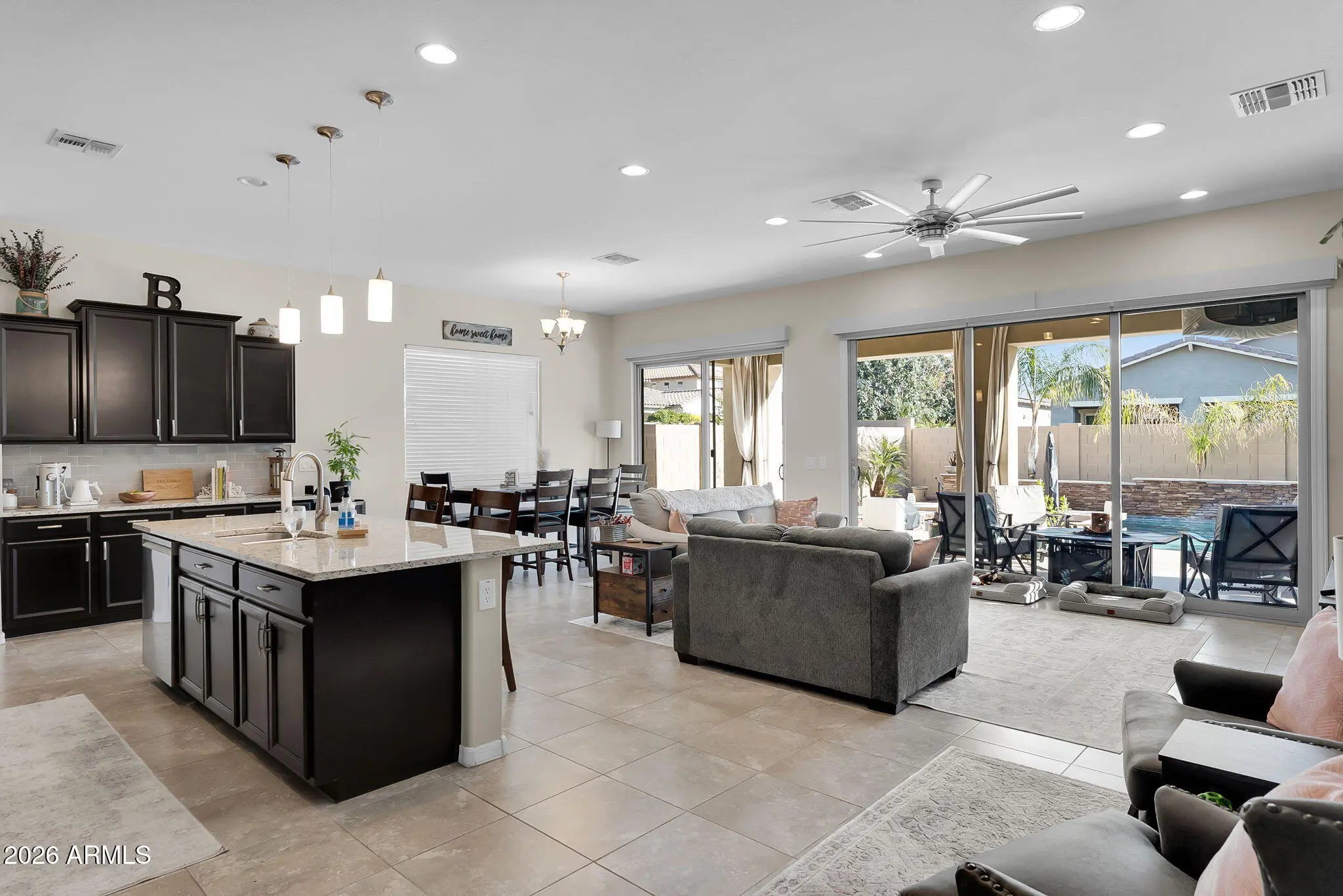 $100K + EXTREME BACKYARD - This 4 bed 3 bath great room concept has it all, & when you open up the walls of glass you expand you living and entertaining area by another 1,500 sq ft. This is a must see in person to appreciate everything it has to offer. Entertain at the swim up bar as you BBQ in the center of all the action. Inside enjoy an open concept great room with tons of natural light, accented walls & elegant fixtures. The kitchen offers staggered espresso cabinets, granite slab countertops & stainless steel appliances, all complimented with white subway tile backsplash. Enter the owner's suite with blond oak plank flooring, walk in tiled super shower, and a large passthrough closet that leads directly to the laundry room with a separate entrance. This is a must see.