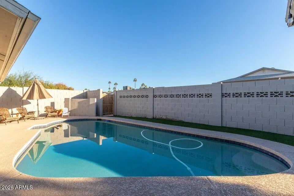 Charming 4bed/2bath home with plenty of upgrades. Tempe home with no HOA. Great curb appeal leads you into the light and bright interior featuring wood look flooring, neutral tone paint, fireplace in living and an open concept floor plan. Gorgeous kitchen boasts granite counter tops, stainless steel appliances, white shaker style cabinetry and a center island with breakfast bar. Lovely primary bedroom with en suite. Step out onto your covered back patio and enjoy your own private oasis. Complete with sparkling pool and grassy area. Perfect for entertaining.