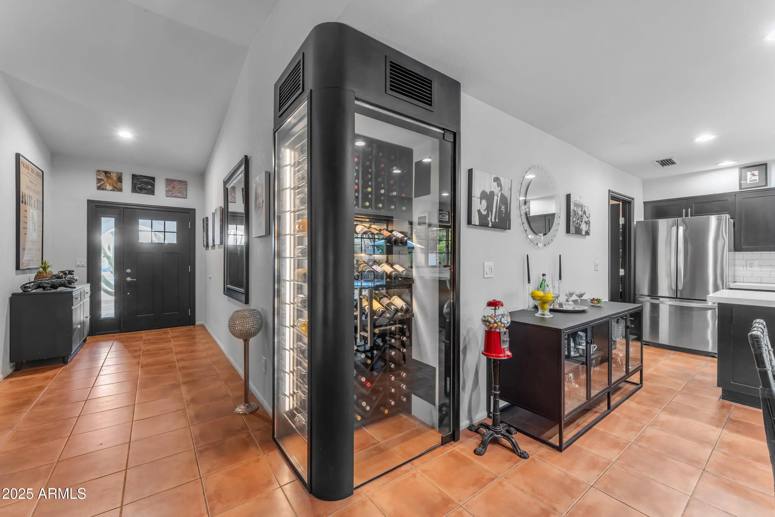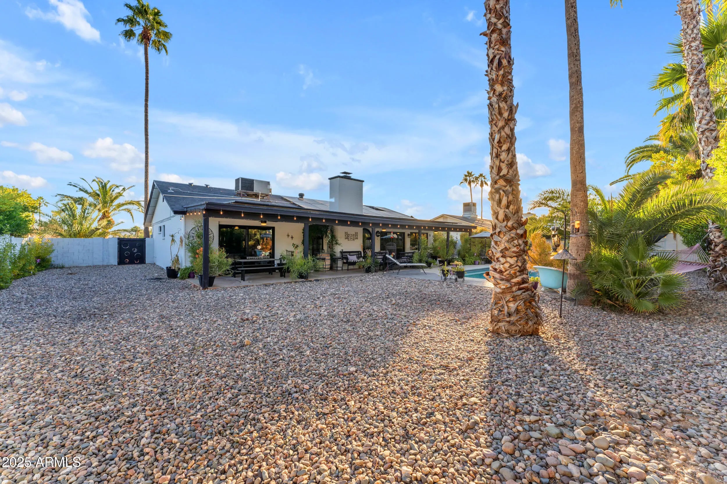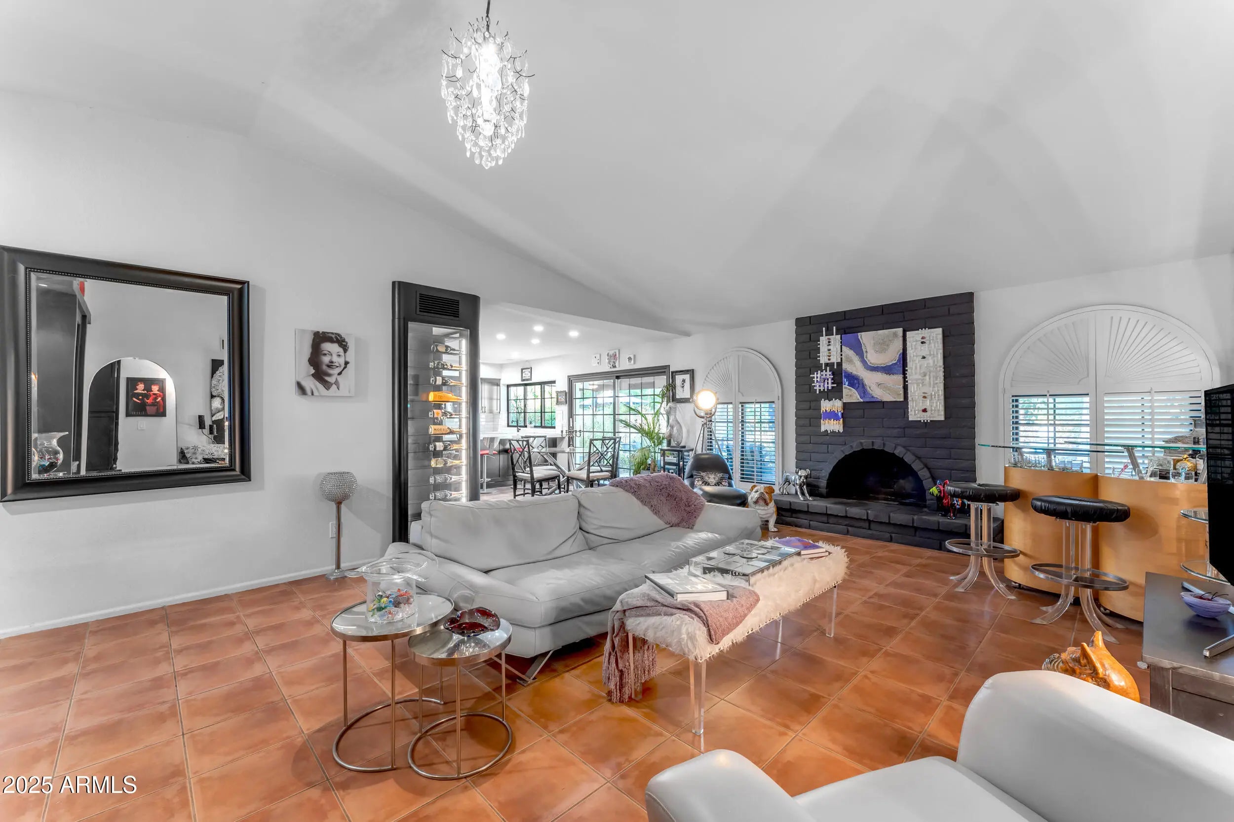 Welcome to your dream home in the heart of Scottsdale! This stunning single-family residence is a perfect blend of classic charm and modern convenience. Nestled in a quiet community with no HOA, this home boasts 3 spacious bedrooms and 2 beautifully updated bathrooms, offering ample space for both relaxation and entertainment. Step inside to discover a welcoming atmosphere with plenty of natural light, vaulted ceilings, and no interior steps. The modern interior doors and light fixtures add a contemporary touch. The updated kitchen, remodeled in 2017, is a culinary enthusiast's delight, featuring dark cabinets, a large peninsula with quartz countertops, stainless appliances, an apron sink, and a classic white subway tile backsplash. A standout feature is the temperature and humidity controlled wine closet, perfect for storing an extensive wine collection. The primary bathroom is fully remodeled with double sinks and an oversized walk-in shower, while the guest bathroom features a claw foot tub and pedestal sink, both completed in 2020. Enjoy cozy evenings by the fireplace or host gatherings in the expansive great room. The exterior is equally impressive, featuring modern exterior doors and gates, a private entry, and an extended covered patio. The side yard with gate, river rock and decorative pavers throughout create a serene oasis. The diving pool is perfect for Arizona summers, and the mature landscaping with flowering plants adds to the home's charm. Under the back patio, there's a bar with room for stools, ideal for entertaining. This home is not only beautiful but also energy-efficient, equipped with solar panels to help reduce your utility costs. The double pane Anderson windows and a new roof, redone in 2020, further enhance the home's efficiency and comfort. Plantation shutters and tile flooring throughout complete the elegant look. Located in a popular Scottsdale location, this home is conveniently close to a variety of dining options and essential amenities, making it the perfect spot for those who love both comfort and convenience. Just 2 miles to Kierland Commons and Scottsdale Quarter, 3.5 miles to the 101, minutes from hiking and biking at the Phoenix Mountains Preserve and the redeveloped Paradise Valley mall.