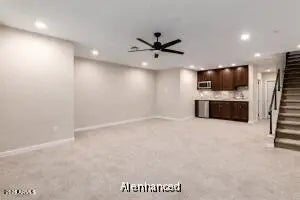 Welcome to this beautifully updated, meticulously maintained basement home in the heart of Litchfield Park near the community park, greenbelt & bike paths. Manicured landscaping & 3-car garage create stunning curb appeal. Inside features designer finishes, plantation shutters & abundant natural light. Flexible floor plan includes formal dining, office, bonus room & expansive basement -- ideal for multi-generational living or media room. Gourmet kitchen offers quartz counters, stainless steel appliances & statement island. Owner's suite with spa-like bath & patio access. Private backyard with covered patio & sparkling pool. New windows 2024. Minutes to Goodyear SPRING TRAINING Ballpark.