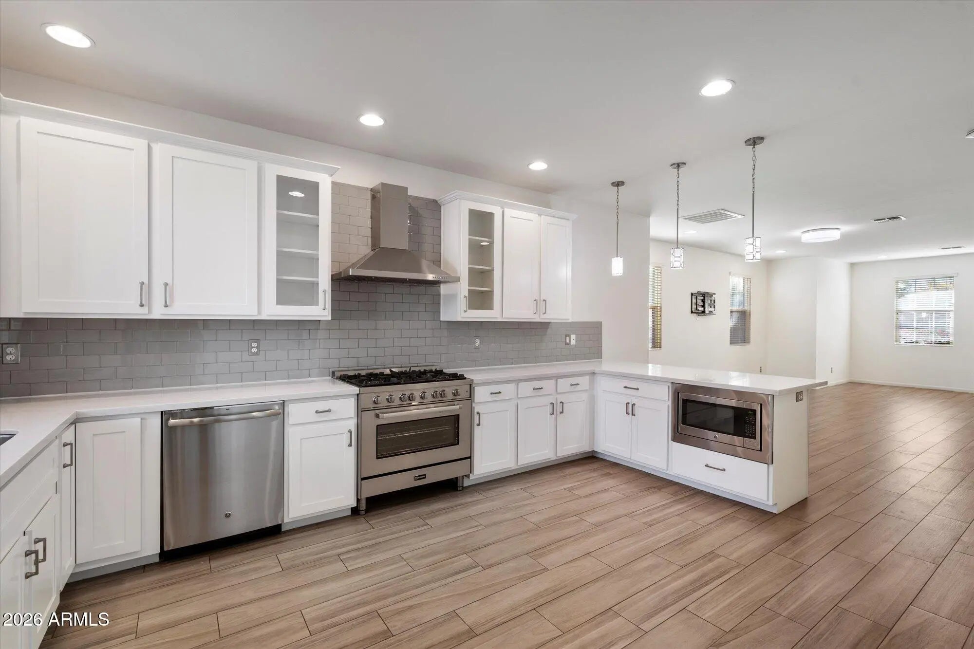 Built in 2017, this 4-bedroom, 2 ½ bathroom home in Rancho Arcadia features a rooftop deck with 360-degree views, a Primary Bedroom balcony, and a sparkling heated pool. The home features wood-look porcelain tile, 9-foot ceilings on both floors, and quartz countertops. Enjoy the primary bedroom's oversized jacuzzi tub, walk-in shower, custom vanity, and walk-in close. Appreciate family time in the large eat-in kitchen with breakfast bar, 36-inch Verona gas oven, and built-in microwave. Entertain guests in your separate dining room with a custom wet bar featuring a sink with a glass rinser, Summit 68 bottle wine cooler with dual temperature zones, and Summit beverage fridge. No HOA, this lower Arcadia home is within walking or biking distance to all the Arcadia hotspots!