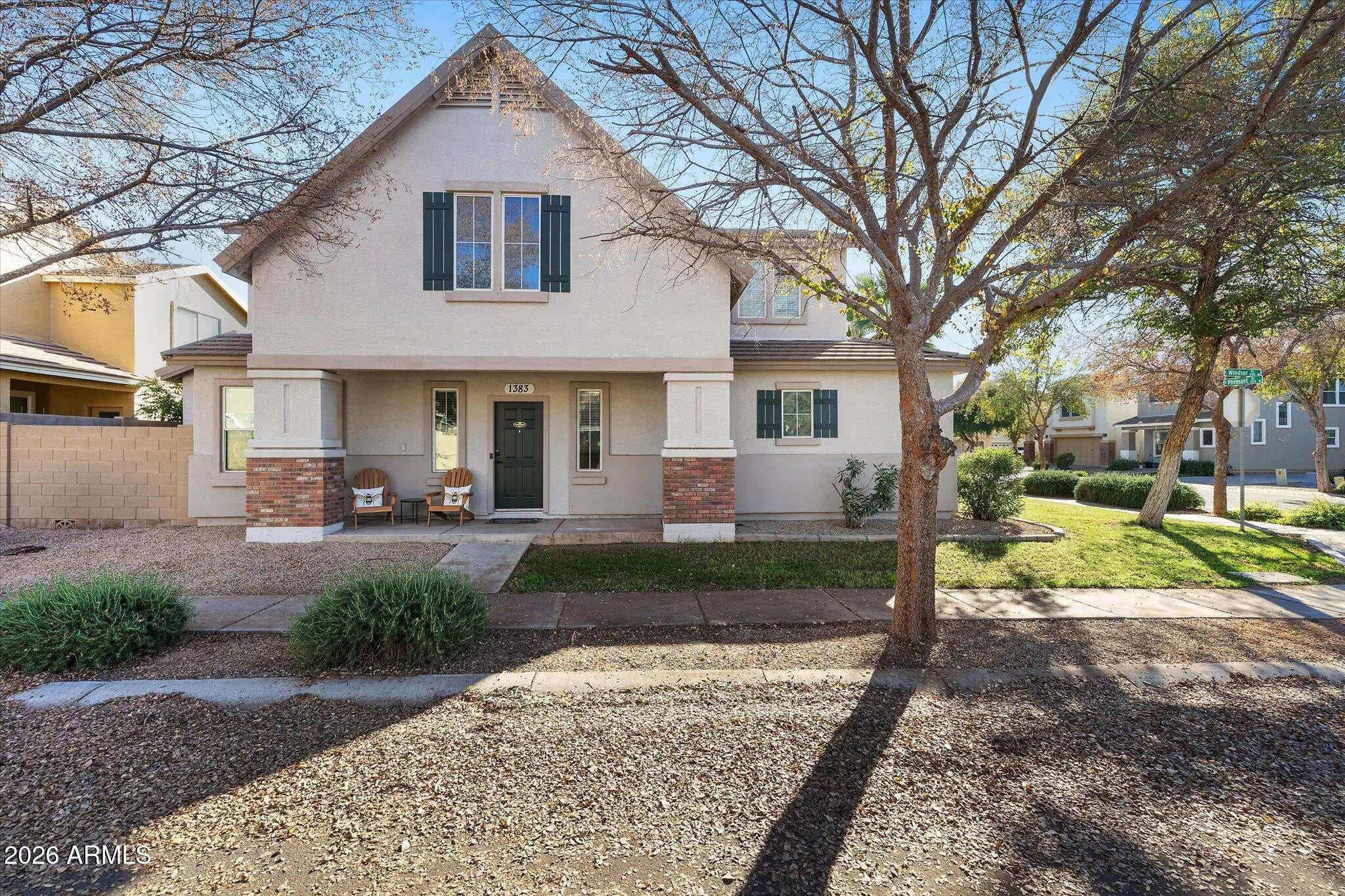 Gilbert Home on Corner Lot, N/S facing 3- bedroom with 2.5 bathrooms. Boasting updated Kitchen open to family room, formal living Room., All bedrooms have spacious walk in Closets, Back yard and side have new pavers and turf. 3 Family playgrounds just few steps from home and community pool