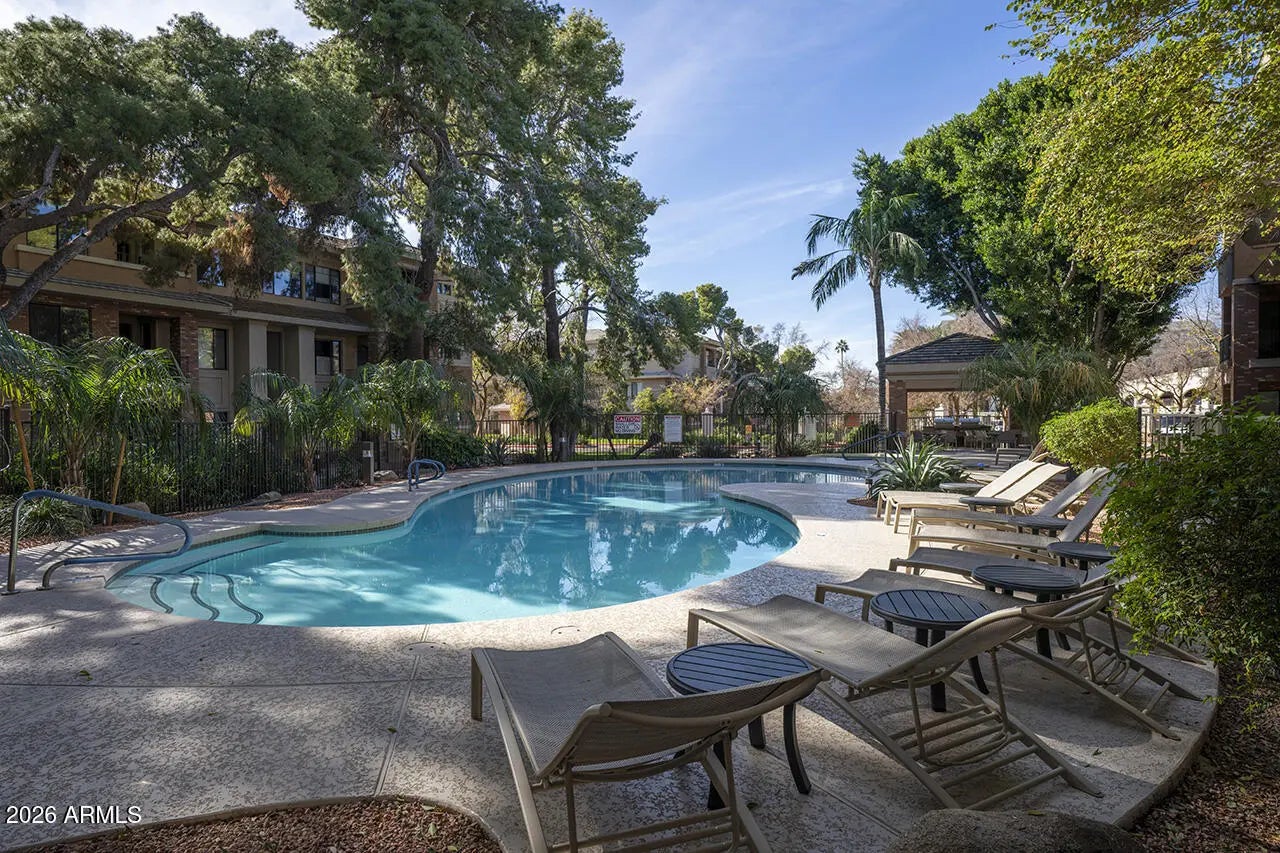 WONDERFUL, FULLY-FURNISHED 2 BED, 2 BATH UNIT IN THE EXCLUSIVE GATED COMMUNITY OF ARCADIA GROVE. YOU'RE NEAR EVERYTHING; AIRPORT, SHOPPING, SPORTING EVENTS, RESTAURANTS, HIKING AND GOLF WHILE COMING HOME TO A SERENE, BEAUTIFUL COMMUNITY WITH MANY AMENITIES. OPEN CONCEPT WITH PLENTY OF NATURAL LIGHT, TWO GOOD-SIZED BEDROOMS, THE PRIMARY WITH AN EN-SUITE BATH AND DUAL SINKS. GREAT PRIVATE PATIO FOR REALXING. COMMUNITY HAS 24-HOUR FITNESS CENTER, COMMUNITY ROOM, HEATED POOL/SPA AND OUTDOOR BBQ'S. COME SEE TODAY!