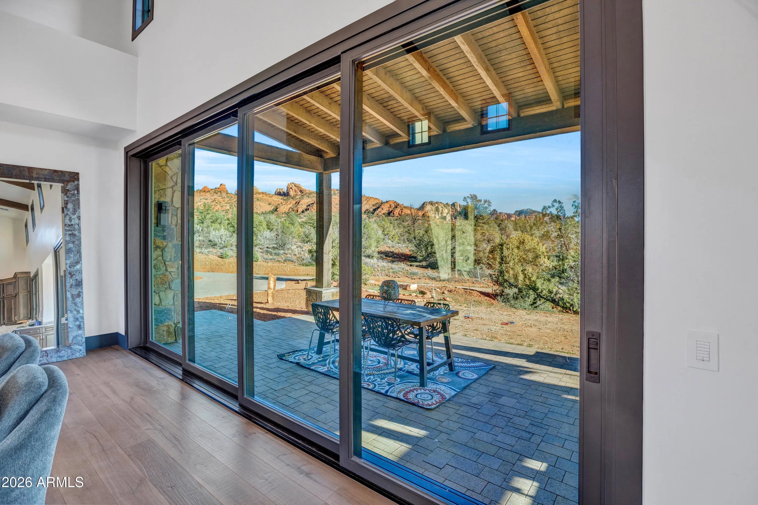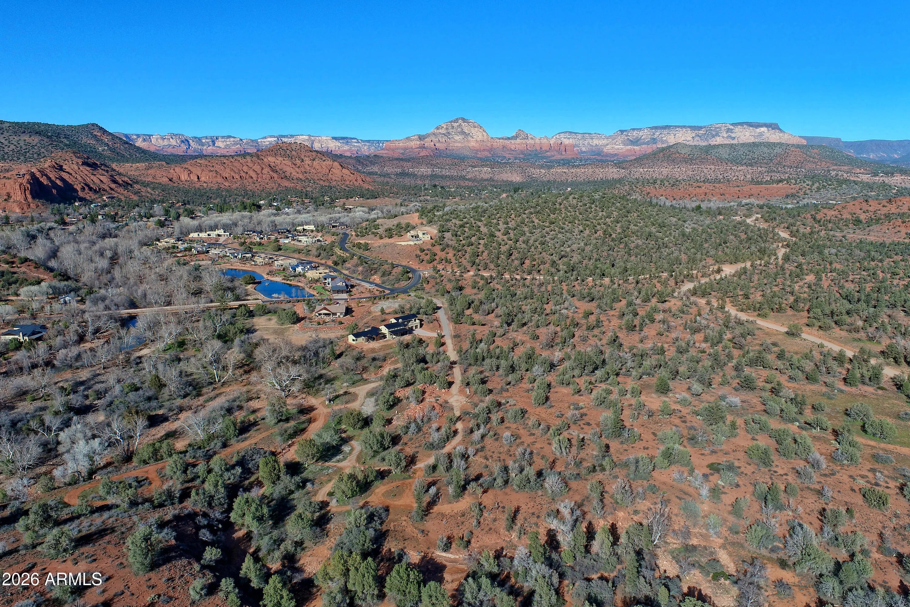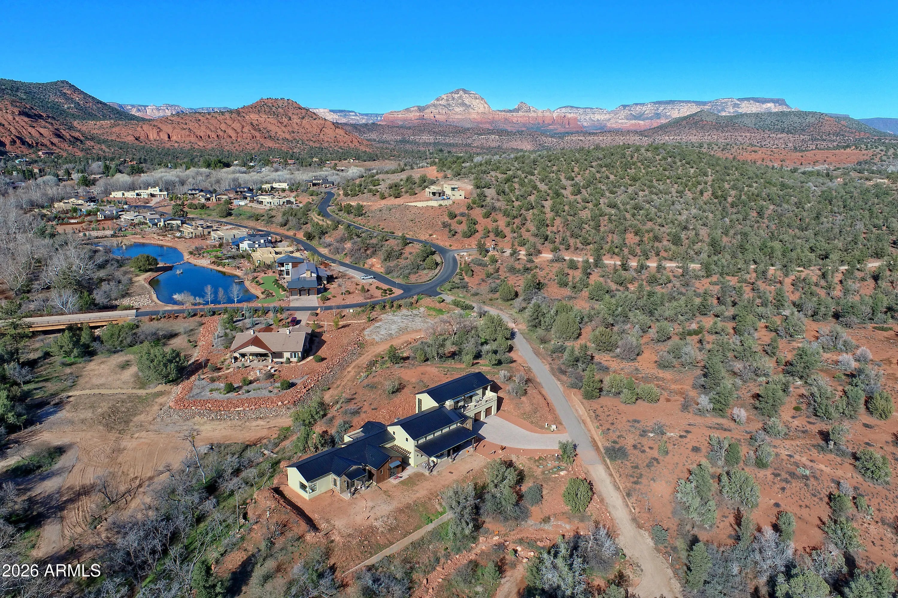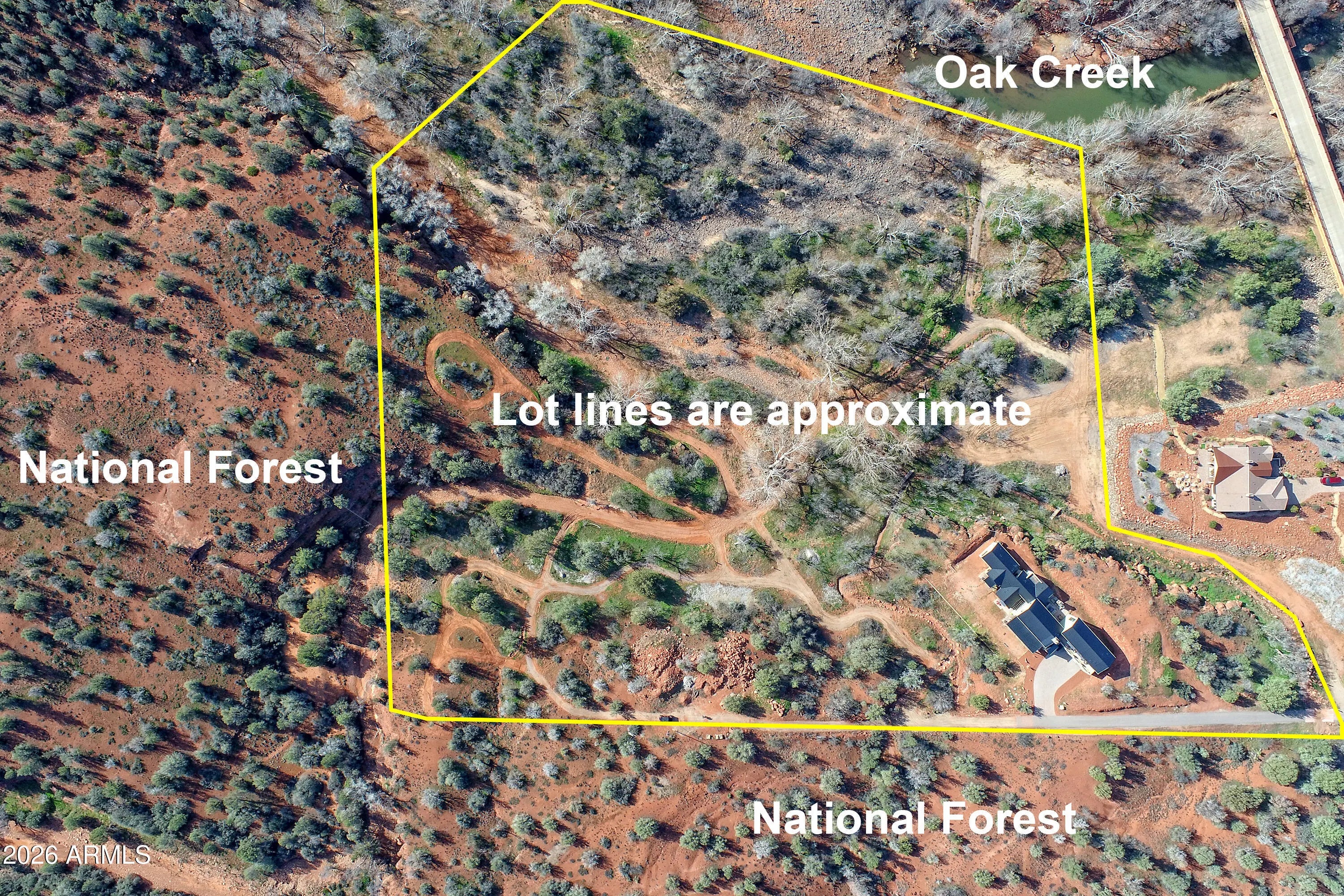 Oak Creek Frontage w/ your own beach, your own Vortex & rock quarry on 11.928 acres of absolute privacy bordered on the south & east by National Forest bordered on the south and east by National Forest. Tucked inside prestigious Sedona Ranch on Oak Creek, this 2022-built modern farmhouse offers water & No future neighbors. No compromises. Just red rock country, creek frontage, Red Rock Views, & silence that feels expensive. At 4,414 square feet, the home was designed for people who value space, light, & intention: not excess. The great room anchors the home with towering ceilings & a clean, confident flow into a chef's kitchen that doesn't apologize for being serious. Wolf. Sub-Zero. A massive waterfall island. A wet bar with pass-through windows that open directly to the south patio b Outdoor living here isn't an afterthought. The north patio delivers a grand outdoor fireplace: perfect for long dinners, quiet nights, and unapologetic stargazing. Every main-level bedroom has its own bath and private patio access, each framing a different slice of Sedona's landscape. Upstairs, the home shifts gears. A private apartment-style suite with its own living room, ensuite, and a wraparound view deck aimed straight at Cathedral Rock. Guests, extended family, or a retreat-within-a-retreat: it works because it's separate by design. But here's where this property becomes something else entirely. You don't just see nature: you own it. Creek frontage. A private beach. A hammock waiting for slow afternoons. Walk the land and you'll find 100+ year-old sycamores, remnants of historic orchards, a rock quarry, and your own vortex that people come to Sedona hoping to find. Step beyond your boundaries and you're instantly connected to miles of hiking and biking trails, straight from the property. No loading the car. No crowds. And because this land begs to be explored, the seller is offering- via separate bill of sale- a fully upgraded 2024 Defender UTV with rock-climbing suspension for $50,000. Not a toy. A tool. One that lets you experience every inch of red dirt you actually own. Staging Package available separate bill of sale for $40,252. This isn't a home you compare. It's one you measure everything else against. Sedona Ranch. Oak Creek. National Forest borders. Modern farmhouse, done right. Utilities for 407: APS, Yavapai Gas for Propane, Quantum Fiber Optic for Internet, AZ Wastewater for Septic, Patriot for Garbage, Water is "Retreat at Oak Creek Water Improvement District"