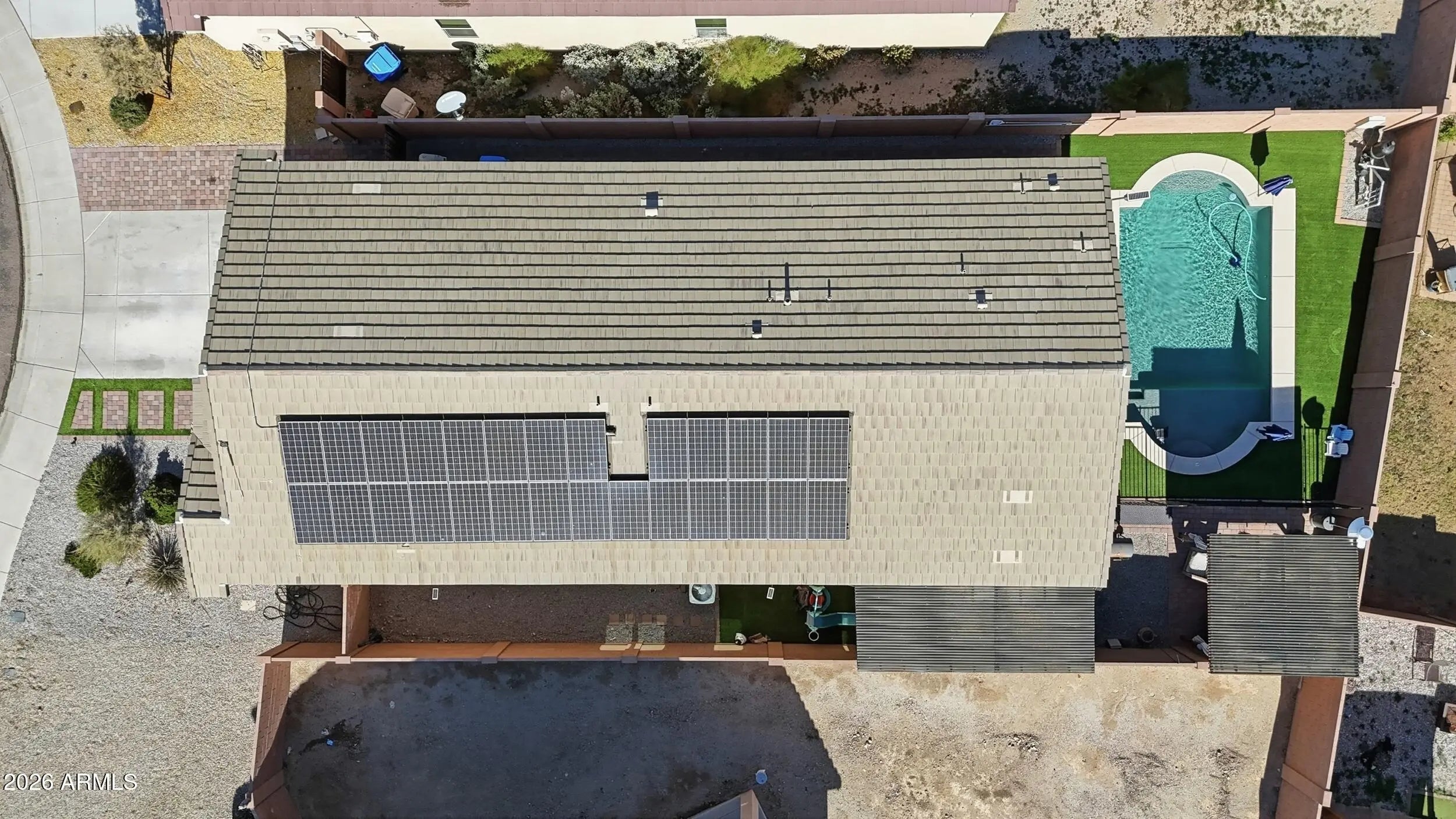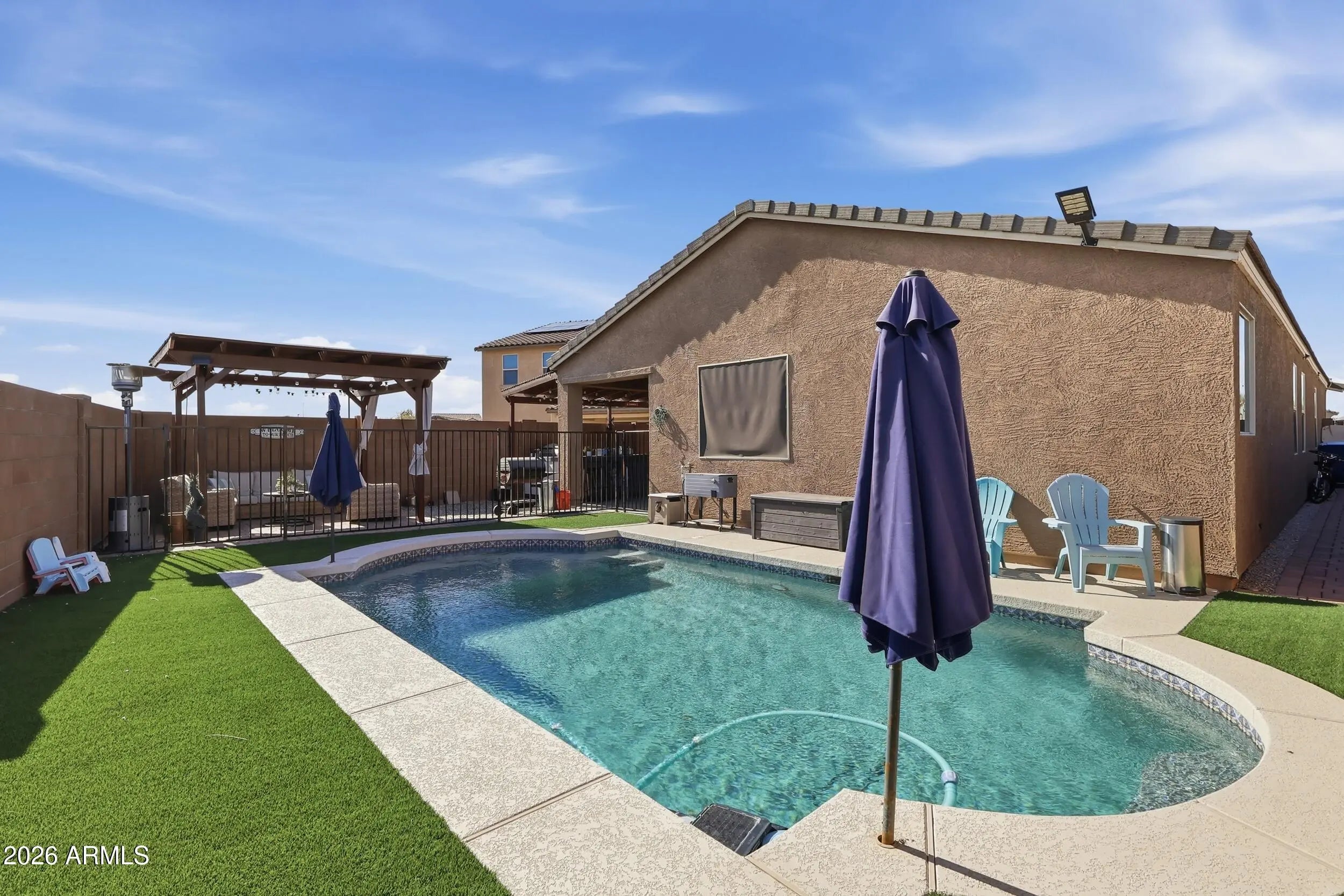Beautifully maintained 3-bedroom, 2-bath home with a separate den and office, showcasing true pride of ownership throughout. Thoughtful attention to detail can be seen in both the small finishes and major upgrades. The functional floor plan offers flexible living space ideal for a home office or den. Step outside to a private backyard designed for Arizona living, featuring a sparkling pool and built-in grill perfect for entertaining or relaxing year-round. Owned solar provides substantial monthly savings on utility bills. This home offers comfort, efficiency, and exceptional outdoor living.