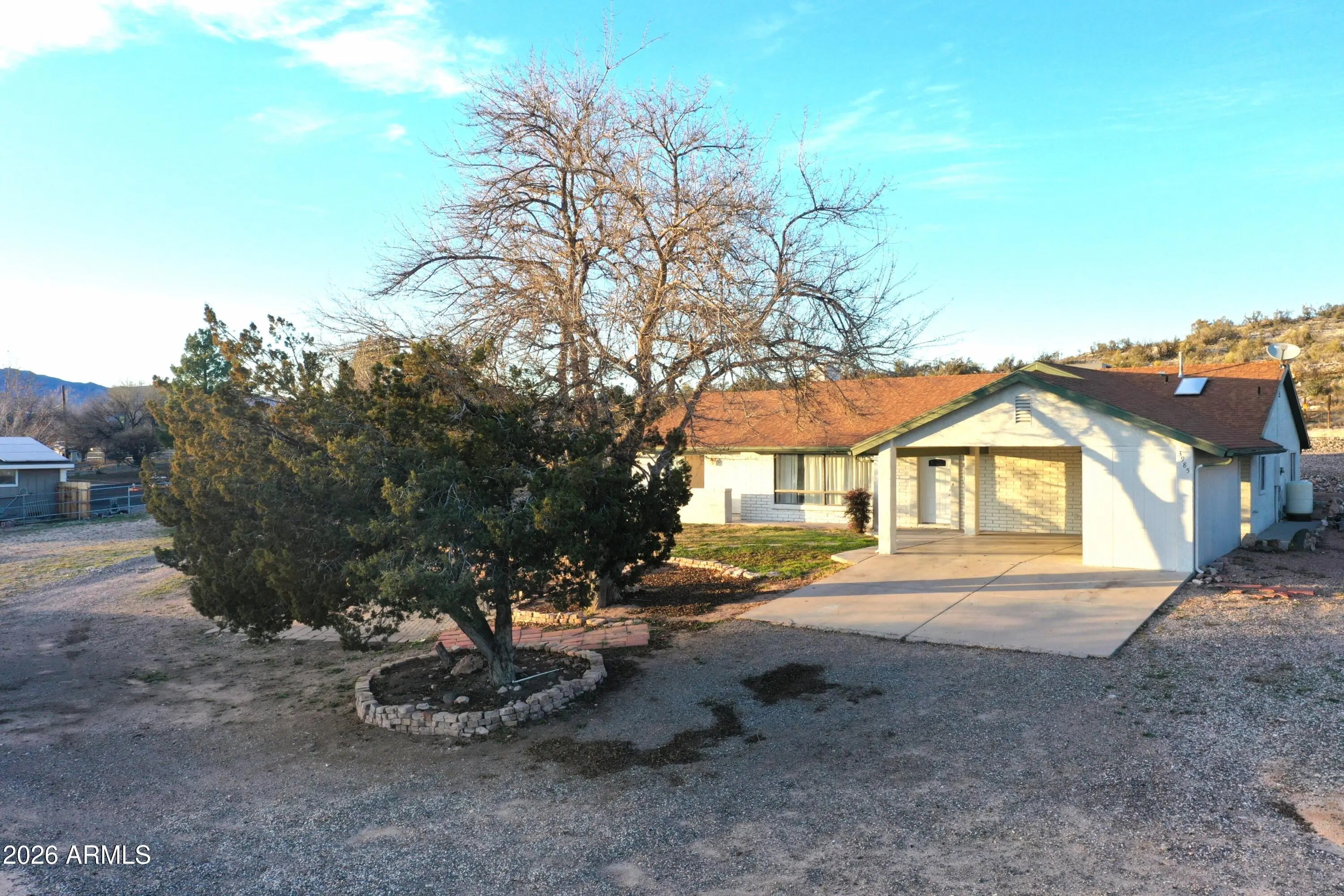 Situated on .9 of an acre, with Mingus Mountain views, this spacious 2184 SF home with private well and septic is ready for it's next owner. Enjoy the impressive stone wood burning fireplace. This property is sure to please with natural gas for cooking and cleaning. Enjoy the large master bedroom, with a huge walk in closet, storage shelves in place, soaking tub and separate shower! Zoning will allow for horses and chickens, no HOA! Across the road from National forest land for miles and miles of biking, hiking, horseback and atv riding! Just minutes from Cottonwood, only about 25 minutes to Sedona, and about 25 minutes to I17 for quick access to Prescott, Flagstaff and Phx.