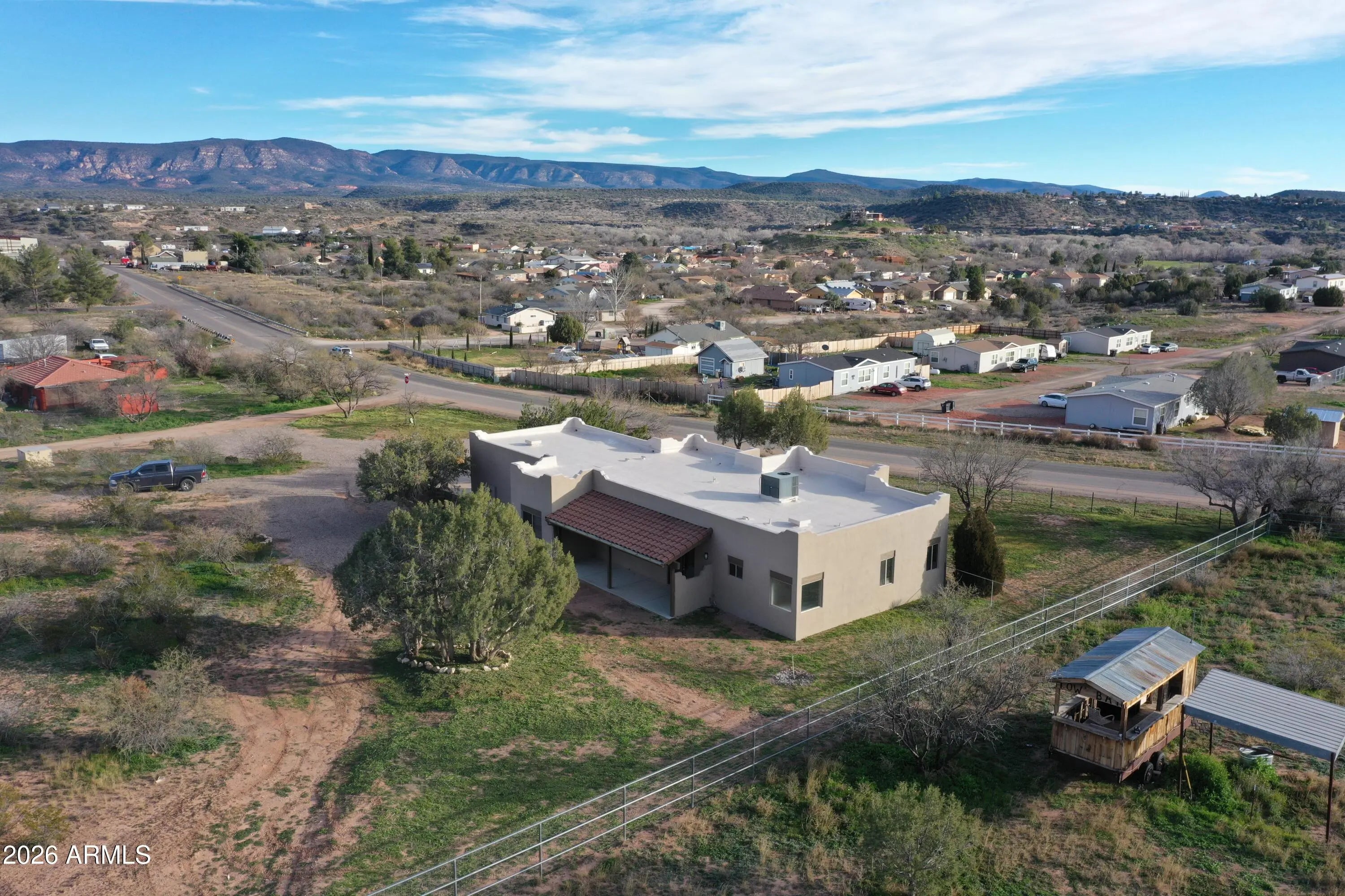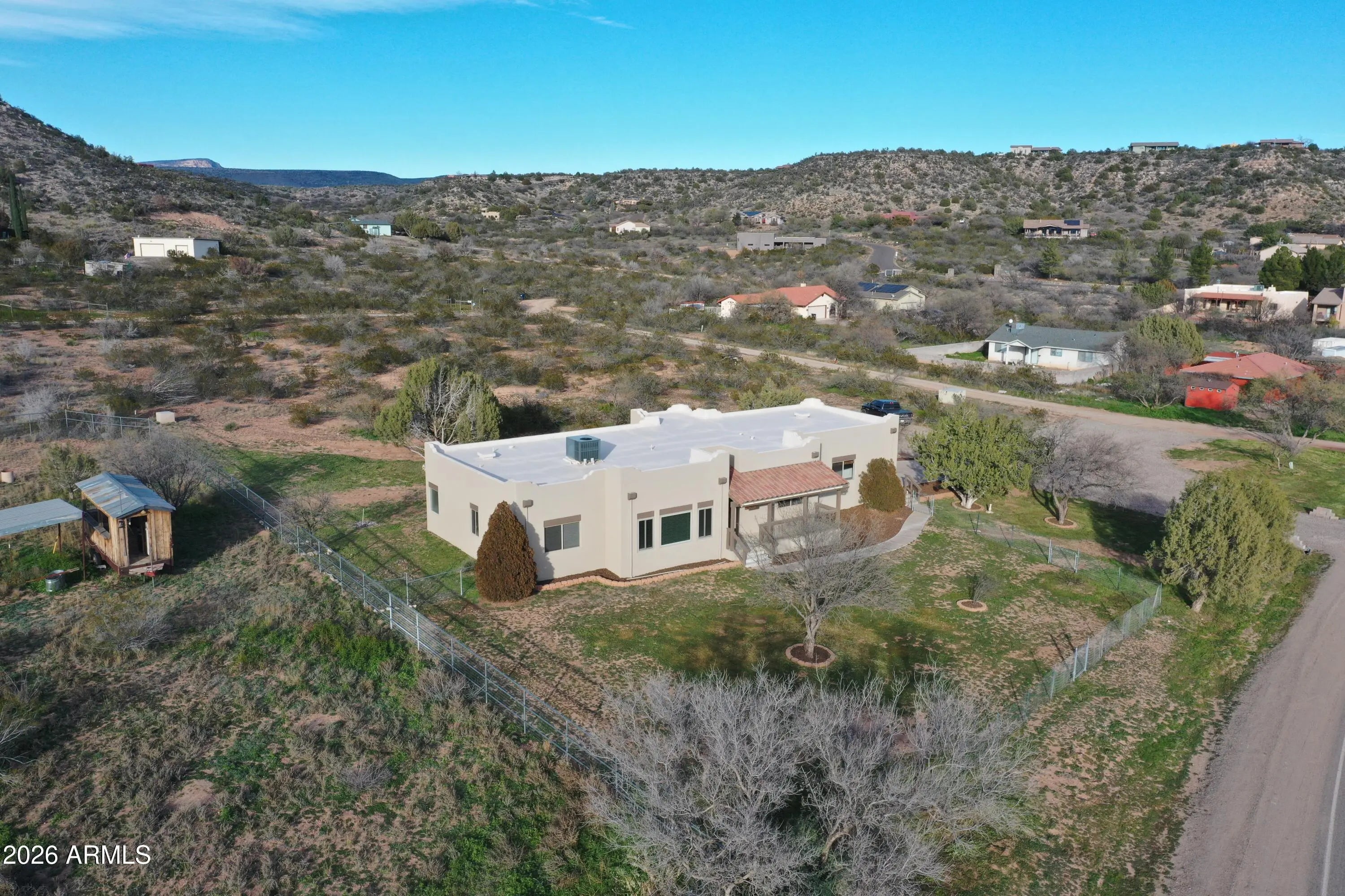 Brand new roof on this 1978 Sf custom home situated on 1.17 acres with mountain views. Just moments from Montezuma's Well, as well as national forest land. The 24'X28' attached garage is the perfect base for your toys. Many recent upgrades including new stucco and fresh interior paint. This stunning property is on it's own well, with an irrigation system already in place. Inside you will find beautiful tile floors, a large kitchen, with a glass cooktop. The master bedroom included a walk in closet, with storage system, and the master bath has a separate tub and shower. No HOA and zoning that allows for horses! Just a short drive to the Village or Oak Creek and quick access to I17!