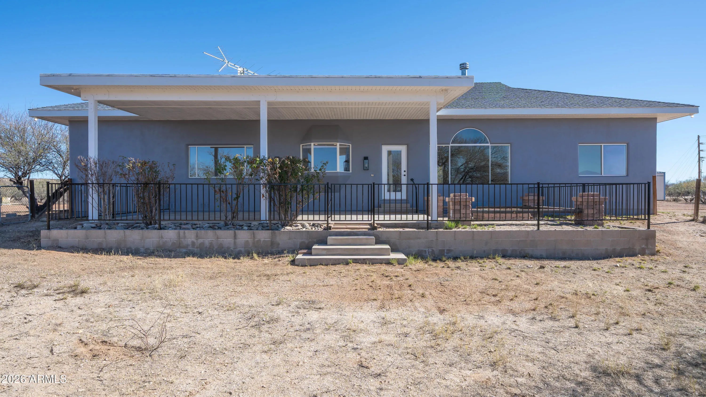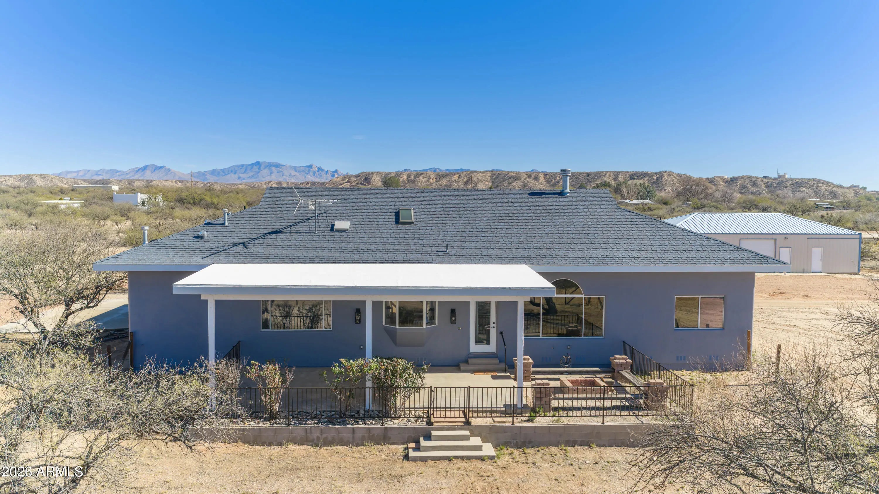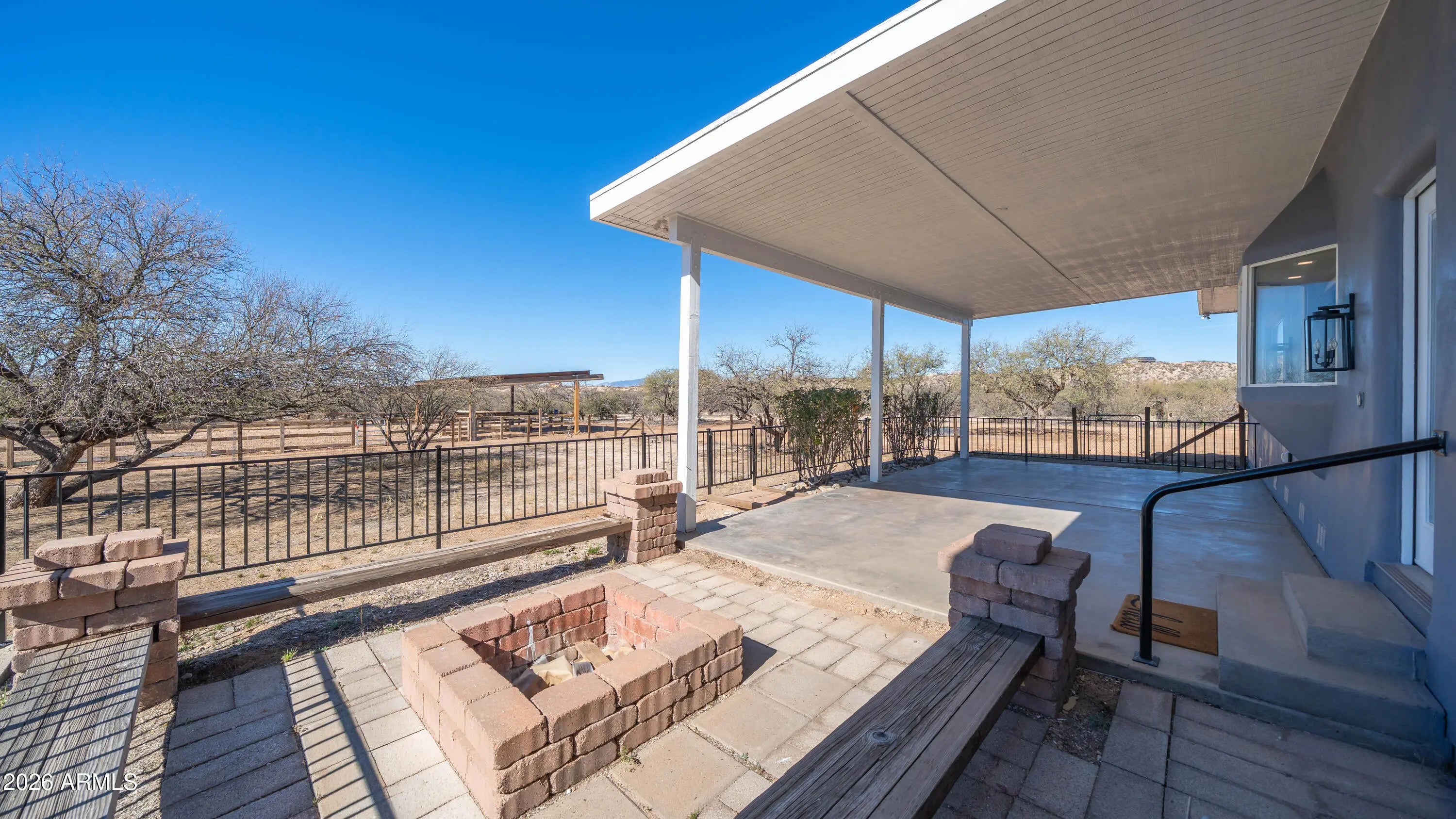 Set at the end of a quiet peaceful country road, this rural equestrian property sits on just over 5.3 acres. This home and property have been thoughtfully laid out. The main home offers dual living spaces that could double as one living space and a dining space.. The heart of the home is highlighted by a spectacular, oversized granite slab imported from Europe specifically for this home. The kitchen has a new gas cook top, wall oven and microwave. The gourmet kitchen features integrated under cabinet illumination complemented by floor lighting for a warm ambience. The layout of the home is 3 bedroom 2 bath with a bonus room that could be an office. The primary bedroom offers a comfortable retreat with a fireplace and an en-suite complete with a jetted tub and oversized shower with a rain shower head. The construction of the home is steel stud framed with pre-engineered steel. The interior and exterior have been recently painted. The home is equipped with a central vacuum with the hoses and attachments. The backyard is designed to take full advantage of the setting, featuring an oversized porch to capture the incredible mountain views. Equestrian amenities include a 65'x135' reclaimed cedar arena with two horse stalls offering a functional and charming set up for horse enthusiasts. The property is on it's own private well. The property also includes a separate one bedroom casita that has been completely remodeled. This is a great opportunity for rental income. The casita has an attached garage with laundry hook-ups and an additional work-shop or tack room. This property has it all. The home has been virtually staged.