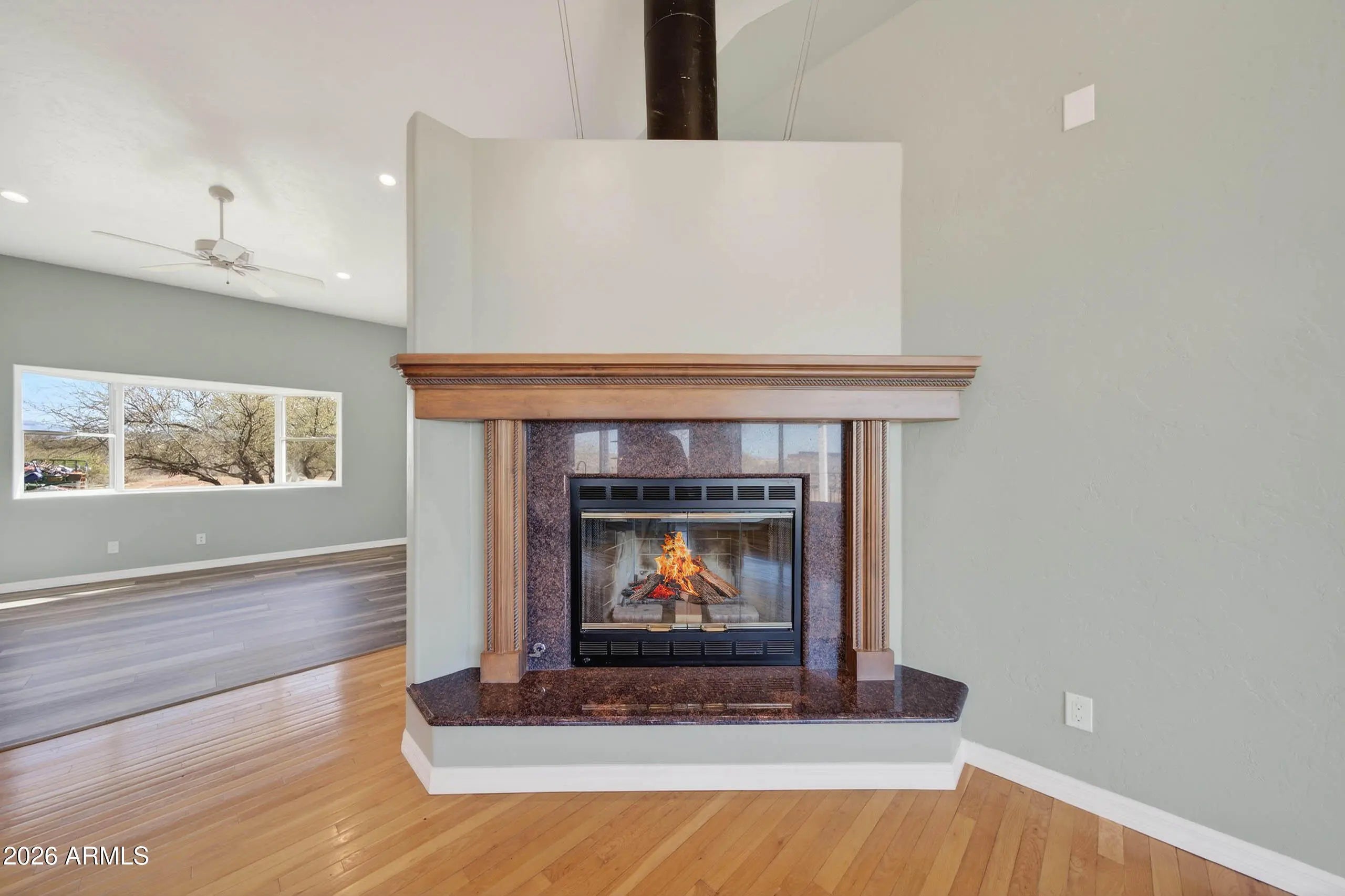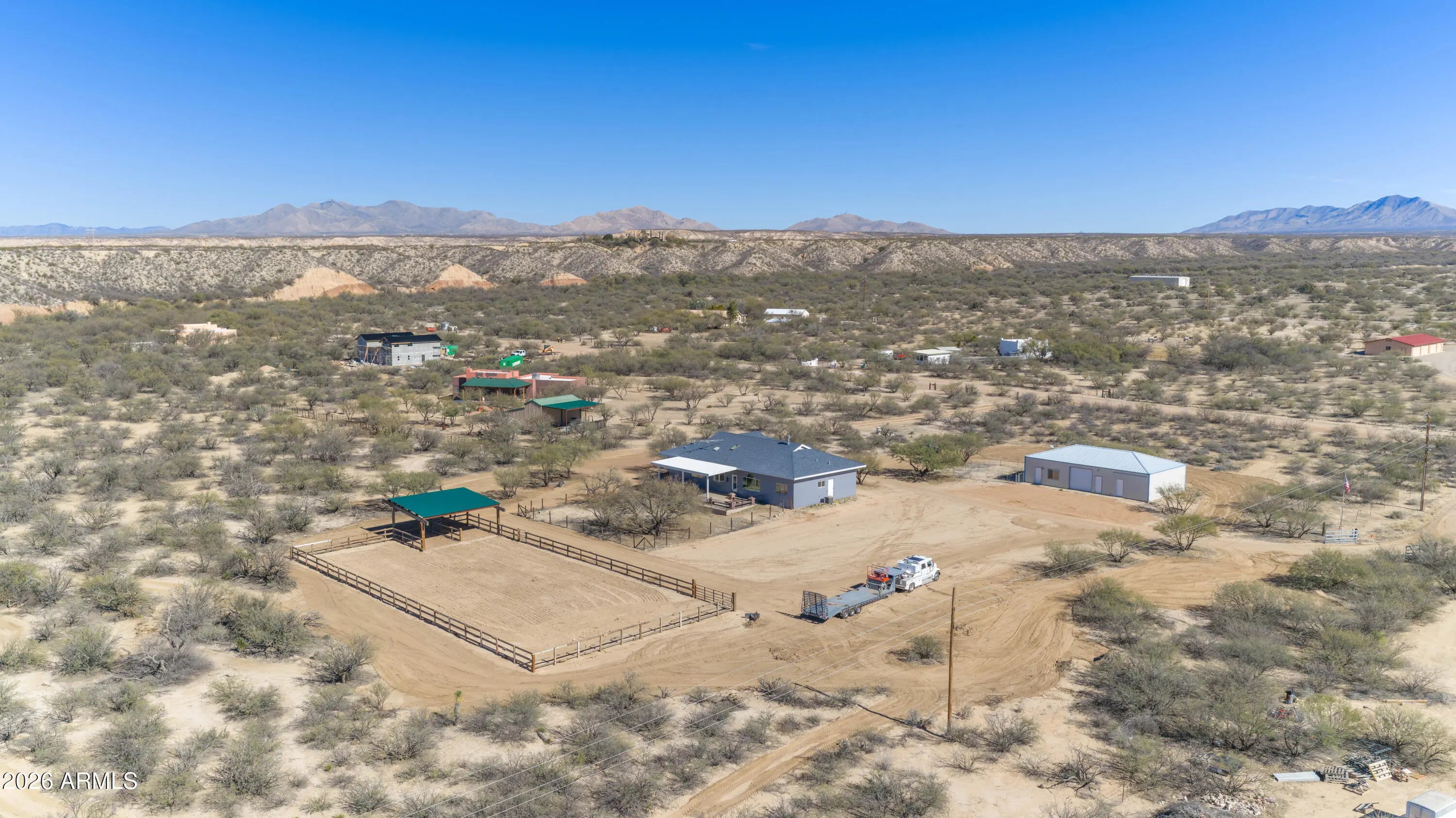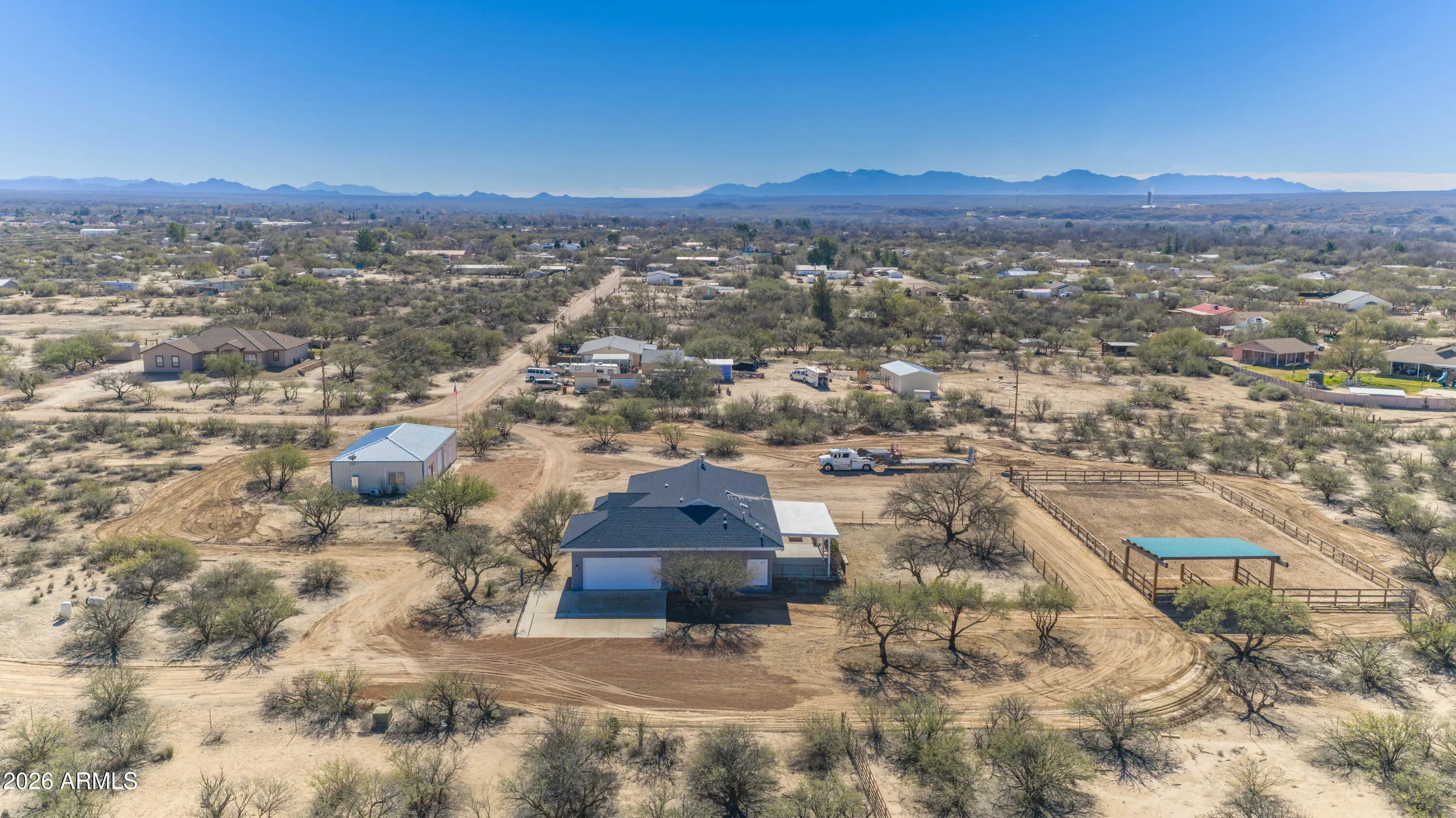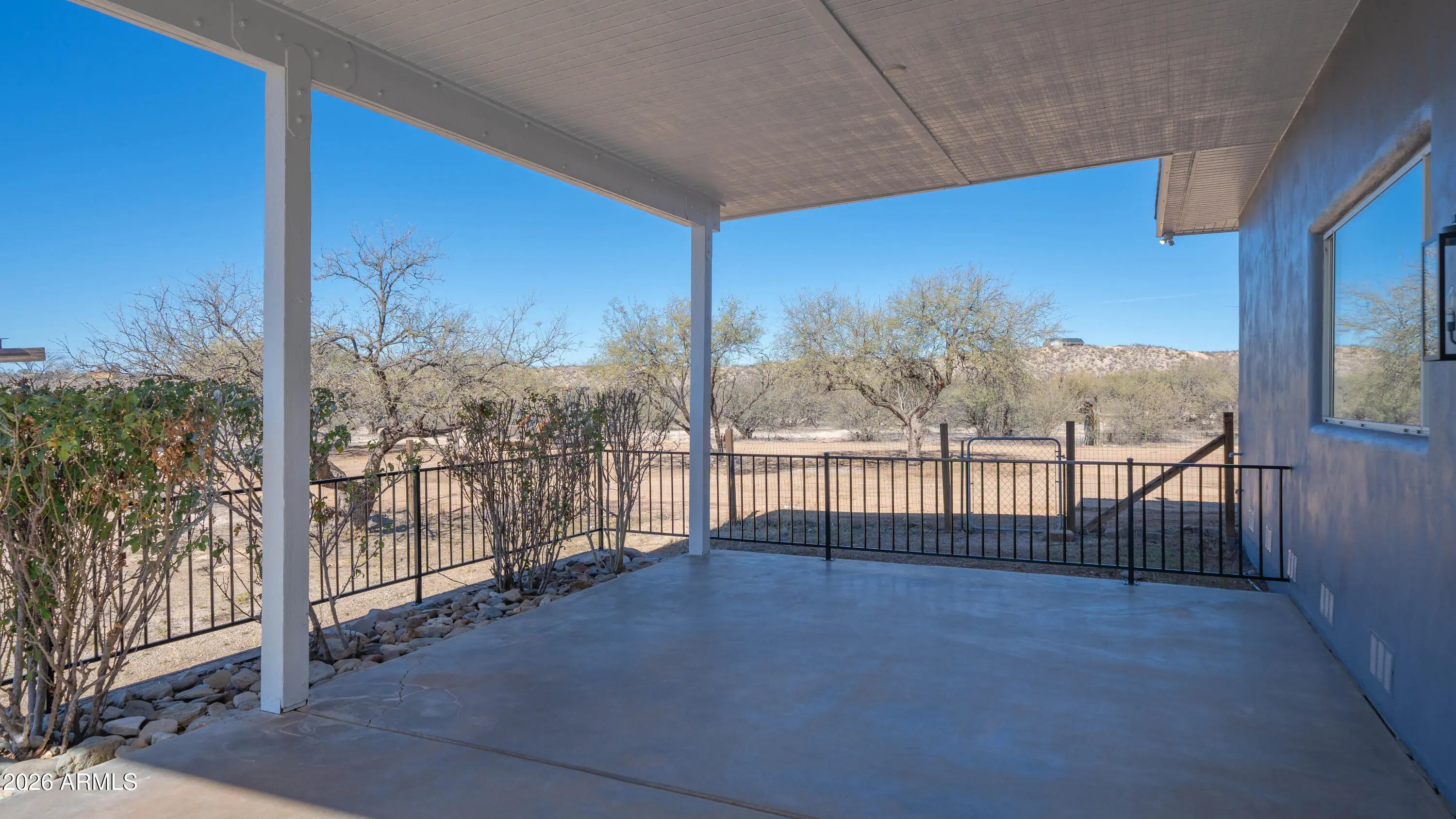 Set at the end of a quiet peaceful country road, this rural equestrian property sits on just over 5.3 acres. This home and property have been thoughtfully laid out. The main home offers dual living spaces that could double as one living space and a dining space.. The heart of the home is highlighted by a spectacular, oversized granite slab imported from Europe specifically for this home. The kitchen has a new gas cook top, wall oven and microwave. The gourmet kitchen features integrated under cabinet illumination complemented by floor lighting for a warm ambience. The layout of the home is 3 bedroom 2 bath with a bonus room that could be an office. The primary bedroom offers a comfortable retreat with a fireplace and an en-suite complete with a jetted tub and oversized shower with a rain shower head. The construction of the home is steel stud framed with pre-engineered steel. The interior and exterior have been recently painted. The home is equipped with a central vacuum with the hoses and attachments. The backyard is designed to take full advantage of the setting, featuring an oversized porch to capture the incredible mountain views. Equestrian amenities include a 65'x135' reclaimed cedar arena with two horse stalls offering a functional and charming set up for horse enthusiasts. The property is on it's own private well. The property also includes a separate one bedroom casita that has been completely remodeled. This is a great opportunity for rental income. The casita has an attached garage with laundry hook-ups and an additional work-shop or tack room. This property has it all. The home has been virtually staged.