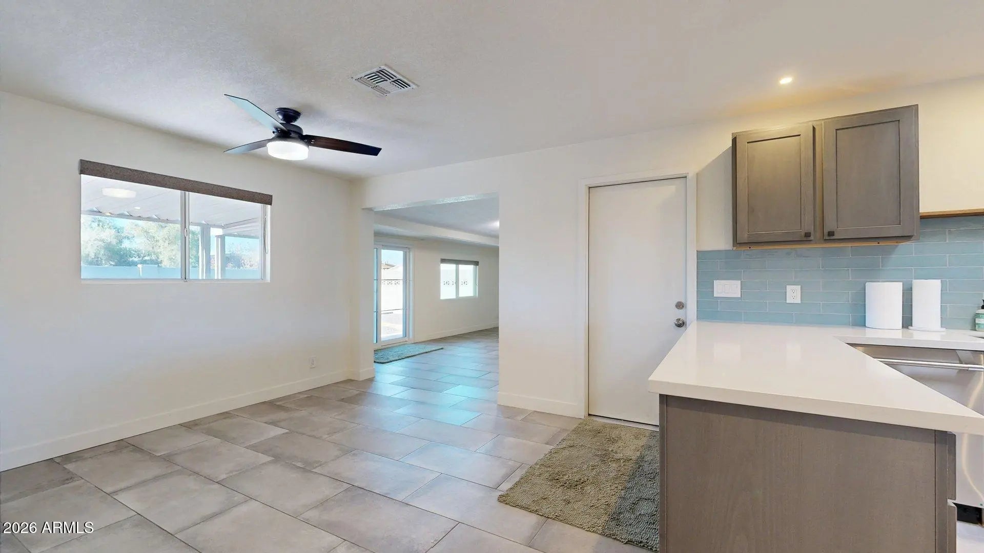 The property is a beautifully renovated single-family ranch-style residence, thoughtfully updated to blend timeless mid-century modern aesthetics with contemporary sophistication. Spanning approximately 1,520 square feet, this charming 3-bedroom, 2-bathroom home was originally built in 1961 and has been meticulously re-imagined. Clean lines and an open, airy floor plan define the interior, highlighted by a stylish gourmet kitchen featuring sleek gray shaker-style cabinetry, premium quartz countertops, a striking custom tile backsplash, and a modern range hood. The design offers seamless flow and abundant natural light, with a versatile bonus room that enhances the home's livability. Nestled in the desirable Marilyn Ann neighborhood of Tempe, the property enjoys an enviable location with convenient access to major thoroughfares, Arizona State University, downtown Tempe's vibrant dining and cultural scene, and scenic downtown views from select vantage points. This stylish residence combines classic architectural appeal with modern upgrades, presenting an exceptional opportunity for refined desert living in one of Tempe's most sought-after areas.