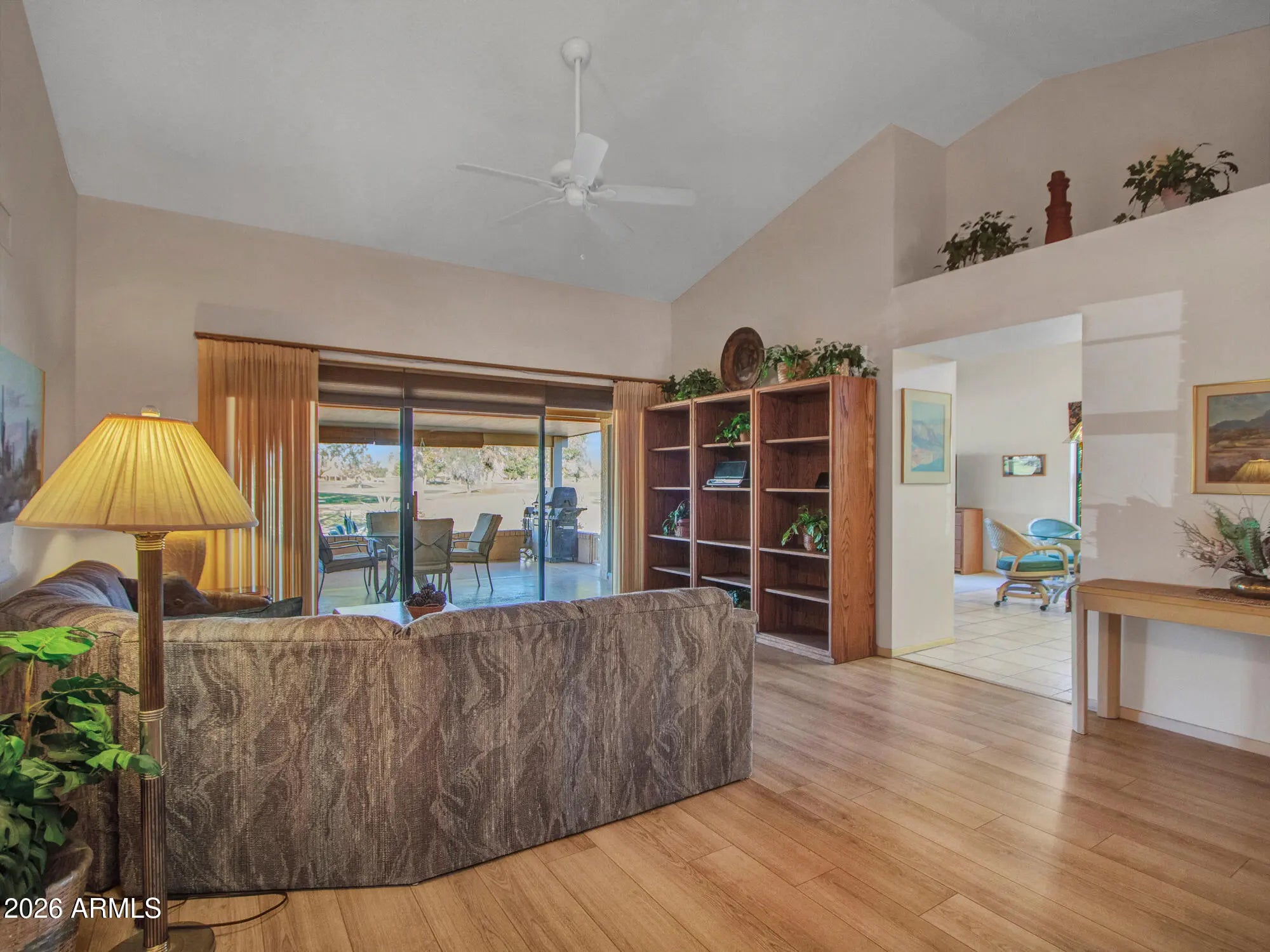 Enjoy serene GOLF COURSE living in one of Sun City West's most desirable 55+ settings. Backing to the Echo Mesa Golf Course on a quiet, tree-lined street, this beautifully maintained home offers unobstructed views and a calm, retreat-like atmosphere - just minutes from the RH Johnson Recreation Center. This highly desirable Aspen model features 2 bedrooms, 2 bathrooms, and 1,866 sq ft of thoughtfully designed living space. Vaulted ceilings, abundant natural light, & an open, smart floor plan create a bright, welcoming home that's easy to live in and ideal for entertaining family and friends. The expansive covered patio is the heart of the home, showcasing peaceful golf course views, sun shades for added comfort & privacy, mature citrus trees, and space for multiple seating and dining areas. Perfect for morning coffee, evening sunsets, or hosting guests. Meticulously cared for over the years, the home includes a brand-new water heater and offers a true low-maintenance lifestyle. The HOA covers water, sewer, garbage, exterior maintenance (roof, stucco, paint, pest control), front-yard landscaping and a blanket insurance policy, allowing you to focus on enjoying everything Sun City West has to offer, including easy access to RH Johnson and three additional recreation centers. Don't miss the opportunity to own this peaceful golf course oasis at 13714 W Greenview.