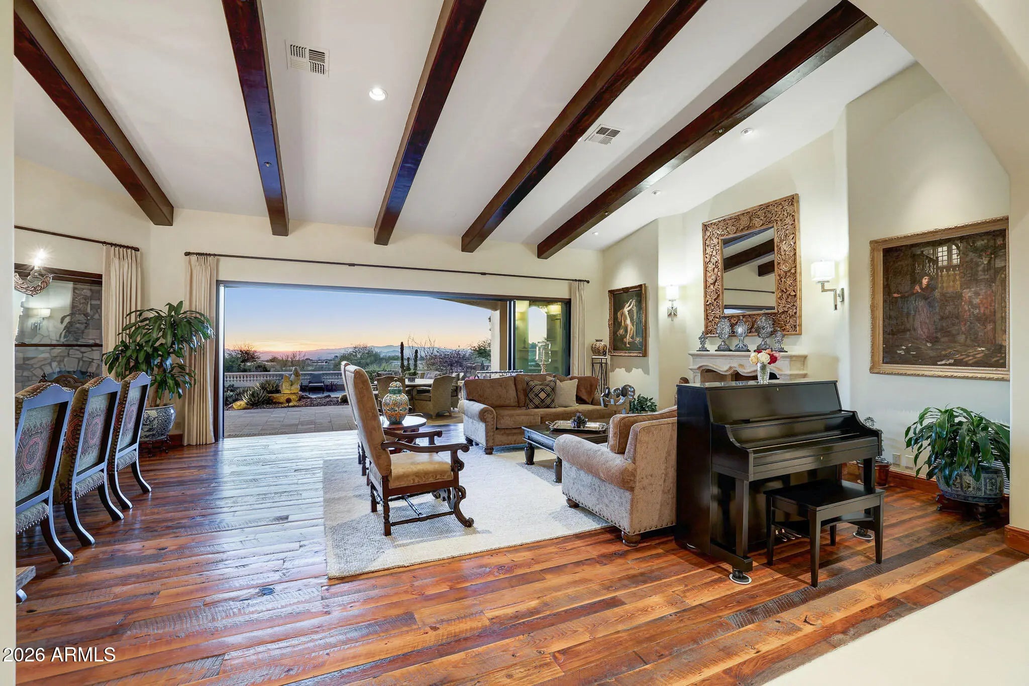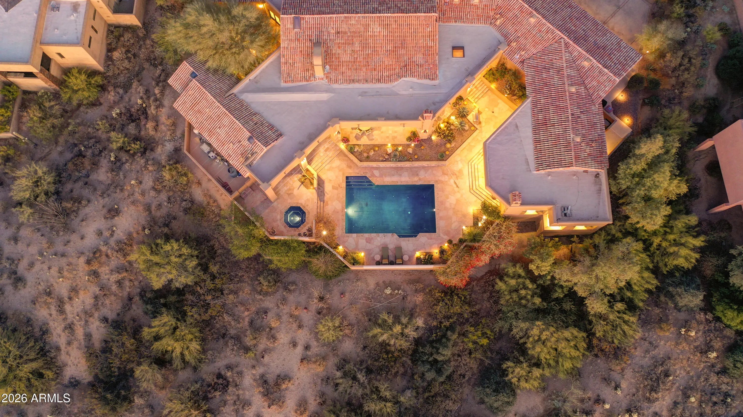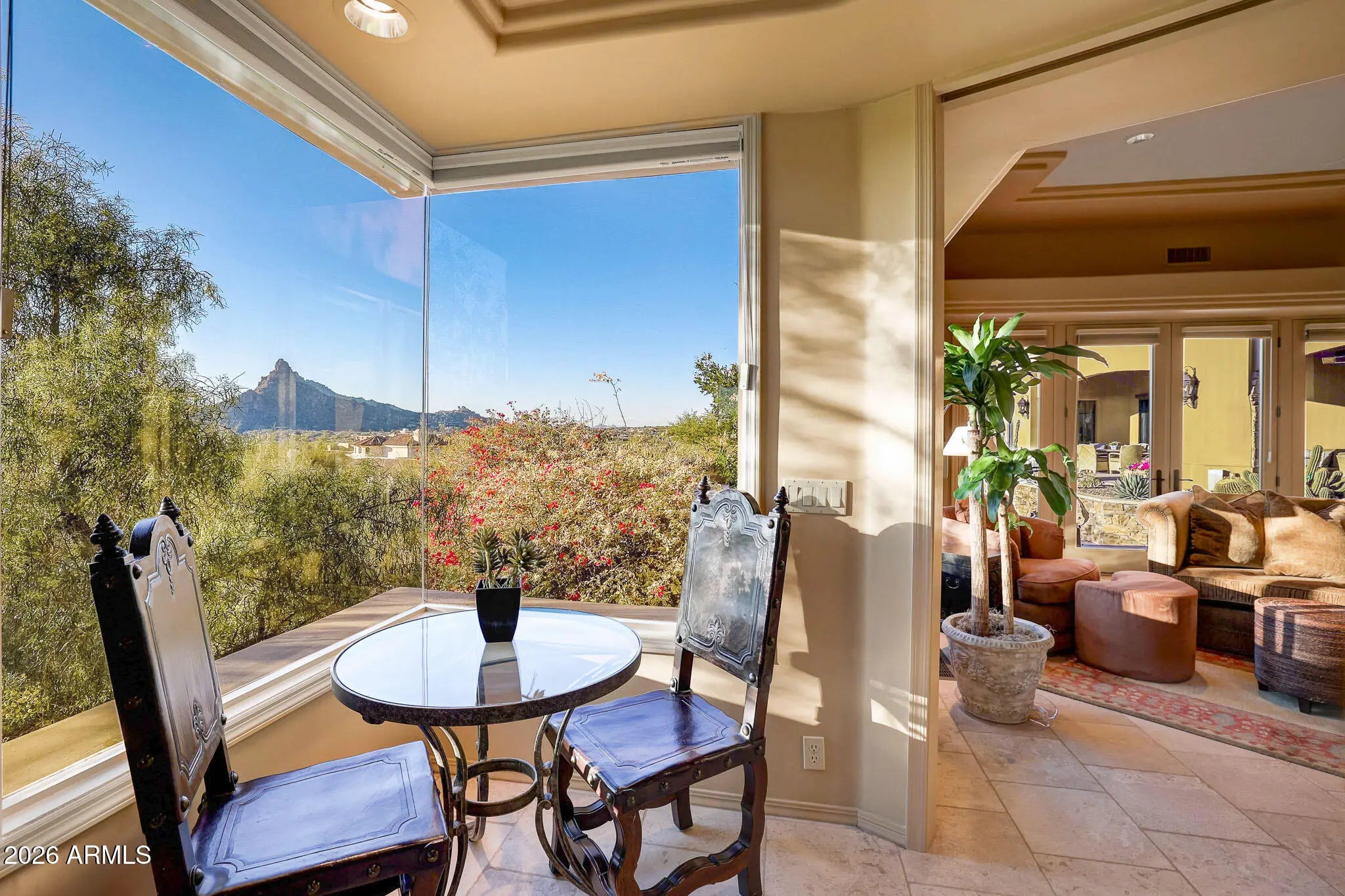 Located in the exclusive guard-gated community of Windy Walk in Troon, this exceptional estate at offers 6,600 square feet of living space on a one-acre lot with panoramic views in every direction. Surrounded by the natural beauty of the Sonoran Desert, the home provides remarkable privacy, tranquility, and sweeping mountain and desert vistas. The expansive floor plan is filled with natural light and thoughtfully designed to capture the views, featuring generous living and entertaining spaces ideal for both everyday living and hosting guests. Spacious bedrooms and a luxurious primary suite create a private retreat with serene surroundings. The exceptional home offers a warm living while enjoying breathtaking Arizona sunset Conveniently located near world-class golf, hiking trails, upscale shopping, and dining, this rare offering combines space, views, and exclusivity in one of Scottsdale's most sought-after communities.