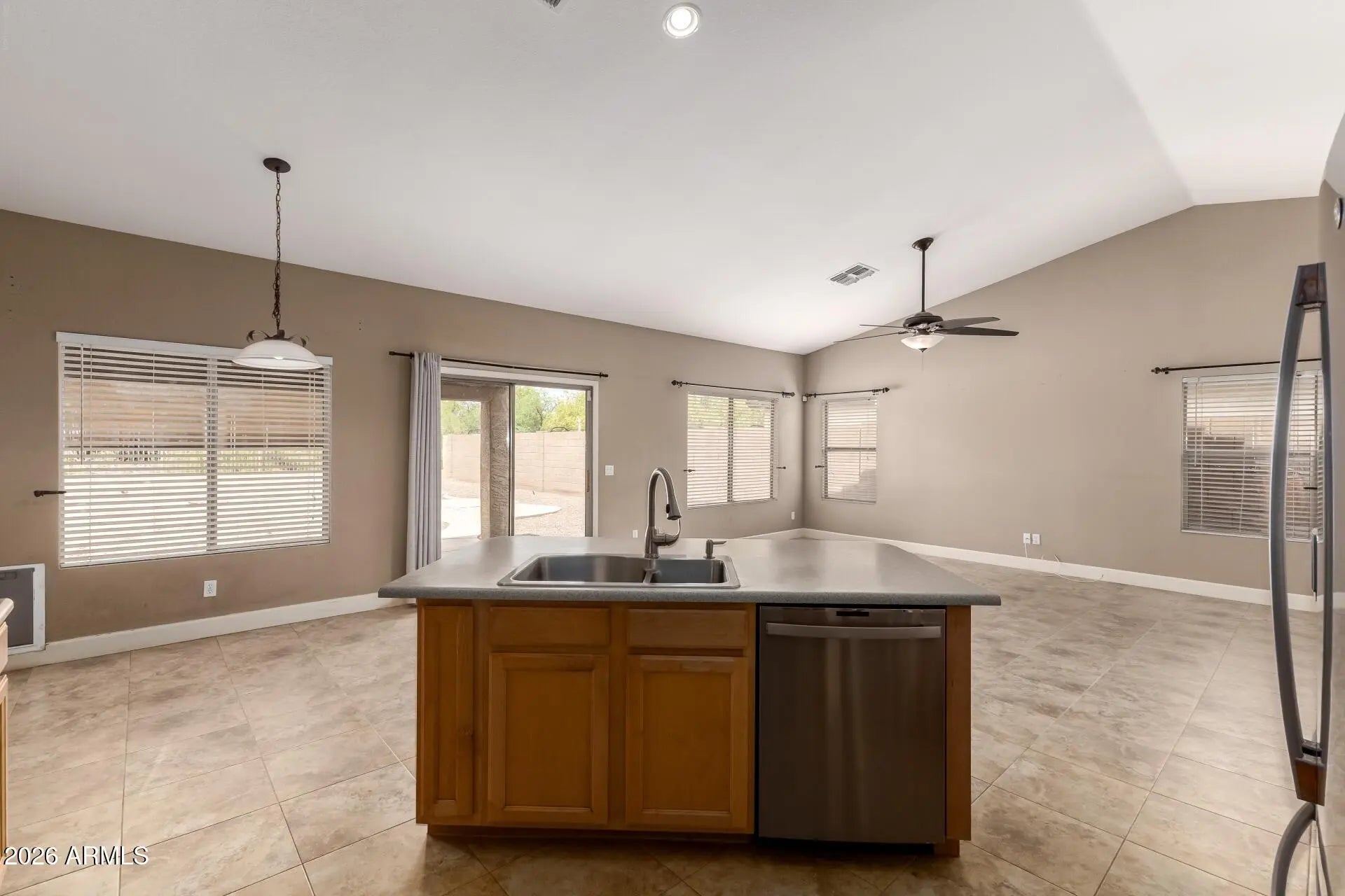Beautiful 3 bedroom 2 Bathrooms 2 Car Garage located in Mesa. This popular floor plan offers a spacious design with vaulted ceilings, tile flooring, two-tone paint creating a soothing color palette accented by recessed lighting, decorative fans and fixtures. The kitchen features stainless steel appliances and a center island with a breakfast bar. The main bedroom offers a private bath with dual sinks, separate shower/tub and a walk-in closet. Enjoy a sizable backyard with a covered patio..Located close to schools, dining, shopping and entertainment!! Come and see!