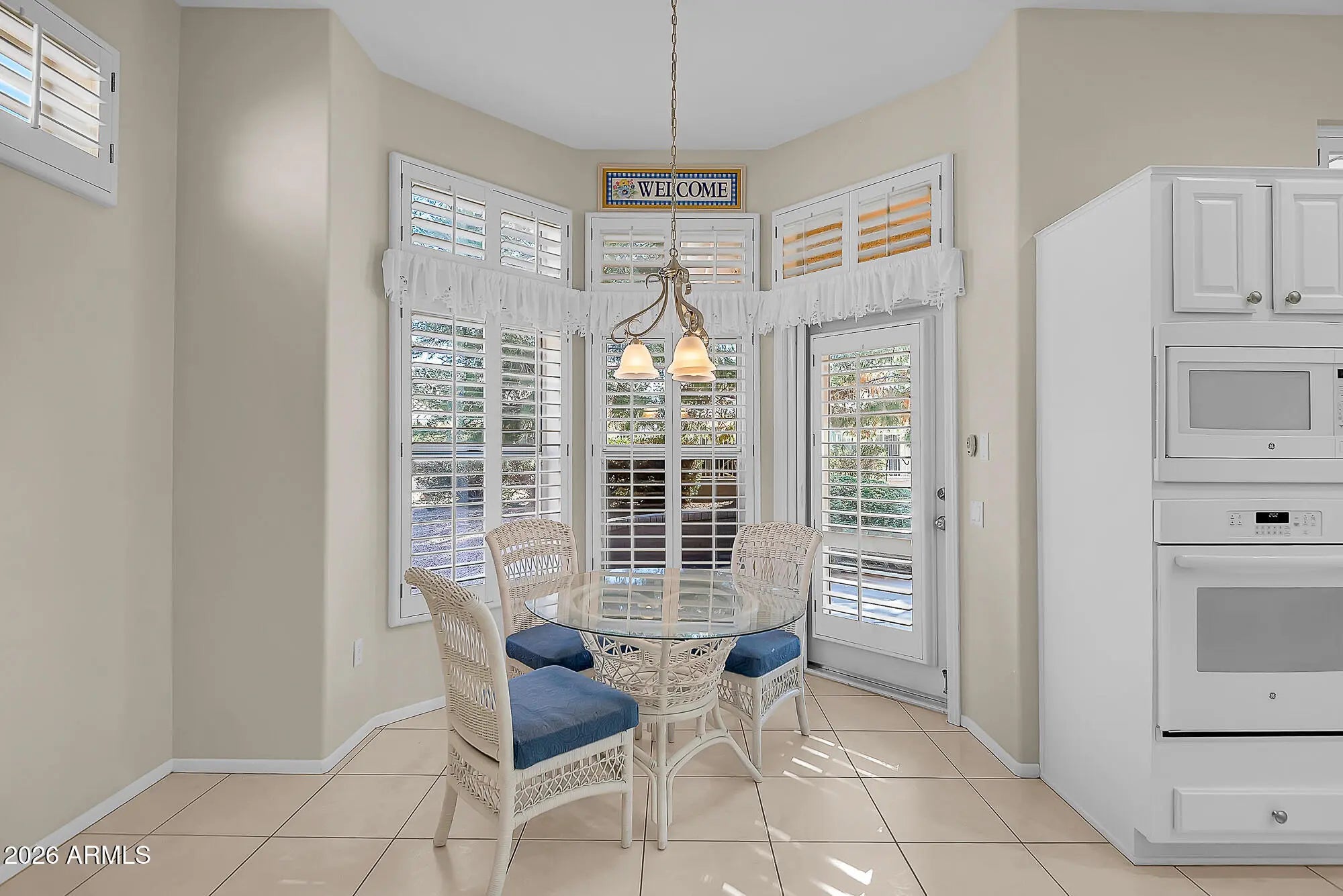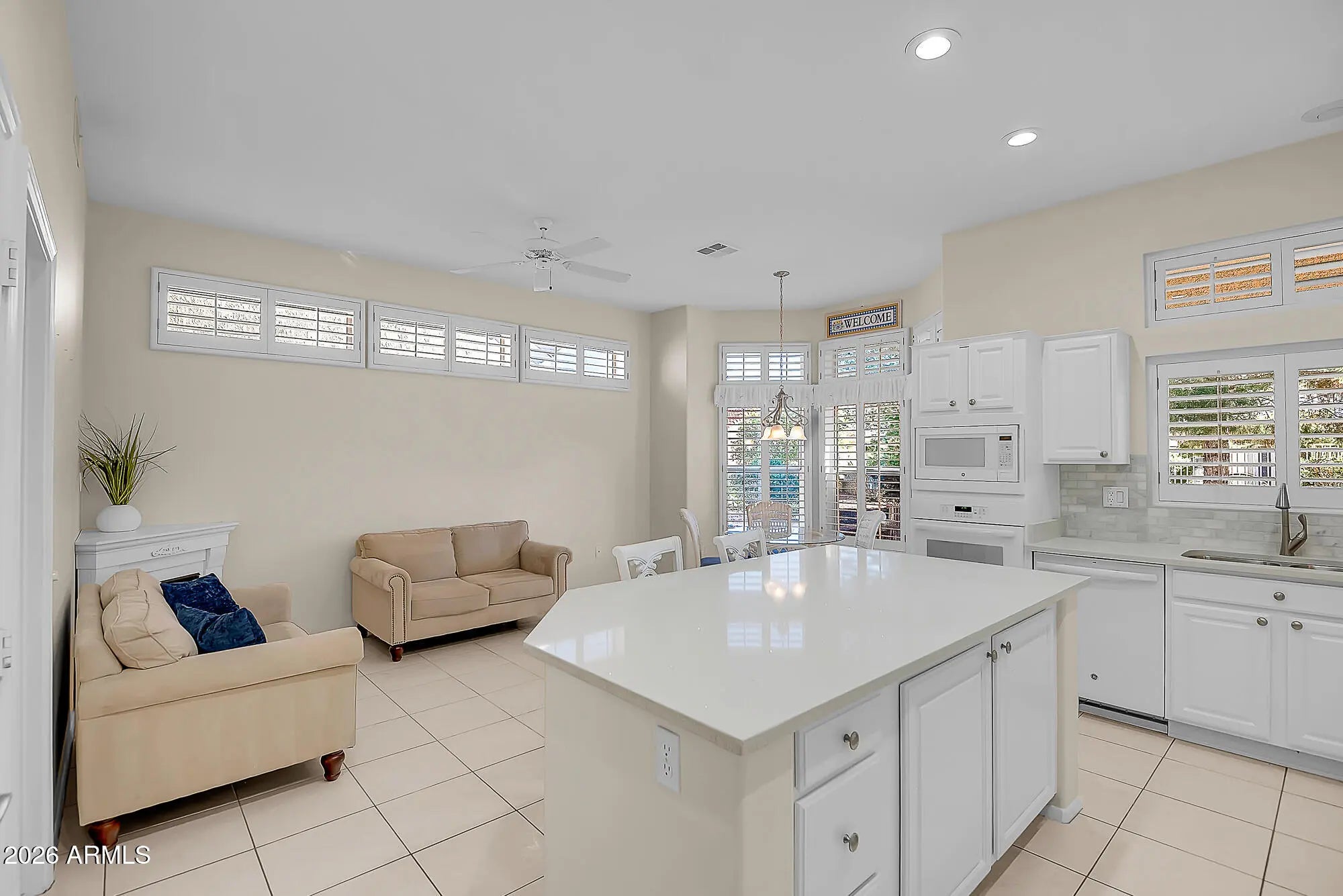 Some homes feel right the moment you arrive, and this is one of them. From the quiet curb appeal to the light-filled interior, everything here is already done, already styled, and truly move-in ready. Even better, it's being sold furnished, so you can skip the setup and start enjoying the lifestyle from day one. This Ventana floor plan offers exceptional flexibility with two primary suites, a versatile den, and thoughtfully designed spaces that flow effortlessly. Mornings begin in a kitchen made for gathering, featuring quartz countertops, refreshed cabinetry, a generous island for casual meals, and the option for gas cooking. It's fresh, polished, and perfectly suited for both everyday living and easy entertaining. The primary suite is a peaceful retreat with a bay window overlooking the backyard, where mature trees provide shade and privacy. Evenings are best spent outside under the covered patio, enjoying the quiet and the ease of a partially fenced yard. An extended garage adds valuable space for a golf cart, hobbies, or storage, while a newer A/C (2022) offers added peace of mind. Just a short walk to Palm Ridge Recreation Center and Deer Valley Golf Course, this home places you in the heart of the active Sun City West lifestyle. This isn't just a home. It's the next chapter you've been waiting for. Come experience it for yourself today.