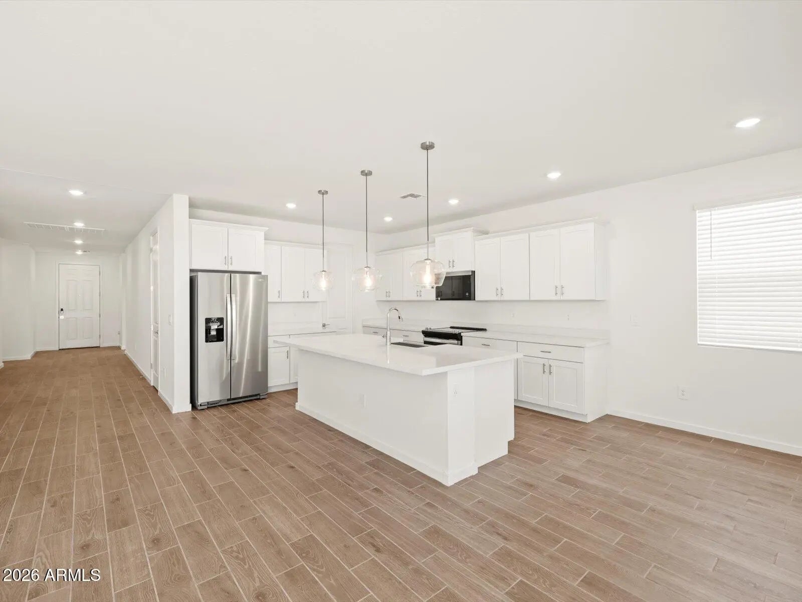 A Spacious and Unique Single-Story Home! The Lark floorplan offers a single-story layout with 4 bedrooms, 3 bathrooms, PLUS a versatile flex space. As a bonus, Bedroom 4 includes its own private bath and walk-in closet. With plenty of space and smart design, the Lark is perfect for modern living and entertaining. This home has white shaker style cabinets, quartz countertops in kitchen, wood look tile flooring and carpet in the bedrooms! INCLUDED - washer, dryer, window blinds, refrigerator and MORE! Residents will ENJOY a park, walking trails and MORE! Shopping and recreation nearby! Each home is built with innovative, energy-efficient features designed to help you ENJOY more SAVINGS!