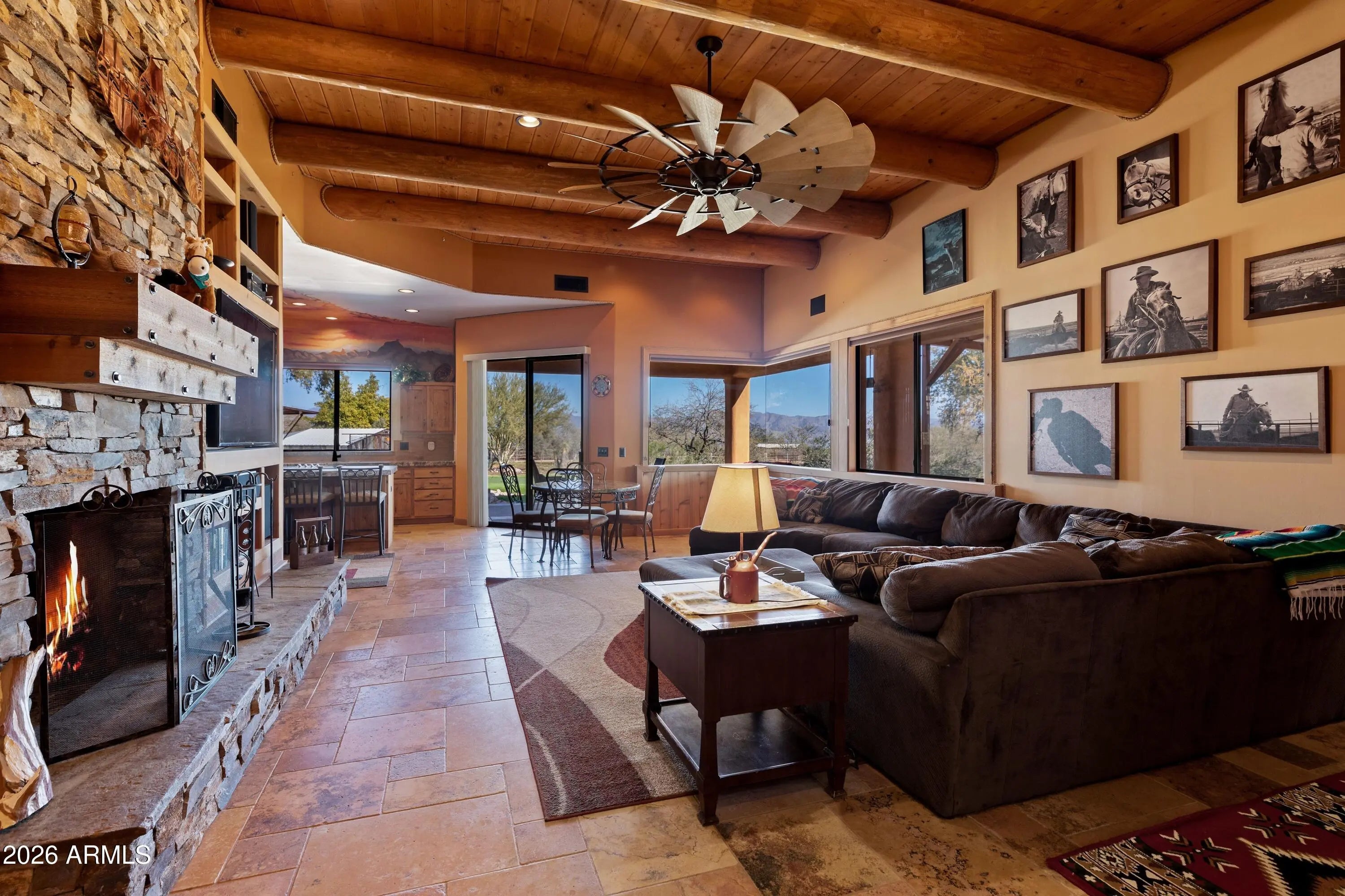 Tastefully remodeled home with a country western flair on 2.34 acres. Very special property with lots of opportunities. Currently used as a VRBO but would make a great mini horse ranch. There are nine shades with several turnouts, round pen and two RV hook ups. Mostly fenced with temperature controlled workshop, garden, chicken coop, and other options available. There is a heat and chill Jacuzzi and the two car garage was turned into a game room with a small step up into the main house. Bring your horses or toys. Just steps away from Tonto National Forest. Furniture may be available on a separate bill of sale.