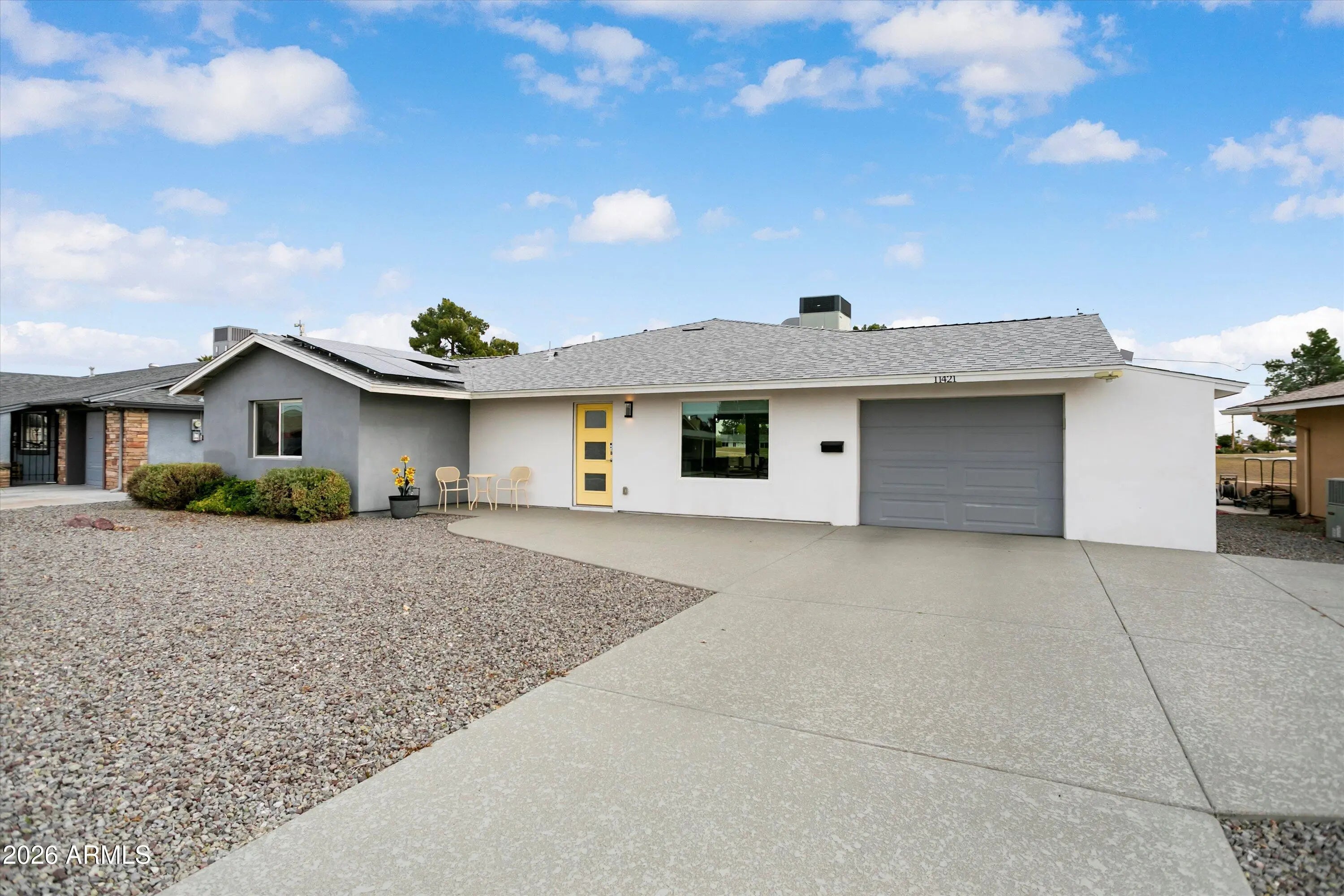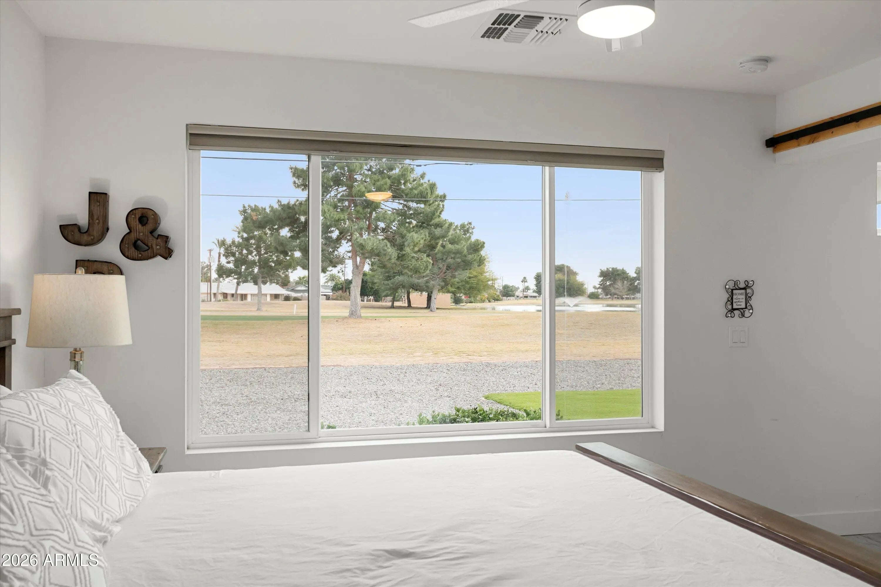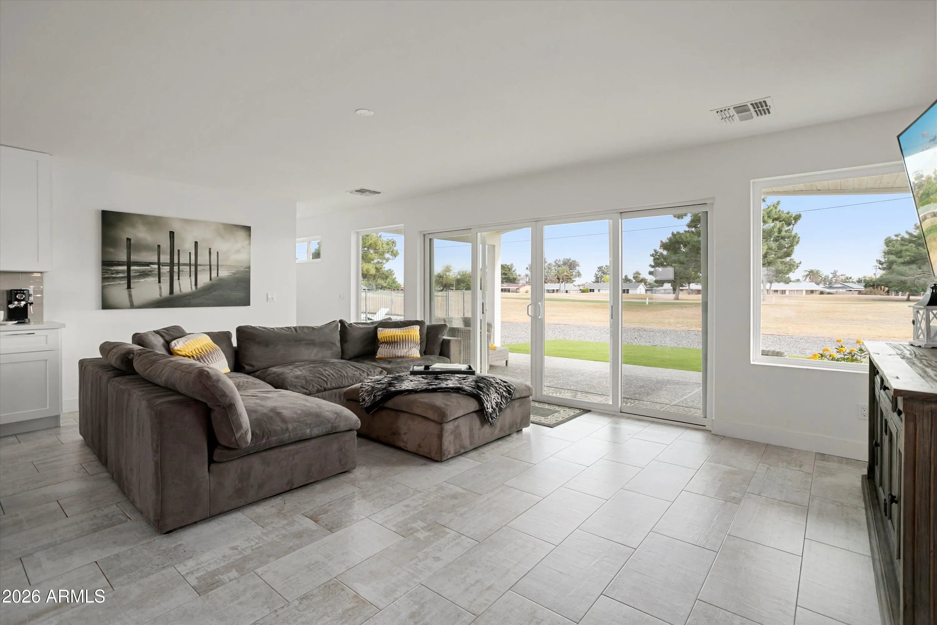 Welcome to your fully remodeled, move-in ready Sun City golf course retreat, perfectly positioned on Hole #6 of the South Course with stunning fairway and lake views. Step inside to an open, light-filled floorplan featuring modern finishes, a show-stopping kitchen with oversized island, and seamless indoor-outdoor living. Enjoy the spacious primary suite and relax on the covered patio overlooking the water feature and fairway. Highlights include owned solar that contributes to electricity costs, a tankless water heater, 220V hot tub-ready outlet, and split bedroom layout. Close to shopping, dining, healthcare, and Sun City amenities.